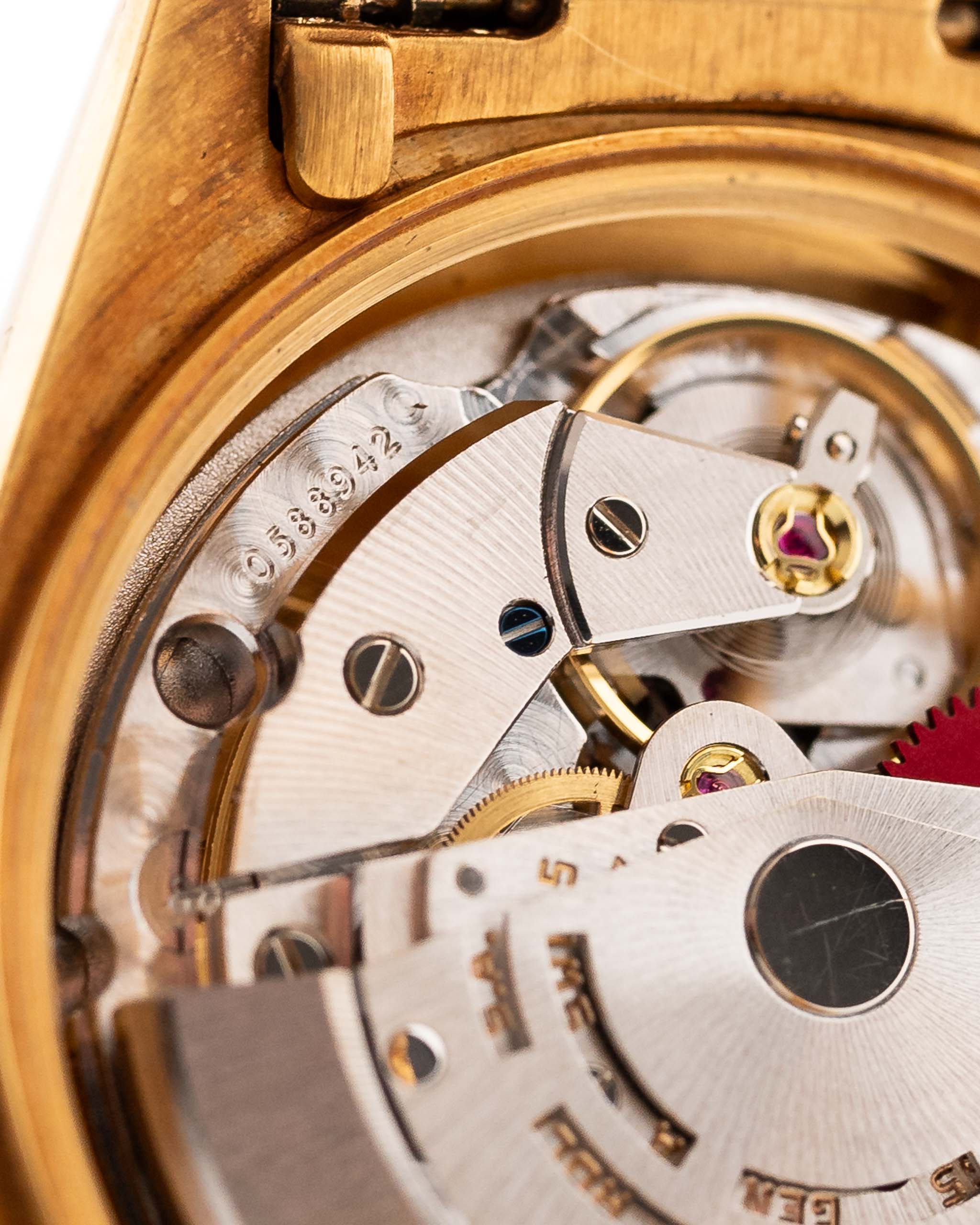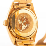 Questa Ref. 18038, introdotta nel 1978 come successore del modello 1803, ha segnato una svolta per il Day-Date. Introdusse una funzione di data a regolazione rapida, un vetro zaffiro e una cassa impermeabile da 100 metri migliorata, pur mantenendo l'inconfondibile DNA dell'orologio da sera più iconico di Rolex.