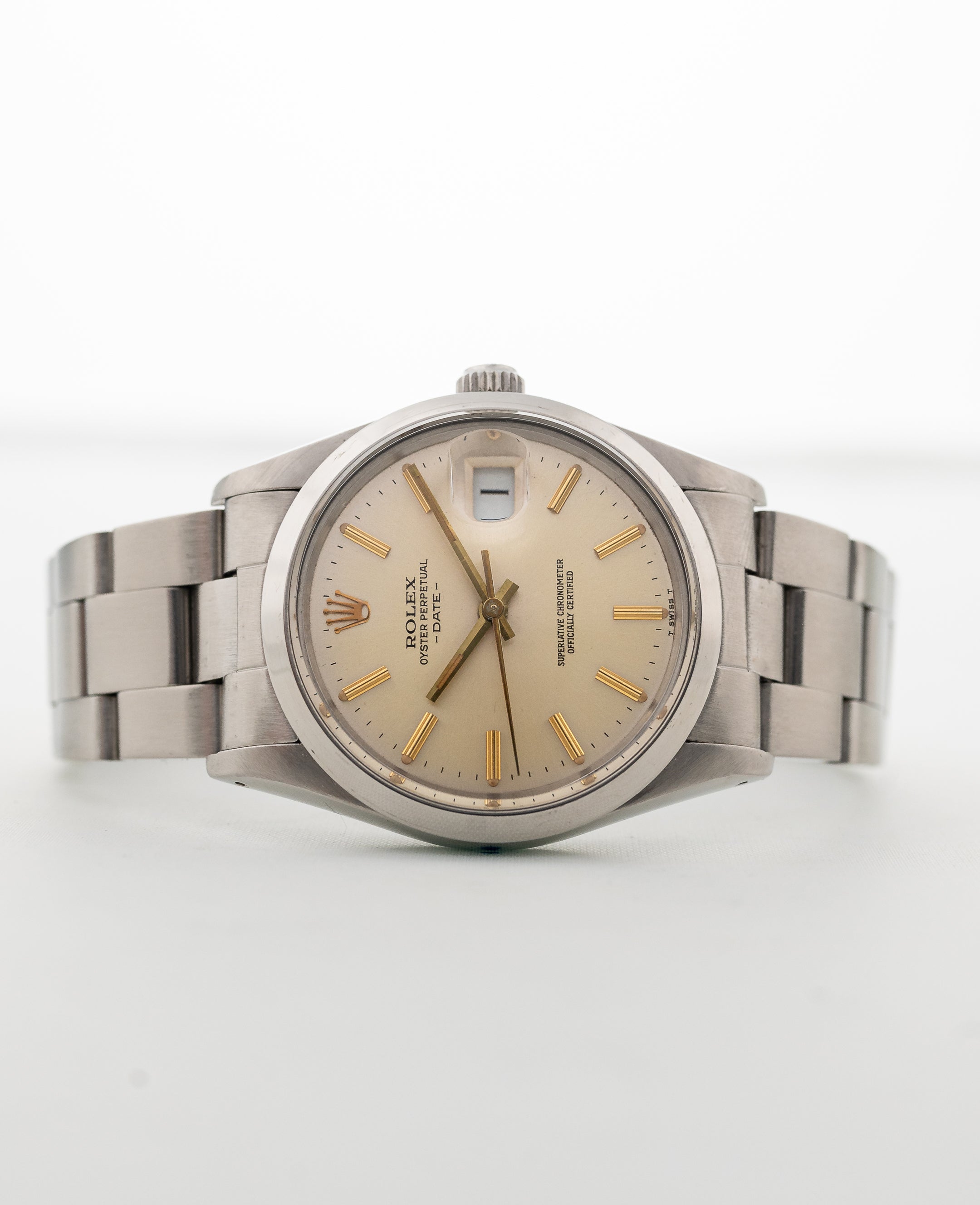 Se desidera un orologio classico Rolex da lavoro che sembri senza sforzo, non cerchi oltre. Questo Rolex Oyster Perpetual Date Referenza 15000 è davvero un orologio che farà la sua figura oggi e tra 50 anni. L'Oyster Perpetual Date è in produzione dalla fine degli anni '50 e non è cambiato molto.