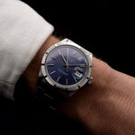 Rivestito in acciaio inossidabile resistente, con una lunetta piatta tornita dal motore, e impreziosito da un quadrante blu oceano sereno, completato da lancette e indici in acciaio, questo orologio incarna la semplicità e l'eleganza.