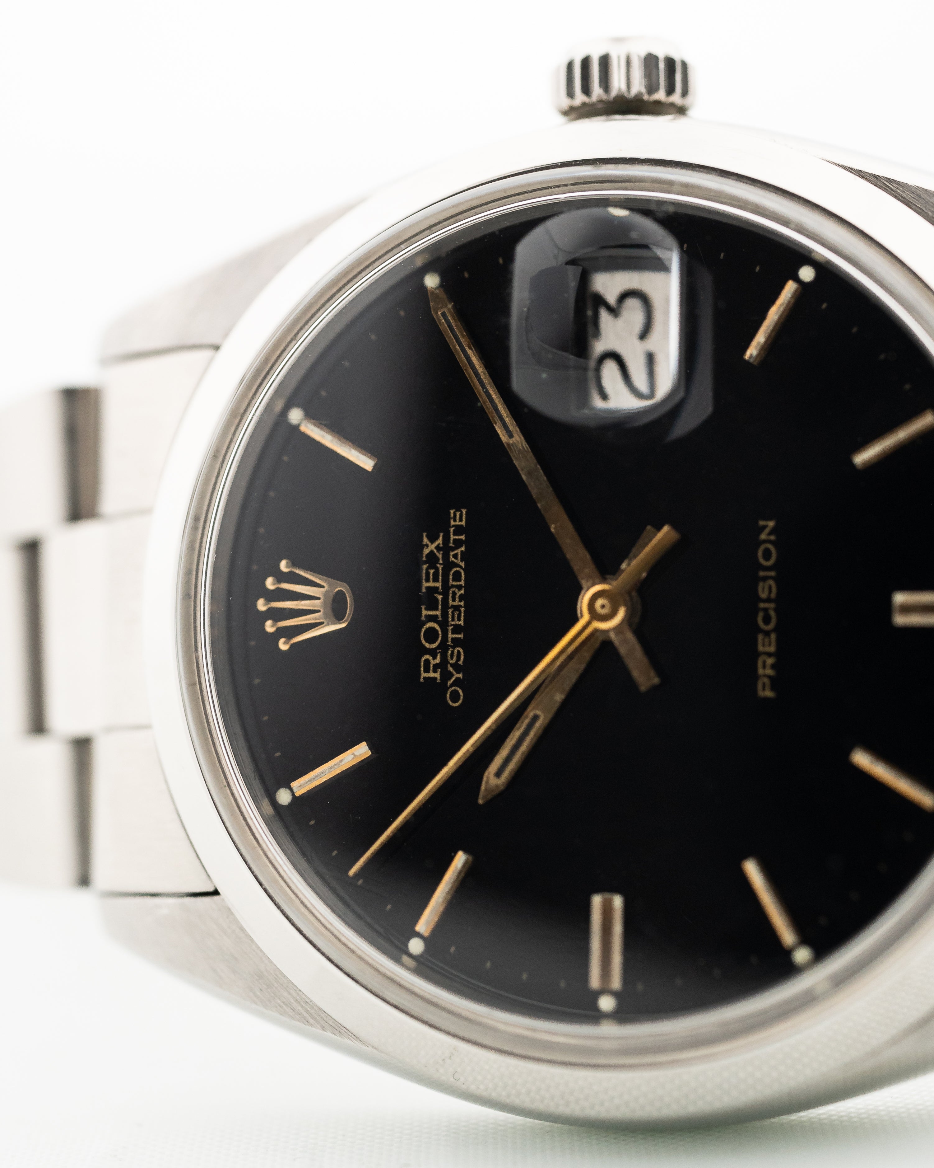 Il Rolex Oysterdate Precision è un pezzo davvero "poco conosciuto". Fu introdotto come 6694 nei primi anni '60 e prodotto fino alla fine degli anni '80. Esteticamente, questo Rolex è senza tempo e splendido con i suoi 35 mm, ma veste più grande. Ha un look elegante e di classe che sembra adatto al campo da tennis, a una riunione di lavoro o a qualsiasi altro ambiente informale.