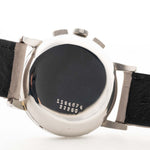 Questo pezzo presenta una cassa in acciaio inossidabile splendidamente conservata con rare anse a ragno, che gli conferiscono una presenza scultorea al polso. Il layout del quadrante, che combina cronografo, triplo calendario e fasi lunari, è uno dei design più armoniosi e iconici dell'epoca.