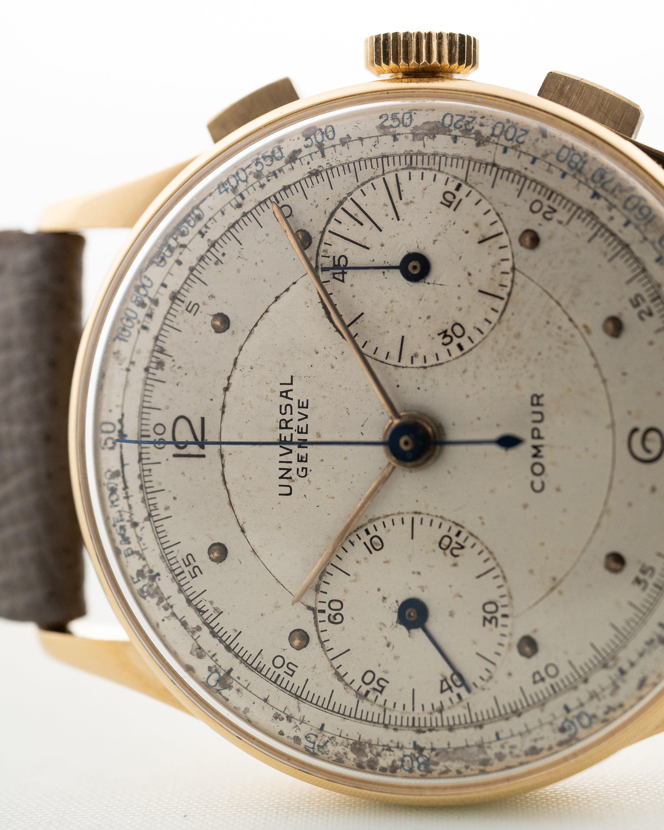 È uno dei cronografi d'epoca più eleganti, soprattutto con questo raro quadrante argento leggermente bicolore. È ben equilibrato, sobrio e funzionale.