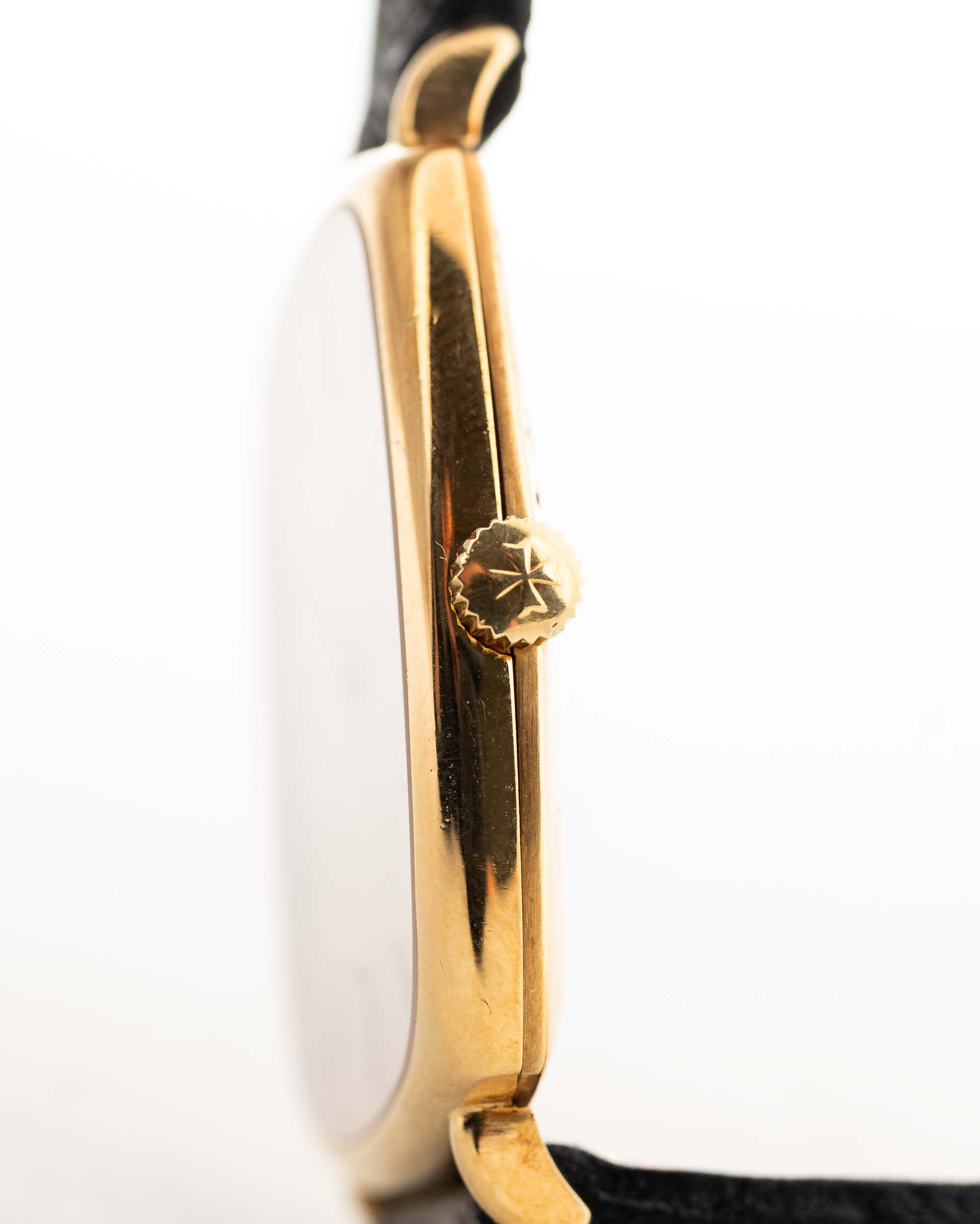 Ecco un orologio da abito Vacheron Constantin in oro giallo 18 carati, splendidamente rifinito, con un design rettangolare degli anni Settanta.