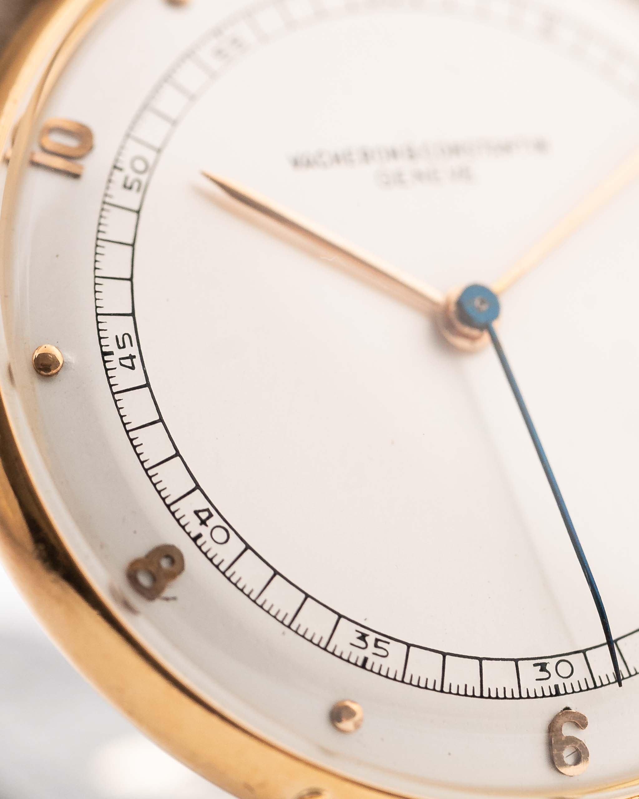 Il quadrante bianco-argento, intatto e ricco di dettagli, mette in mostra un'artigianalità raffinata con indici in oro rosa, una minuteria ferroviaria e un registro sub-secondi splendidamente equilibrato. Ogni elemento del design sembra intenzionale - raffinato, armonioso e inconfondibilmente Vacheron.
