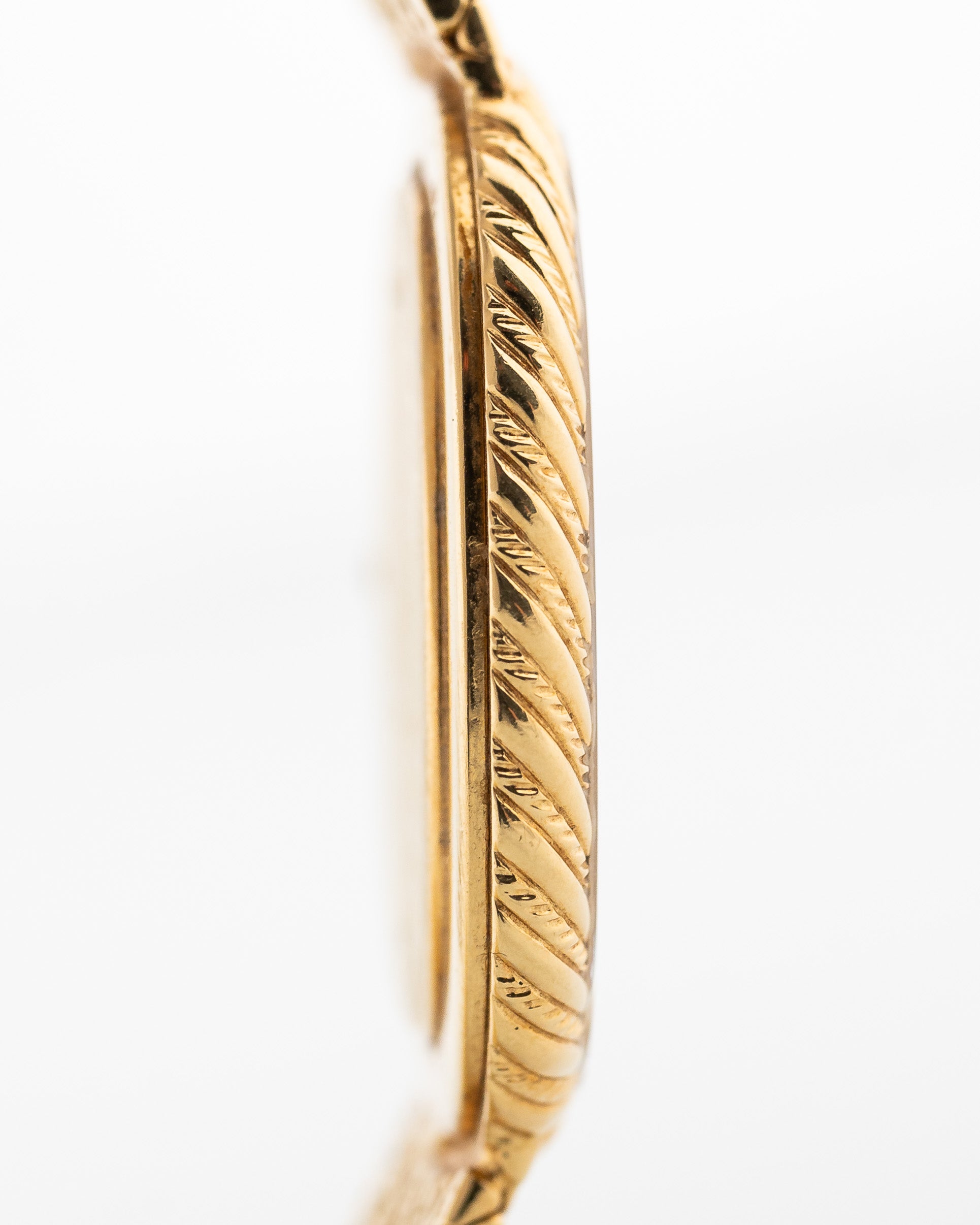 • 3- body 18k yellow gold case (Gustave Brera) with snap-on case back (76g total)
