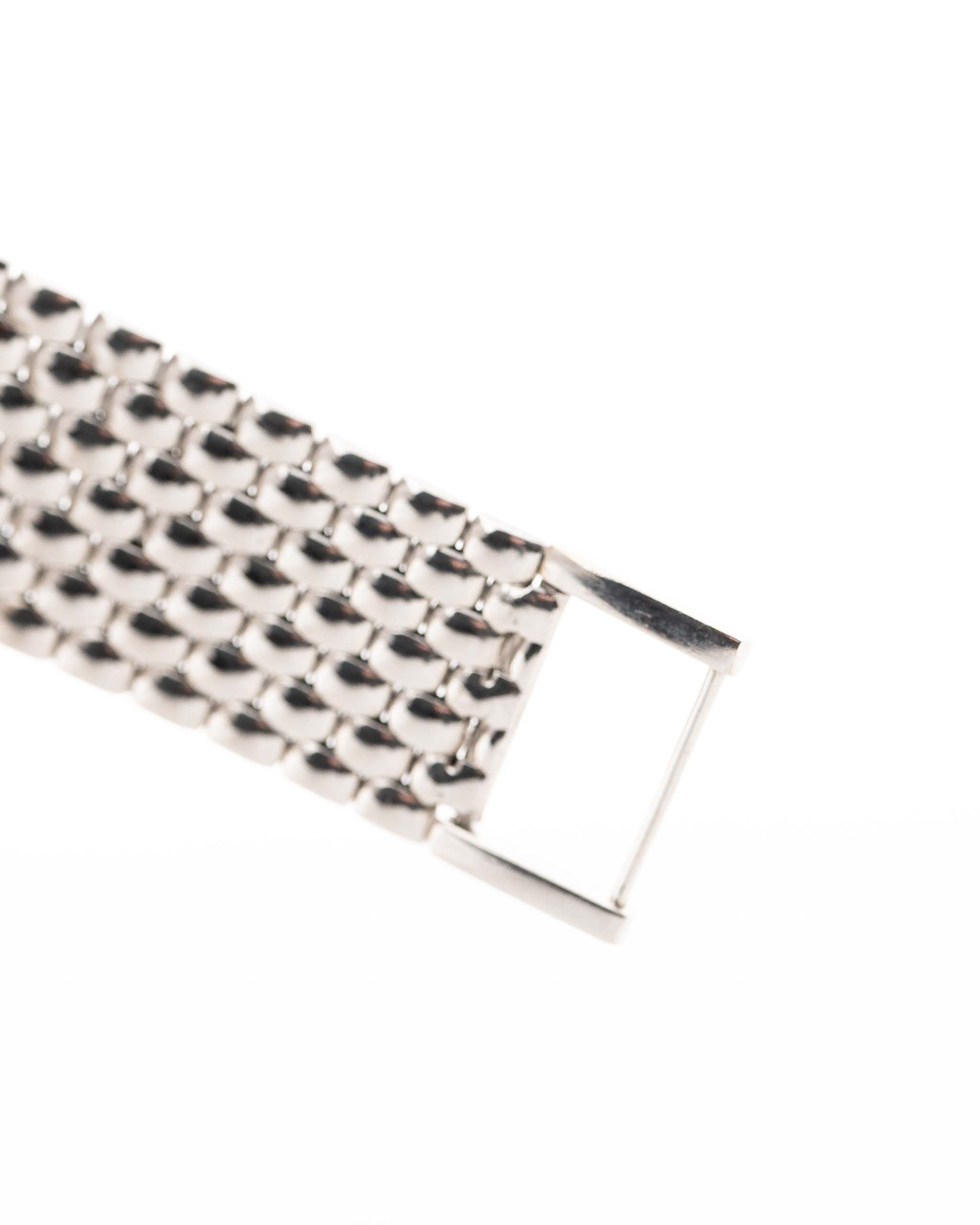 - 18k white gold AP bracelet is fitting up to a 18 cm and is slightly adjustable at the clasp (around 0.5 cm) and one link can be removed / 2 mm thick