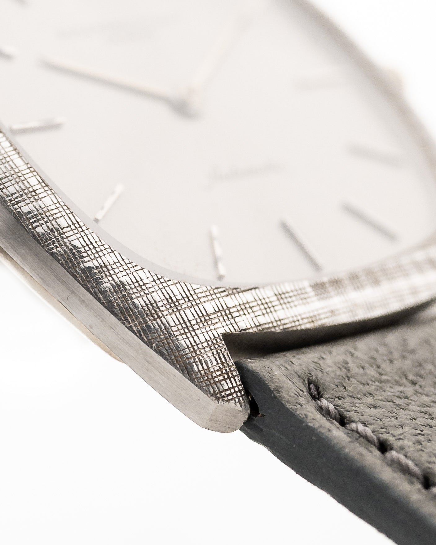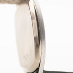 The 18k white gold case measuring 32 mm in diameter is in sharp condition and is finished with very fine crossstructure. The icing on the cake is the rare deep matt grey dial in flawless condition.