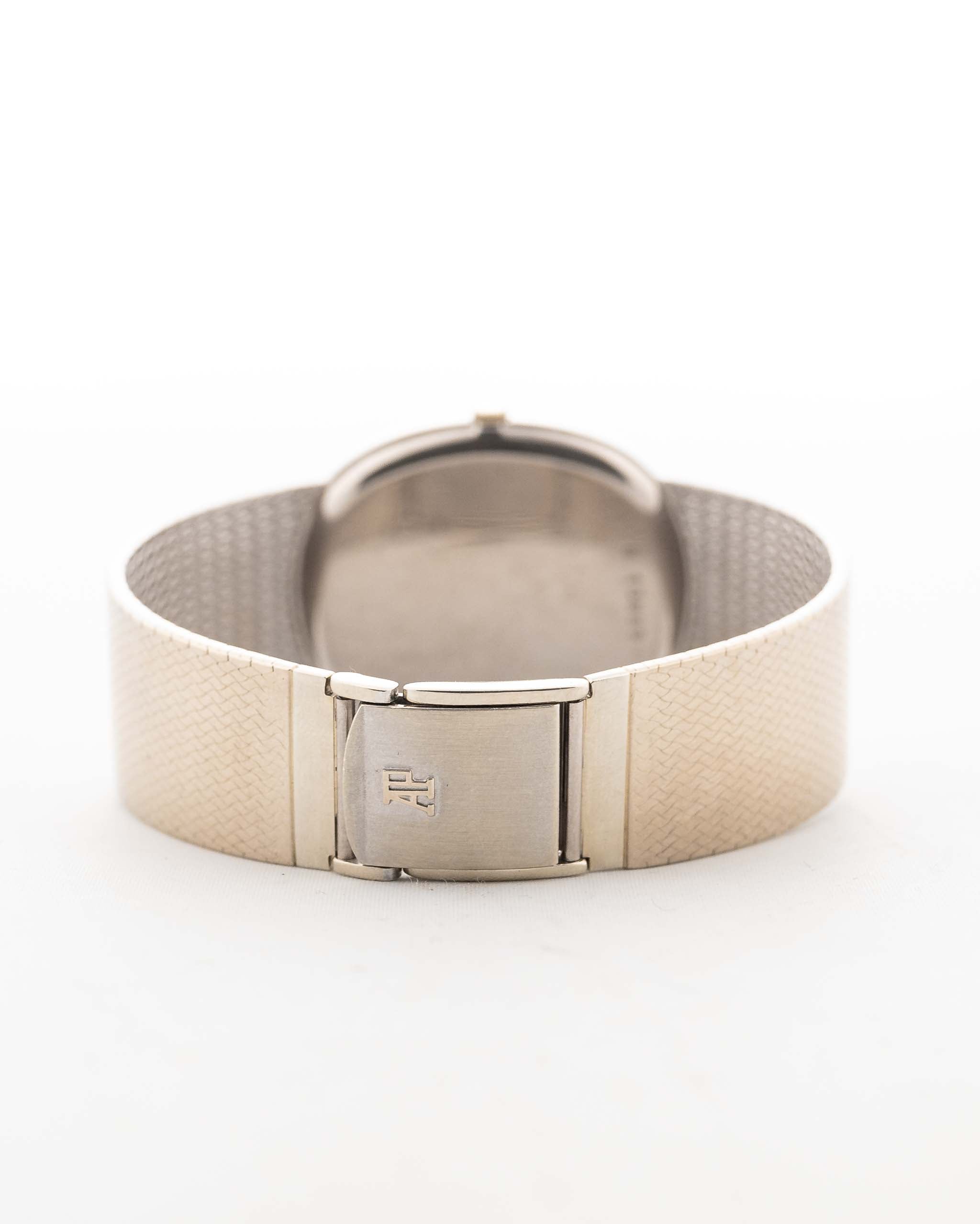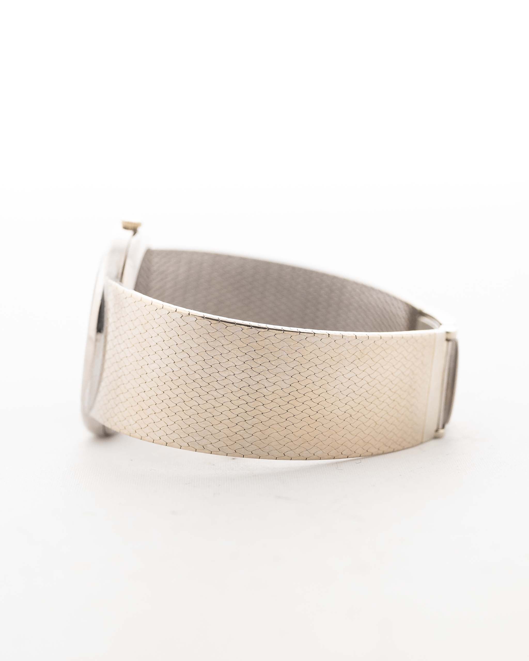 The 18k white gold case measuring 31 mm in diameter is in good condition and refined with a very unique 18k white gold beautifully finished bracelet. The ultra thin caliber 2120 in combination with the solid white gold bracelet making this timepiece fit like a second skin.