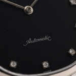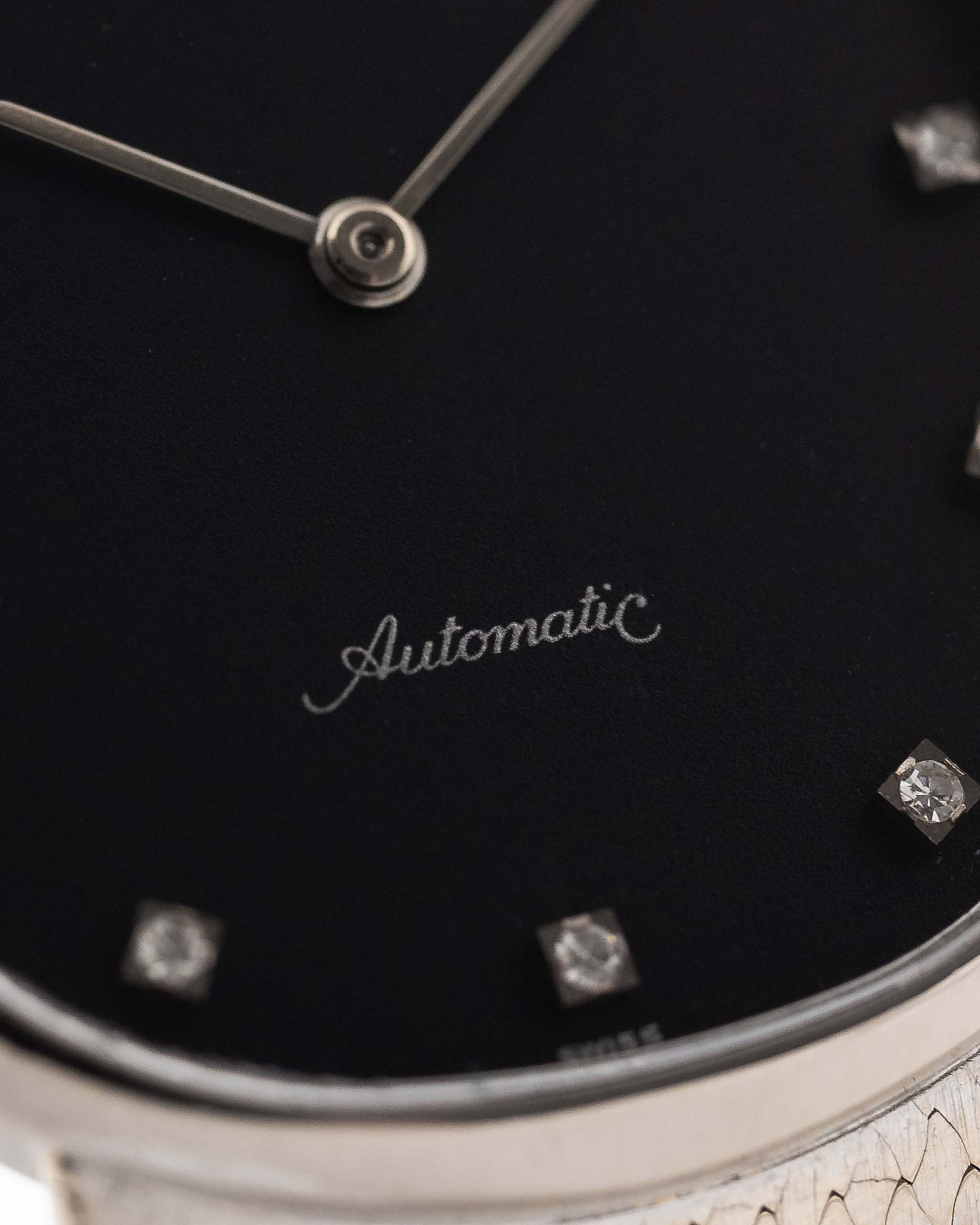 Audemars Piguet Vintage white gold Diamond Ellipse 1970s with black dial and 18k white gold AP bracelet closeup