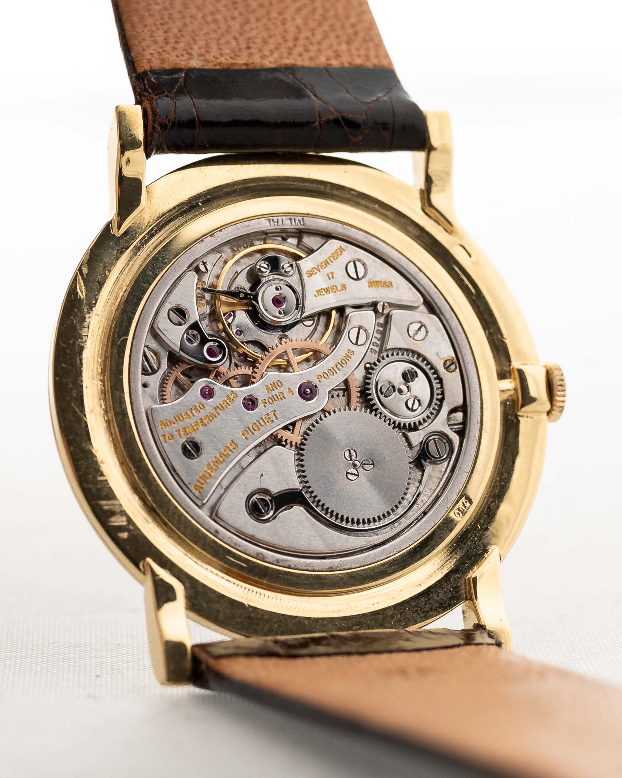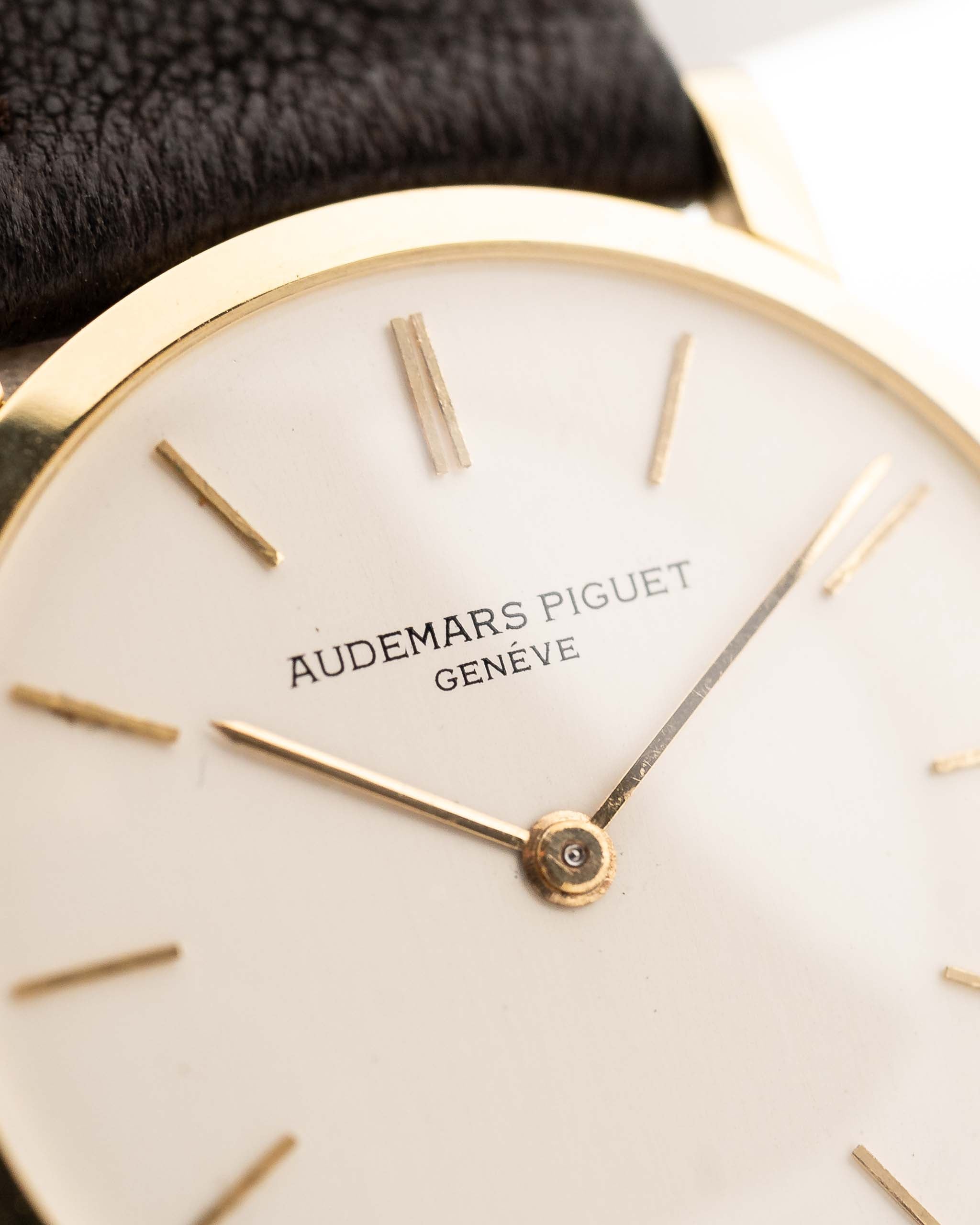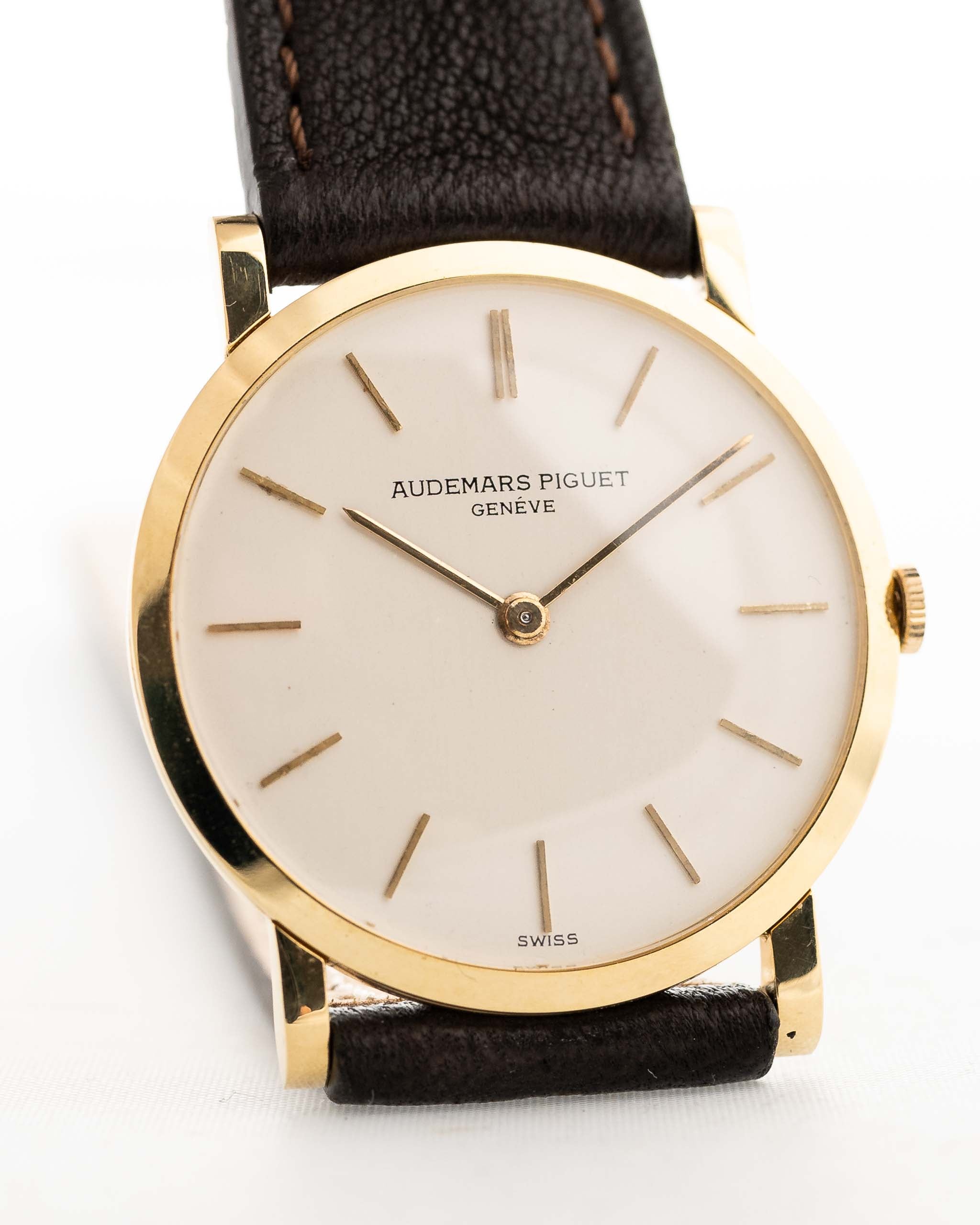 Here we have a beautifully finished Audemars Piguet dress watch from the 1963 with a beautiful clean white dial. This particular piece is notable for its great overall condition and a strong 18k yellow gold ultra-thin case.