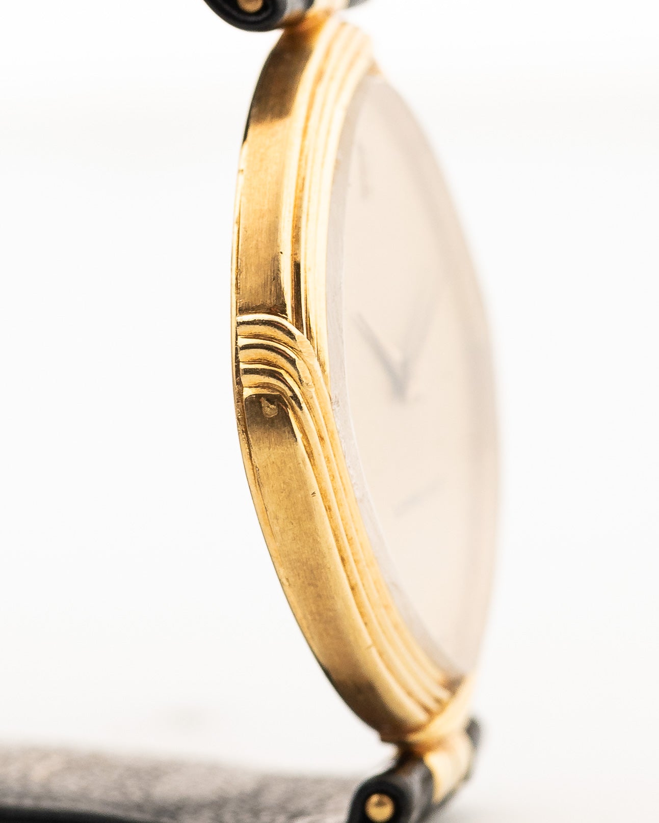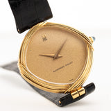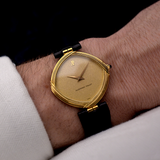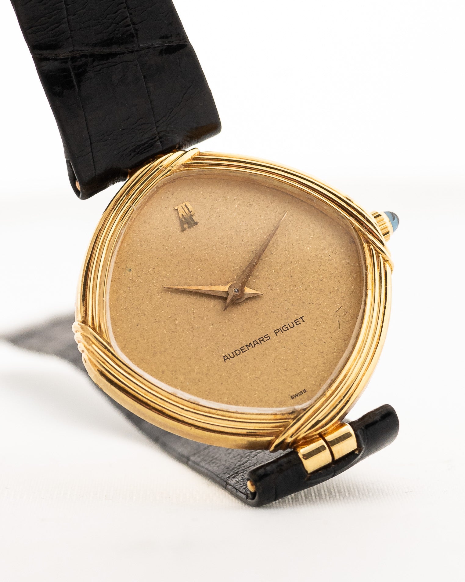Here we have a beautifully finished Audemars Piguet dress watch from the 1970s with a clean golden colored dial and the golden AP at twelve o'clock and the logo font at 6 o'clock.