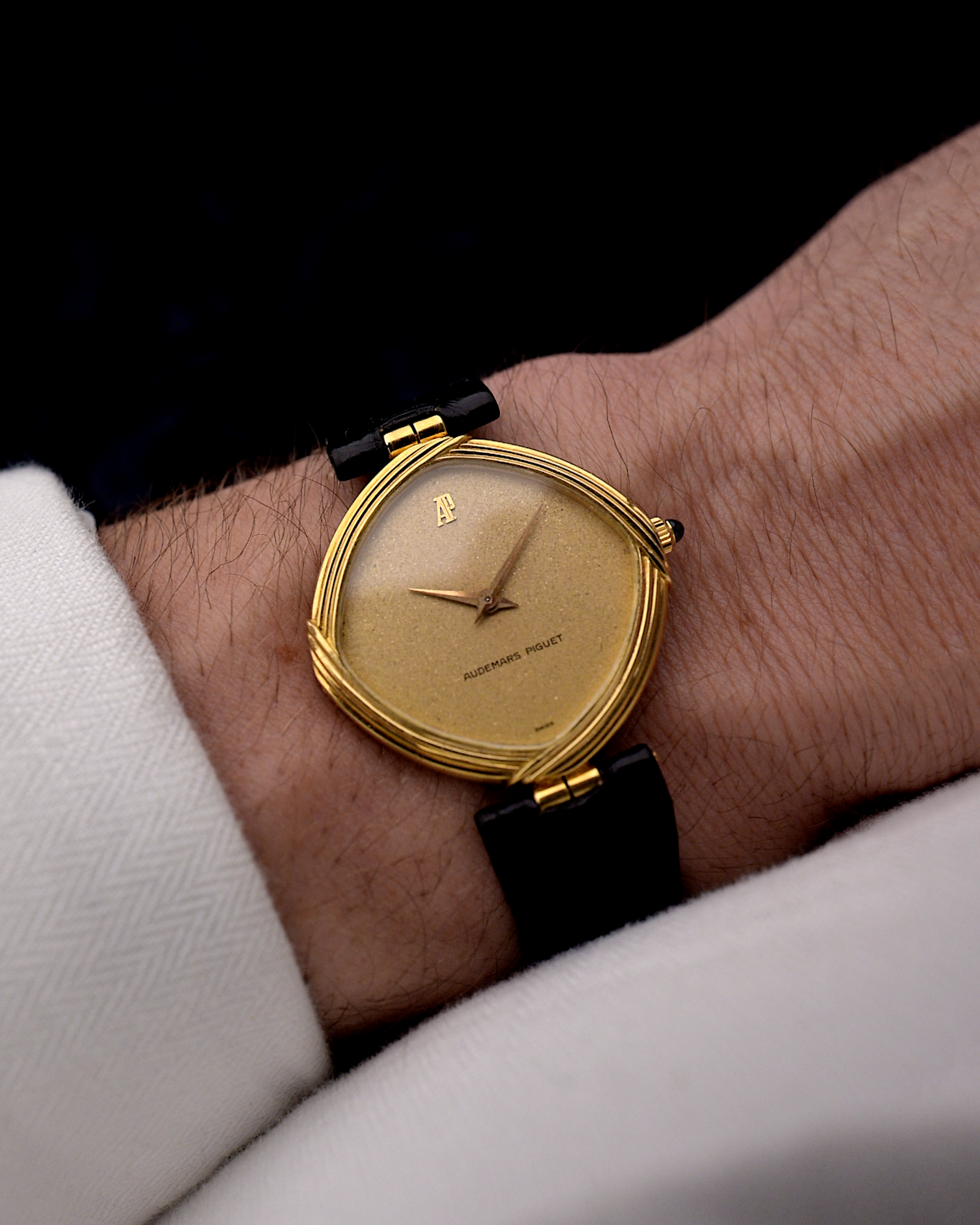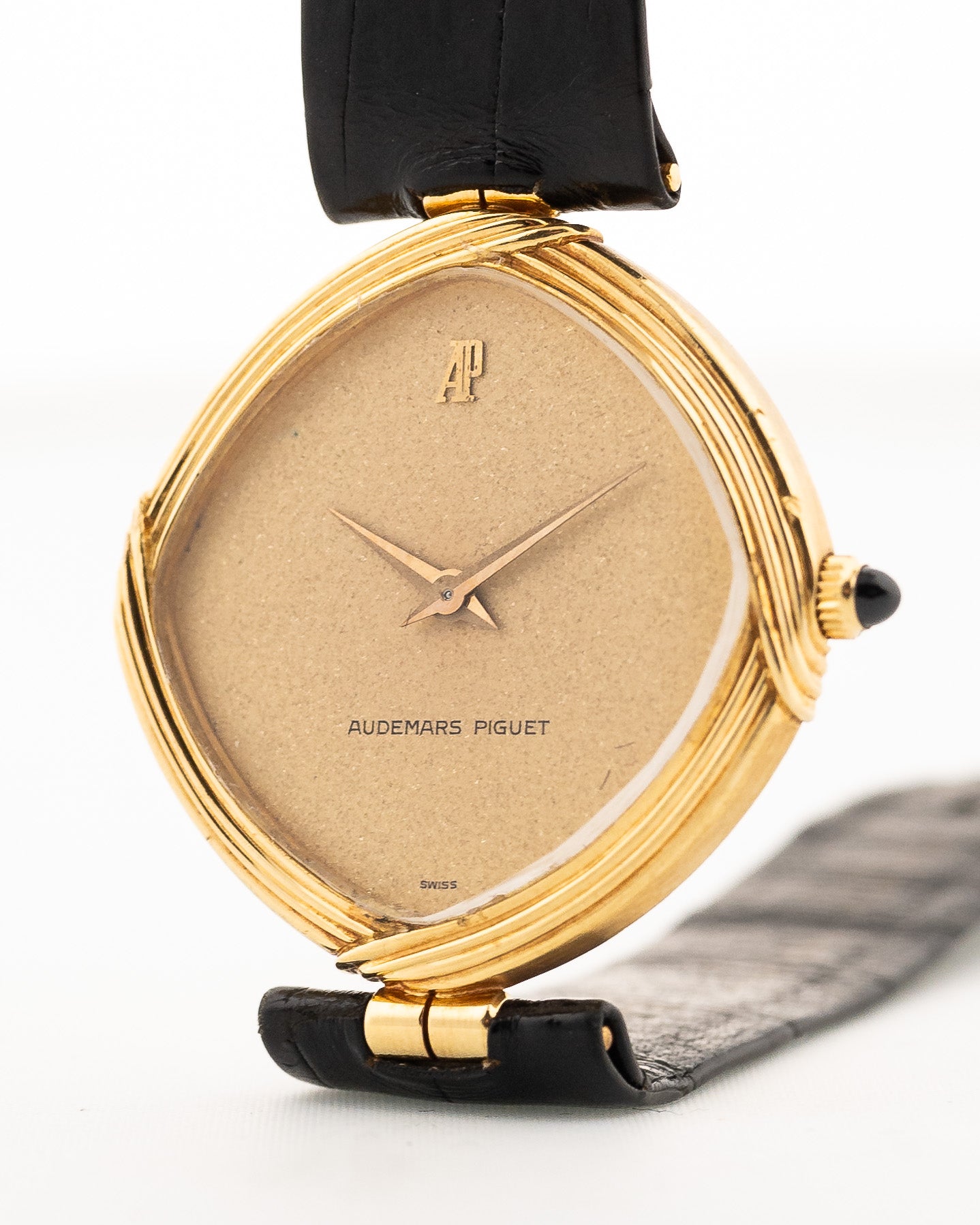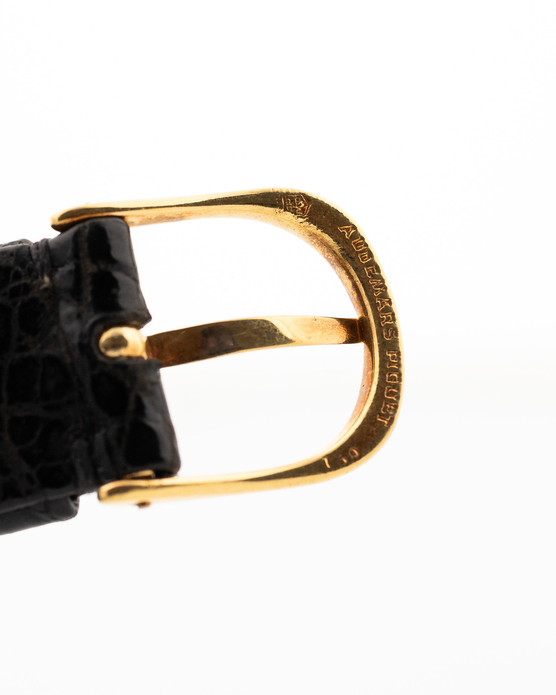 This particular piece is notable for its beautiful unpolished condition and a strong 18k yellow gold ultra-thin stepped case and very unique shape. We have never seen a similar reference and this might be a 1/1 piece. It comes including the original AP leather strap and 18k AP yellow gold buckle.