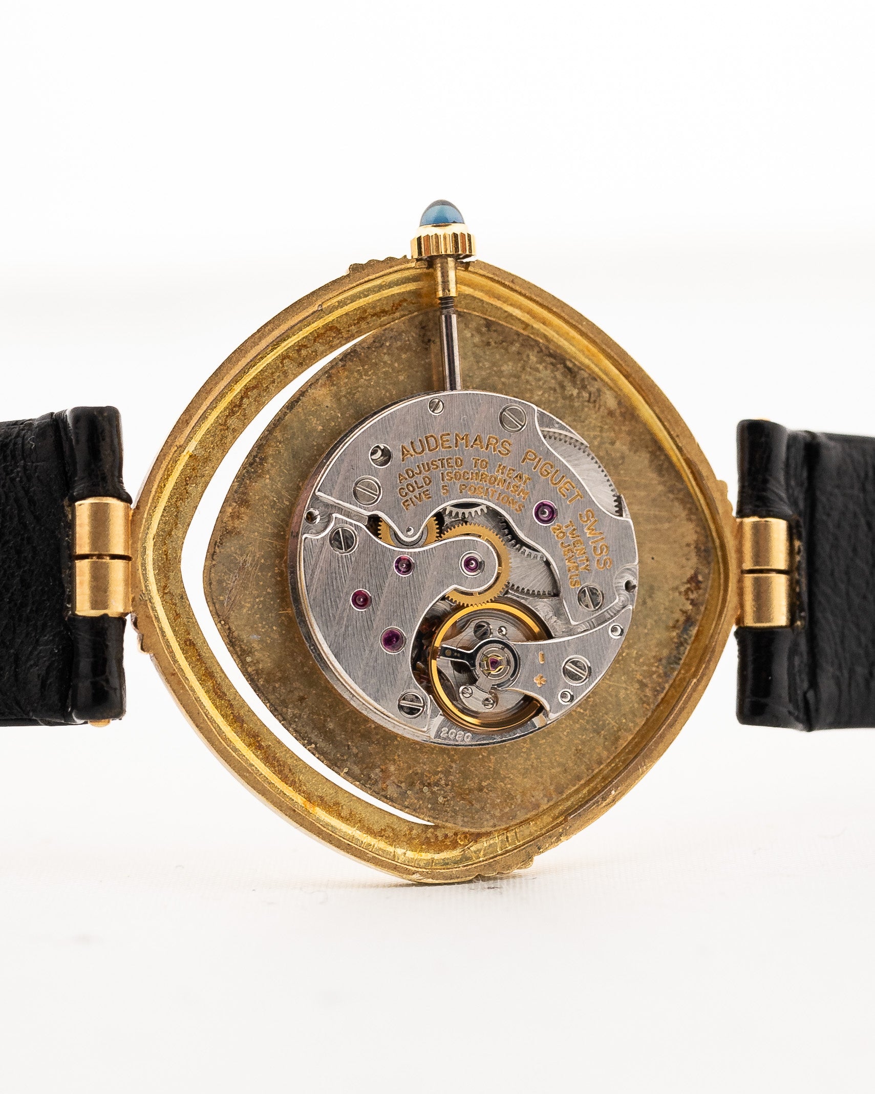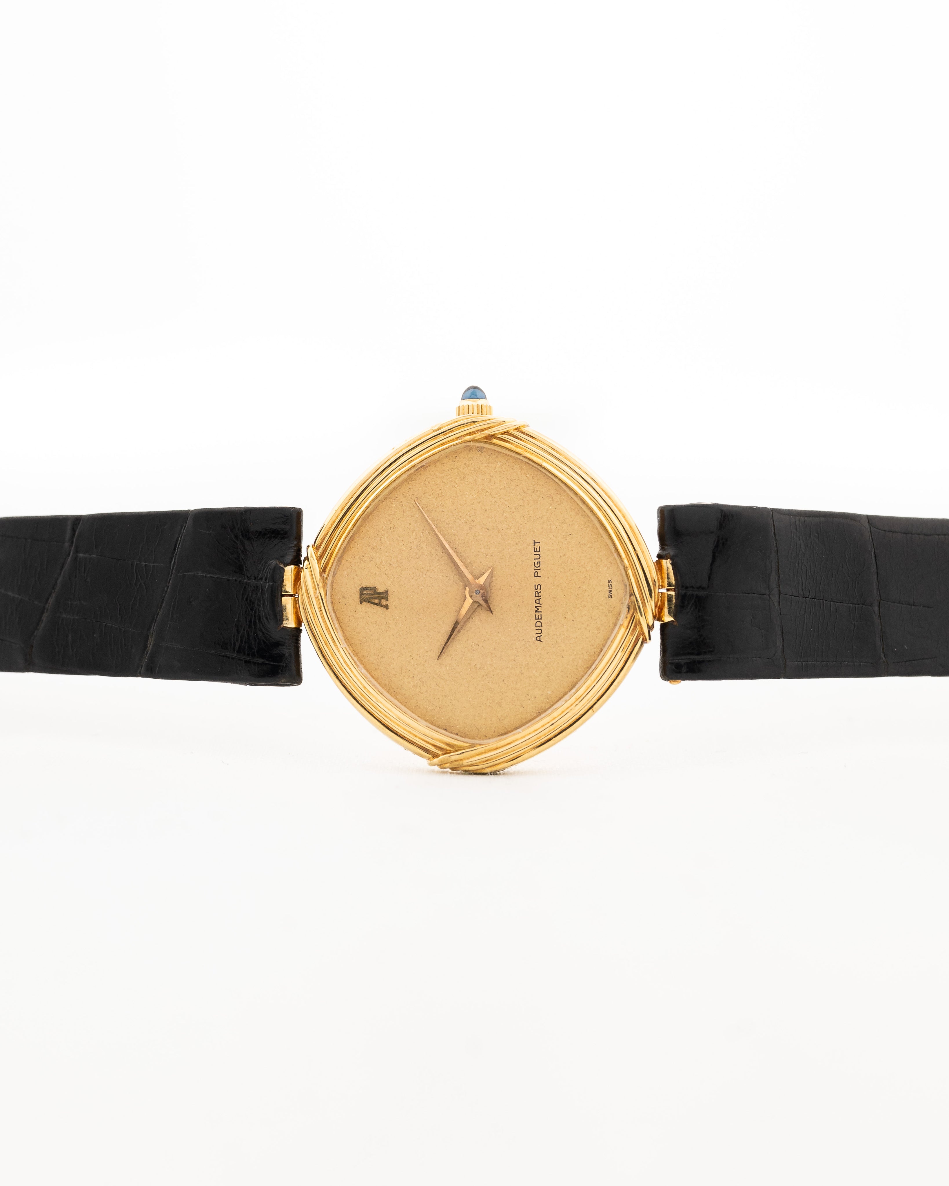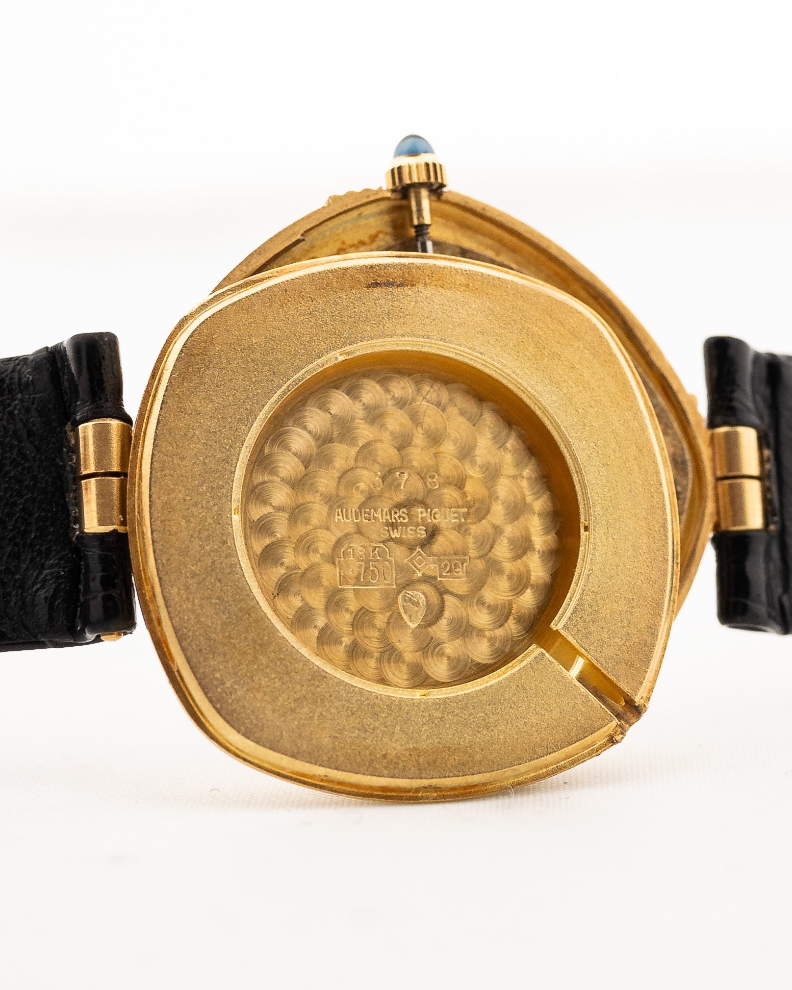 This particular piece is notable for its beautiful unpolished condition and a strong 18k yellow gold ultra-thin stepped case and very unique shape. We have never seen a similar reference and this might be a 1/1 piece. It comes including the original AP leather strap and 18k AP yellow gold buckle.