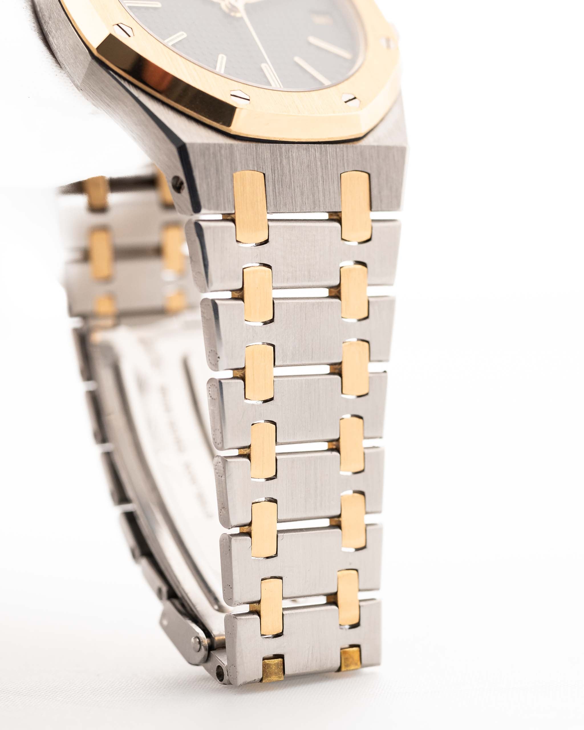 Vintage Audemars Piguet 4100SA Royal Oak Watch from the 1980s. Stainless Steel & 18k Yellow Gold with Rare flawless grey tapisserie dial, Two-Tone bracelet.