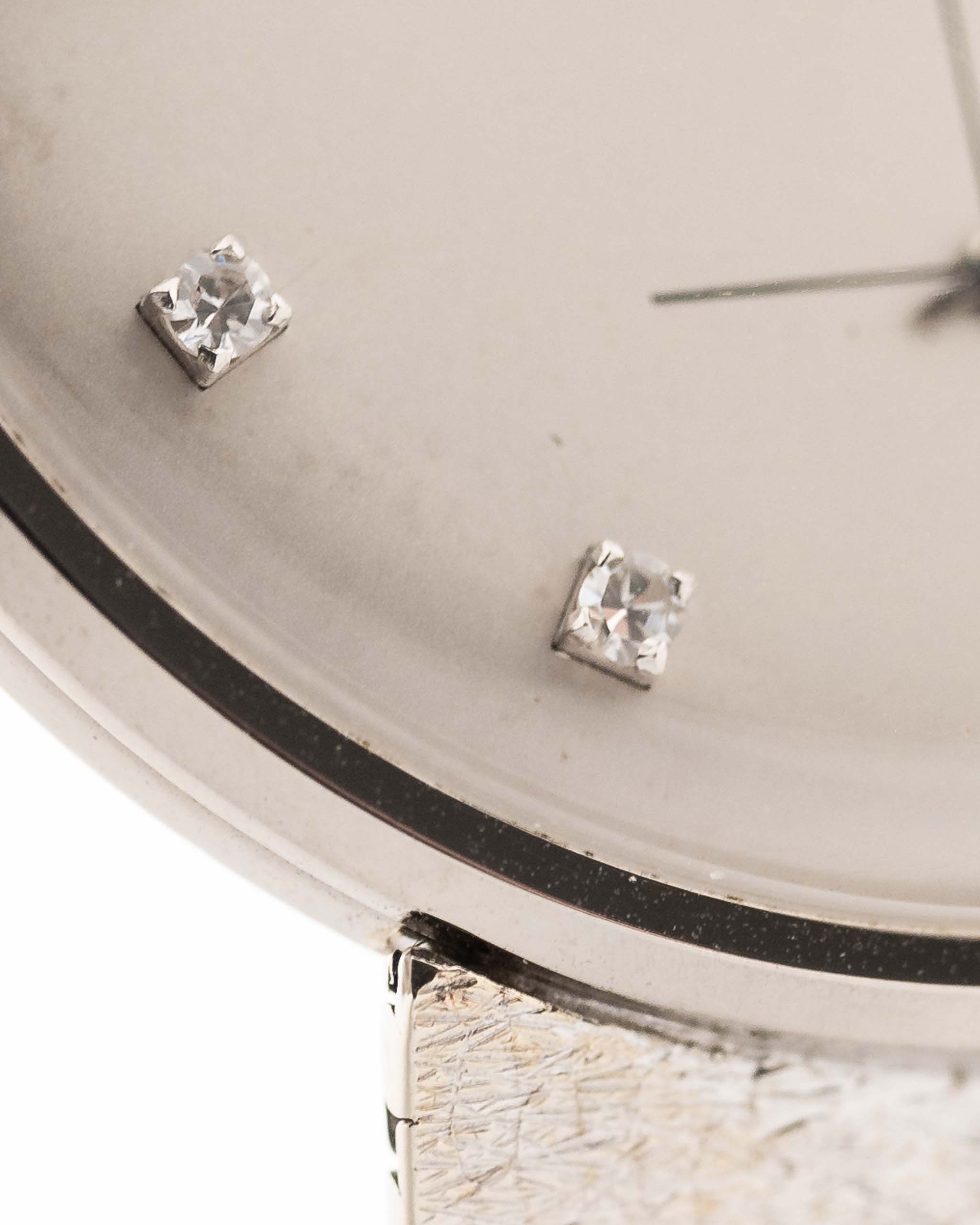 The silvered dial features factory-set diamond hour markers — subtle, balanced, and unmistakably luxurious. Together with the slim baton hands and minimalist layout, it creates a quietly sophisticated aesthetic that feels timeless even today.