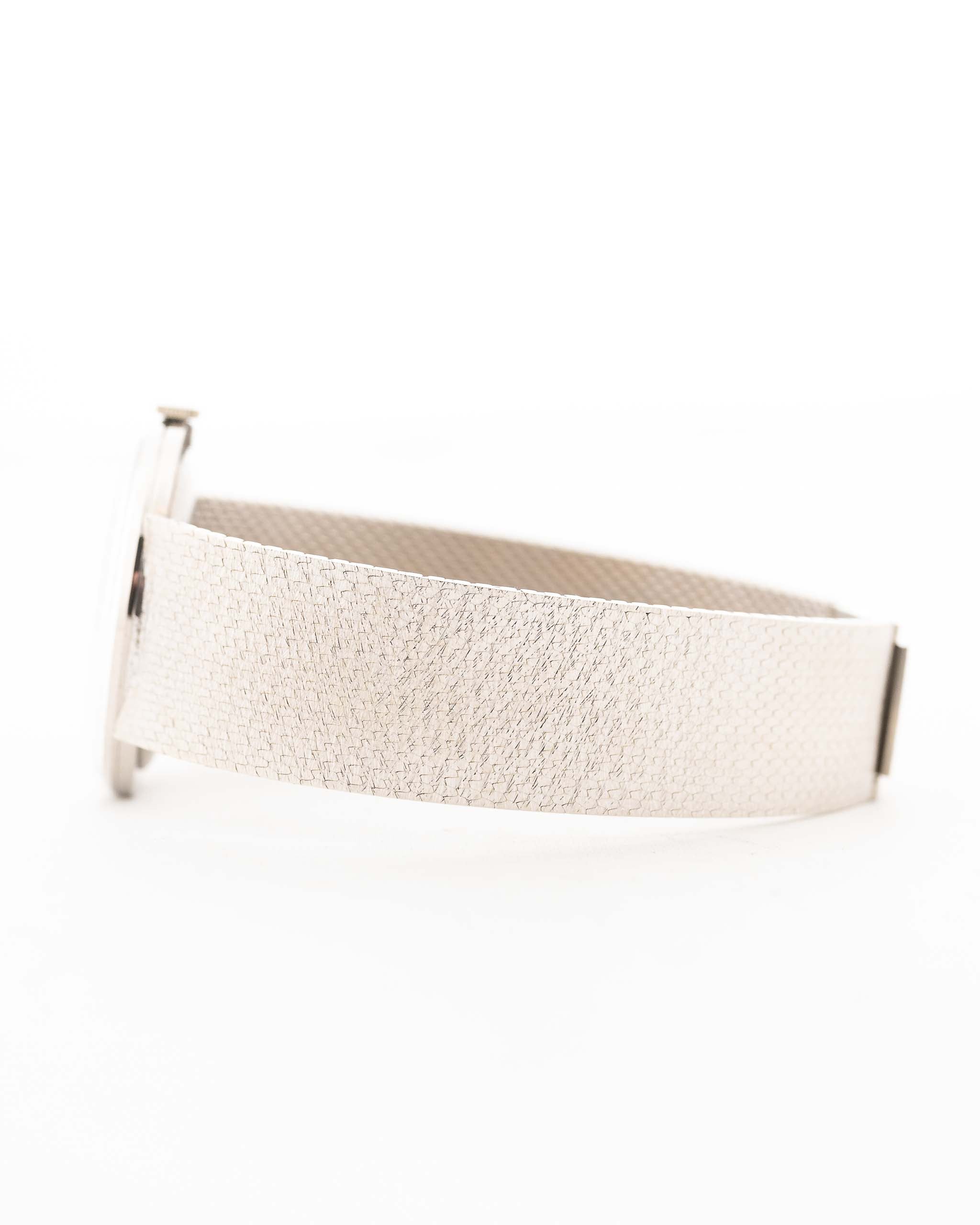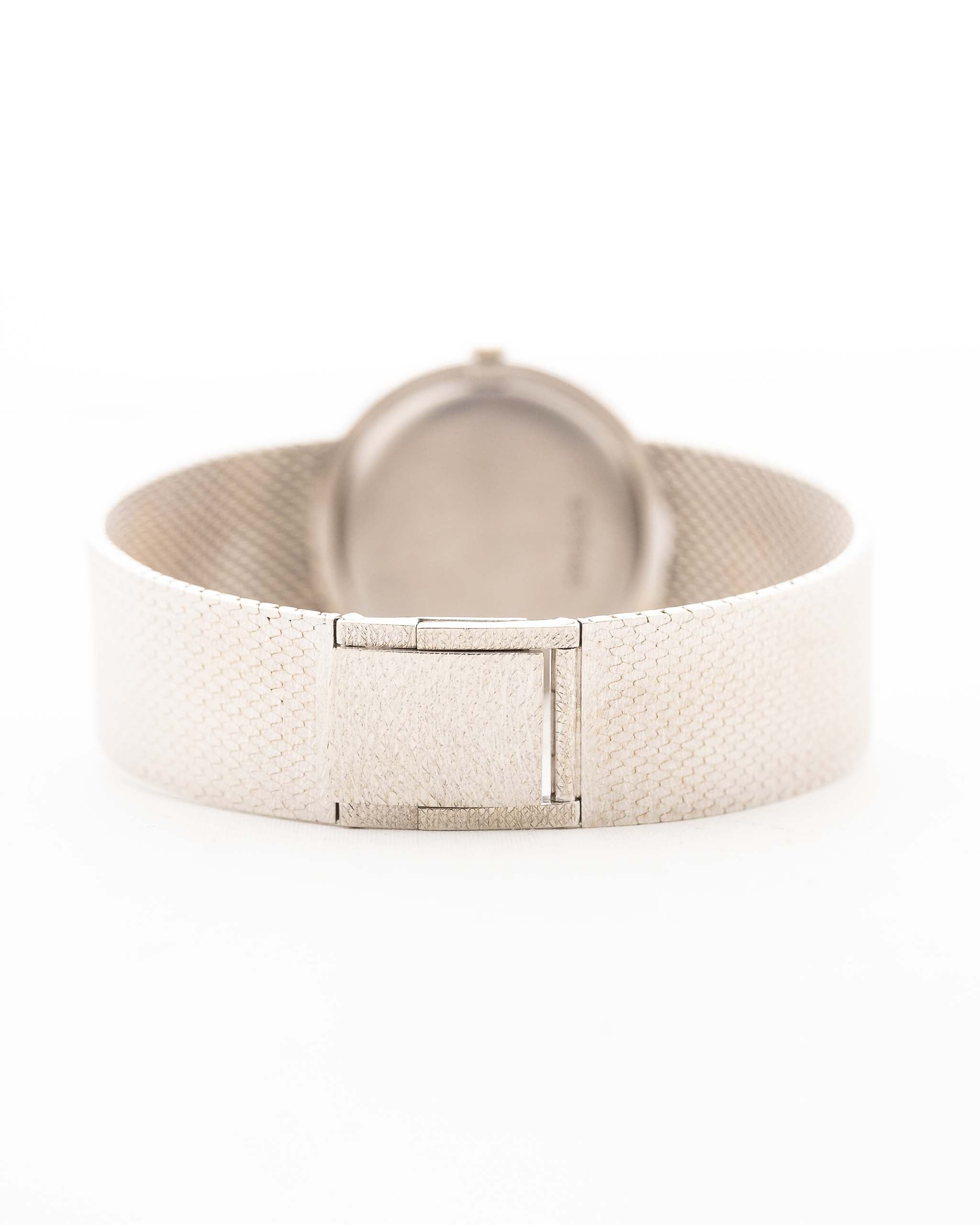 A beautifully preserved example of mid-century refinement, this Audemars Piguet Ref. 5139BC embodies the elegance and restraint that defined the brand’s dress watches of the 1960s. Crafted in 18k white gold, the ultra-thin case has a clean, minimalist presence on the wrist, allowing the exquisite dial to take center stage.