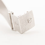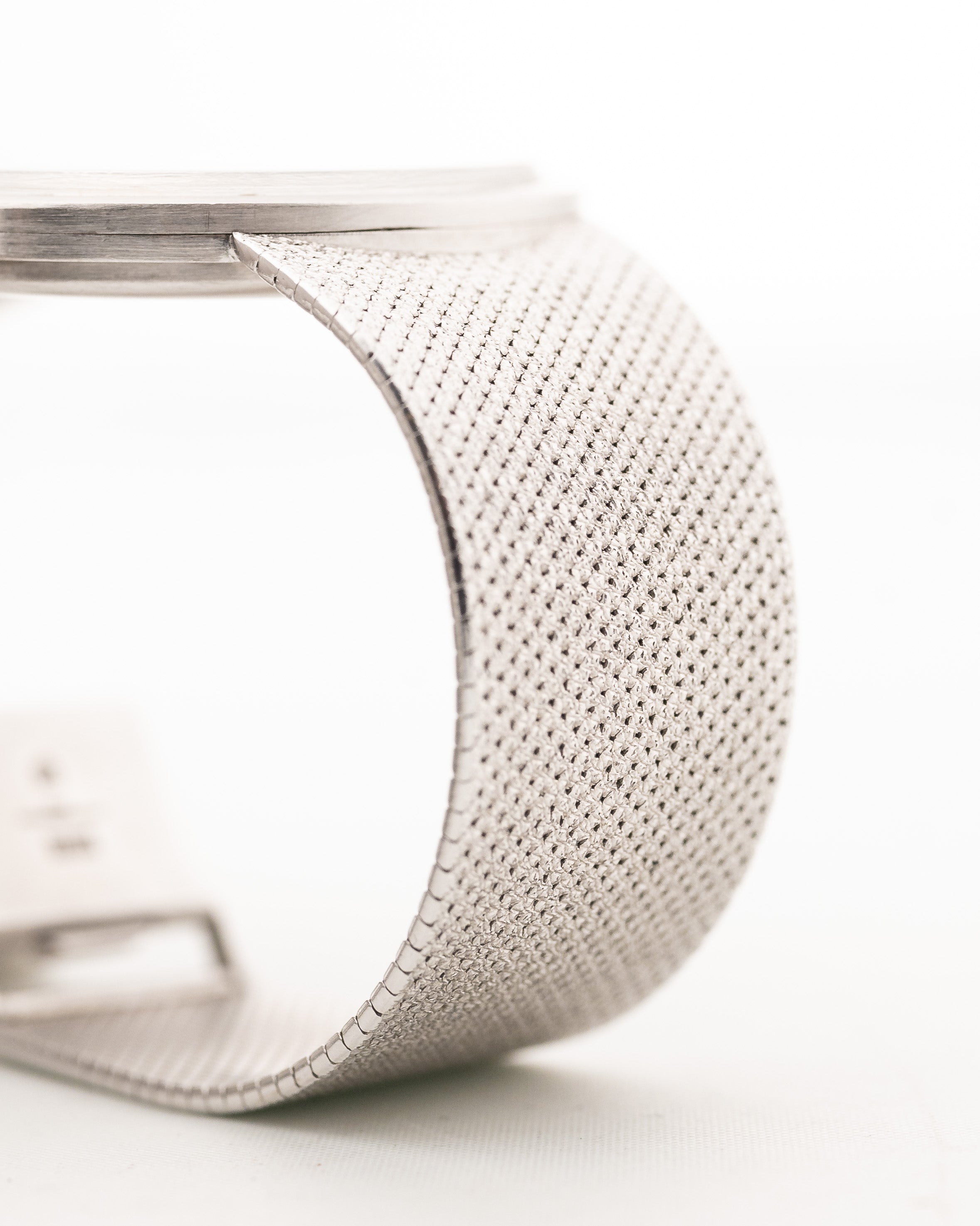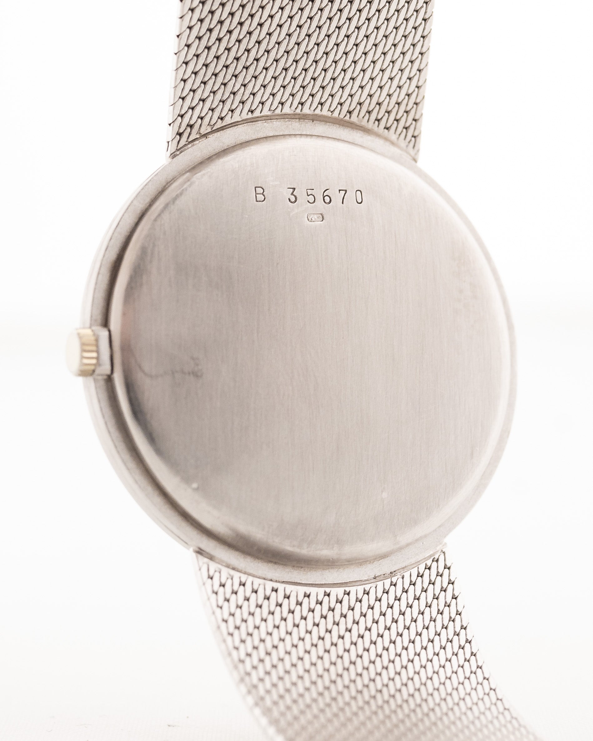 The 18k white gold case measuring 33,5 mm in diameter is in sharp condition and refined with a very unique integrated 18k white gold bracelet. The icing on the cake is the snow white dial in flawless condition.