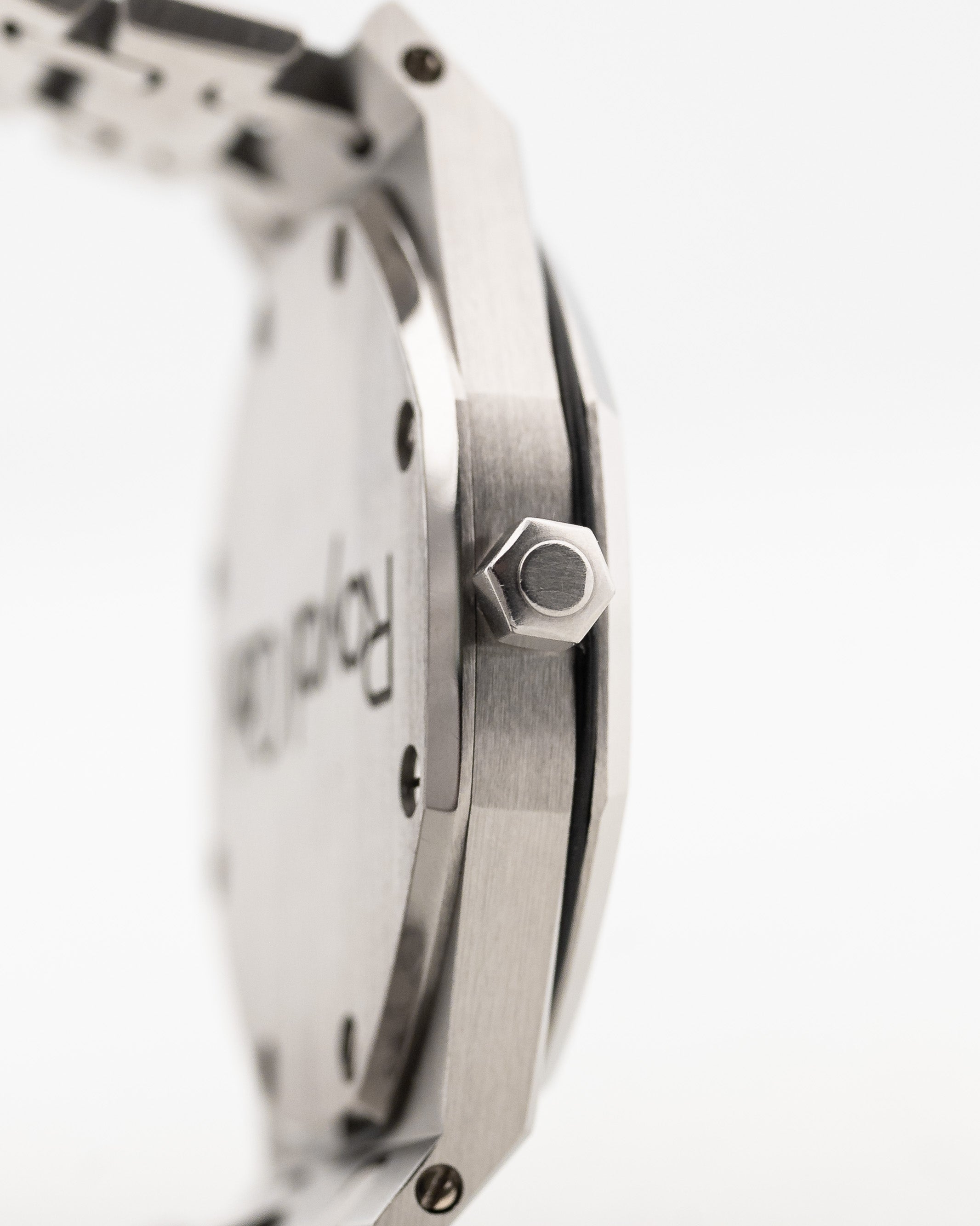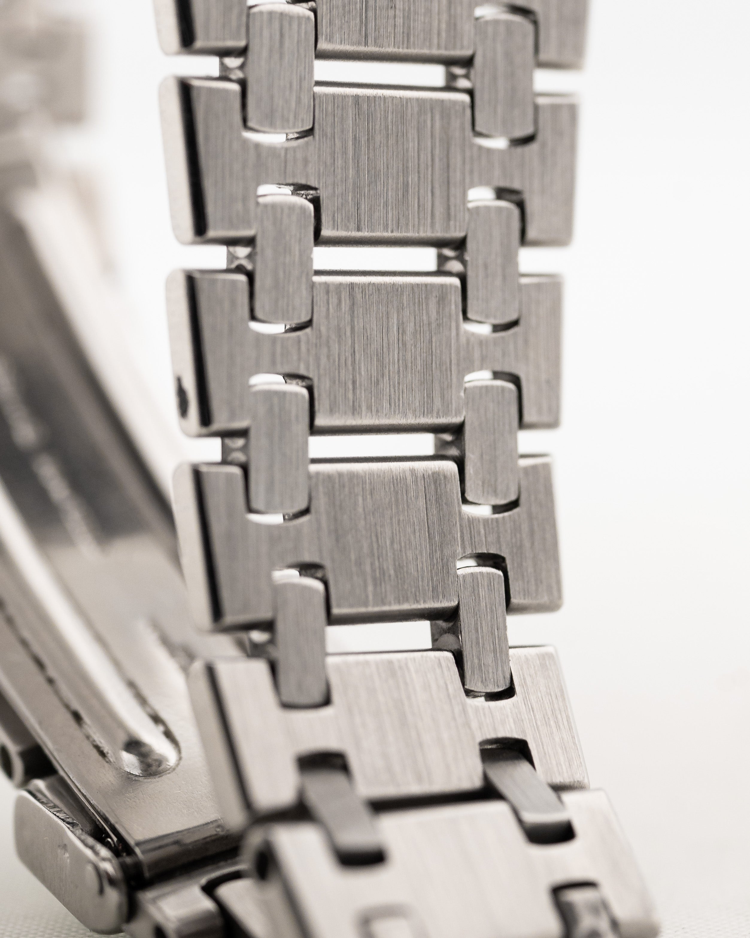 • stainless steel "Royal Oak" bracelet with all links and some stretch can be worn up to a 21 cm wrist / 2.2 mm thick