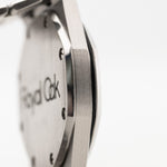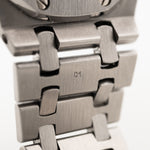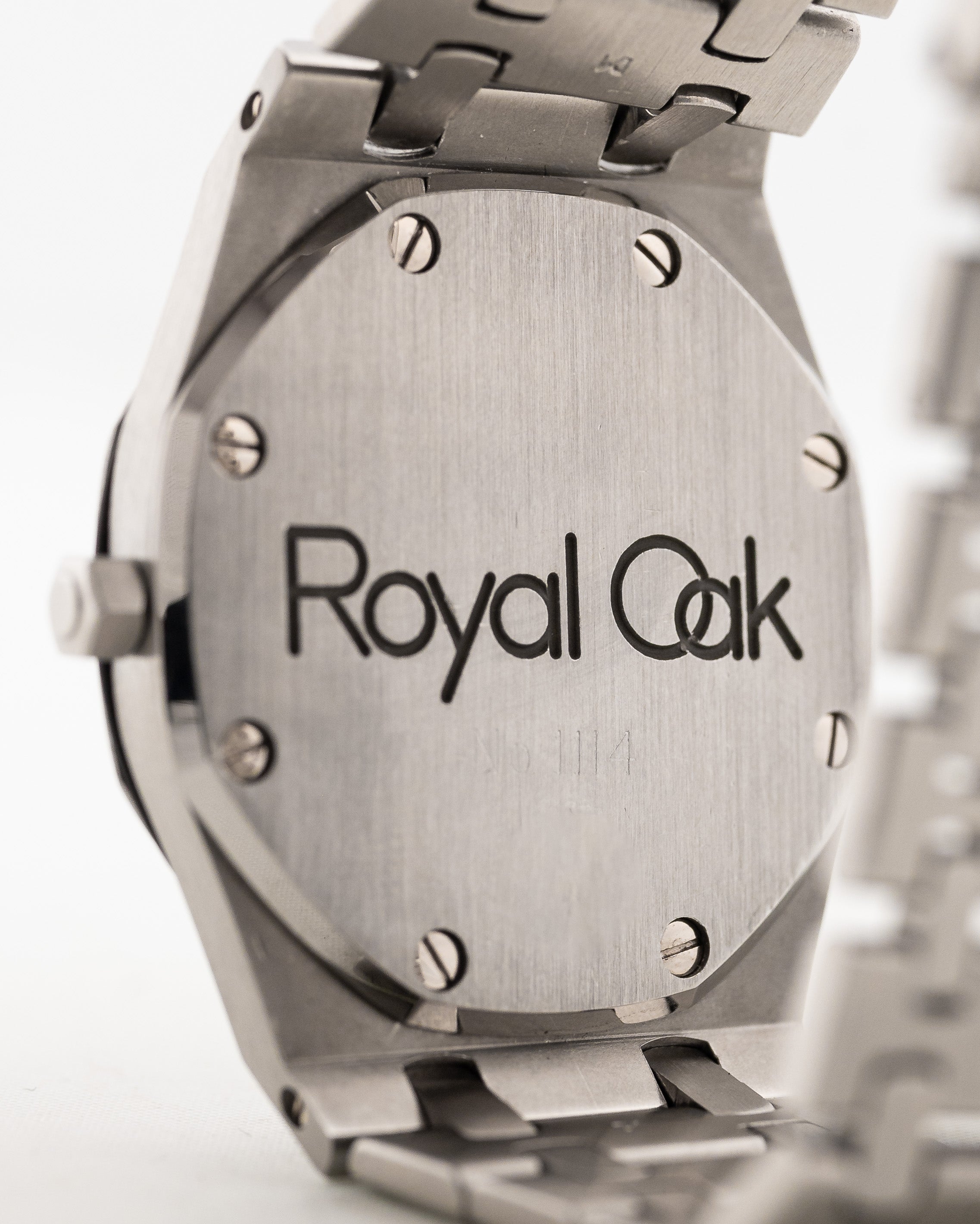 The case has the correct winding crown without the logo. The bracelet with all links is in good condition with some stretch and is fitting a wrist of up to 21 cm. The watch has the caliber 2123, a modified Jaeger-LeCoultre movement, as is often the case with AP.
