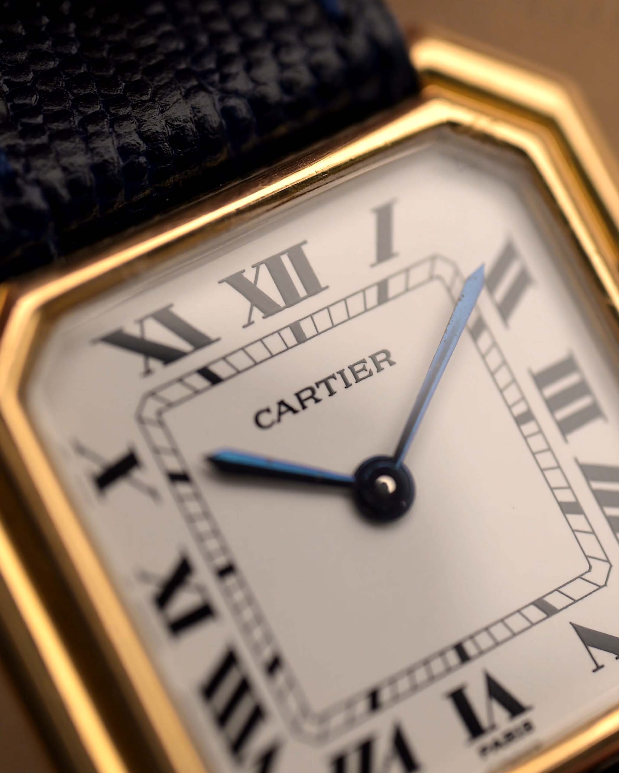 With its distinctive square case and clipped corners, the Cartier Ceinturereimagines the elegance of the belt buckle (“ceinture” in French) into a piece of horological sculpture. This 27 mm version — the larger of two reissues in the early 1970s — is the desirable “PARIS” dial variant, a hallmark that signifies it was sold through Cartier’s original Paris flagship.