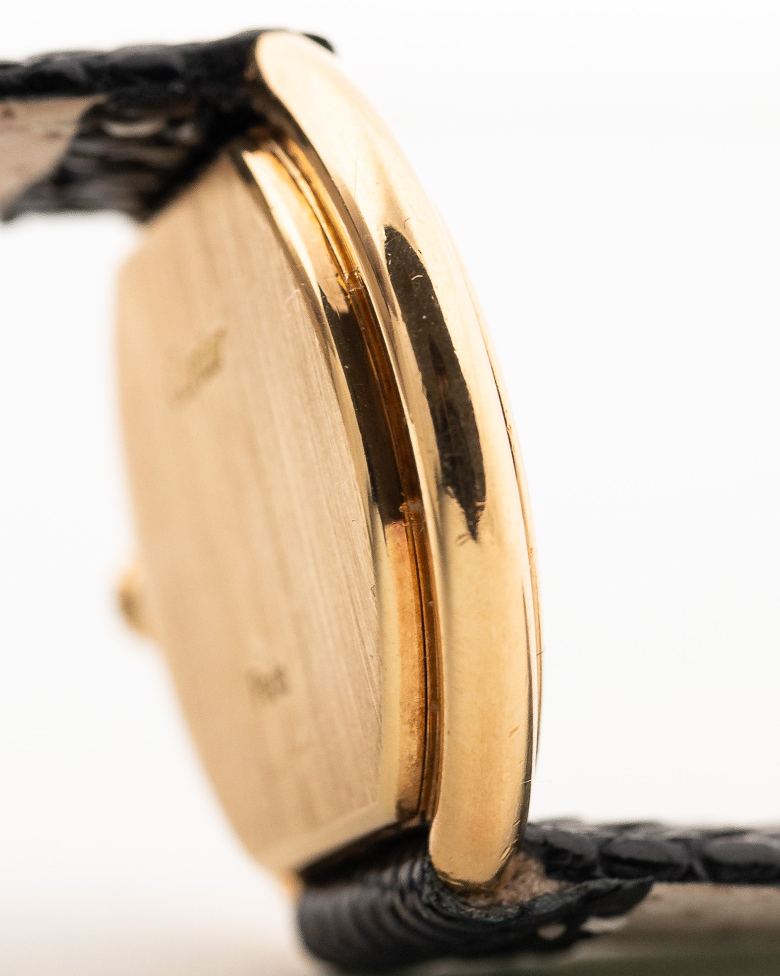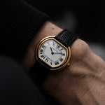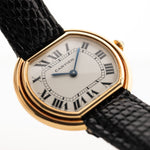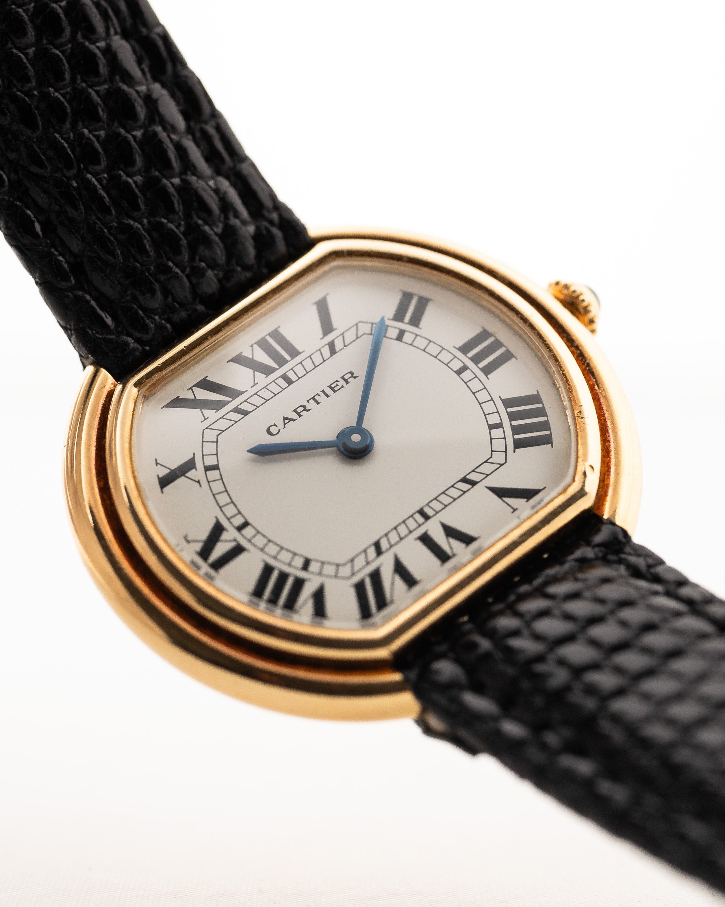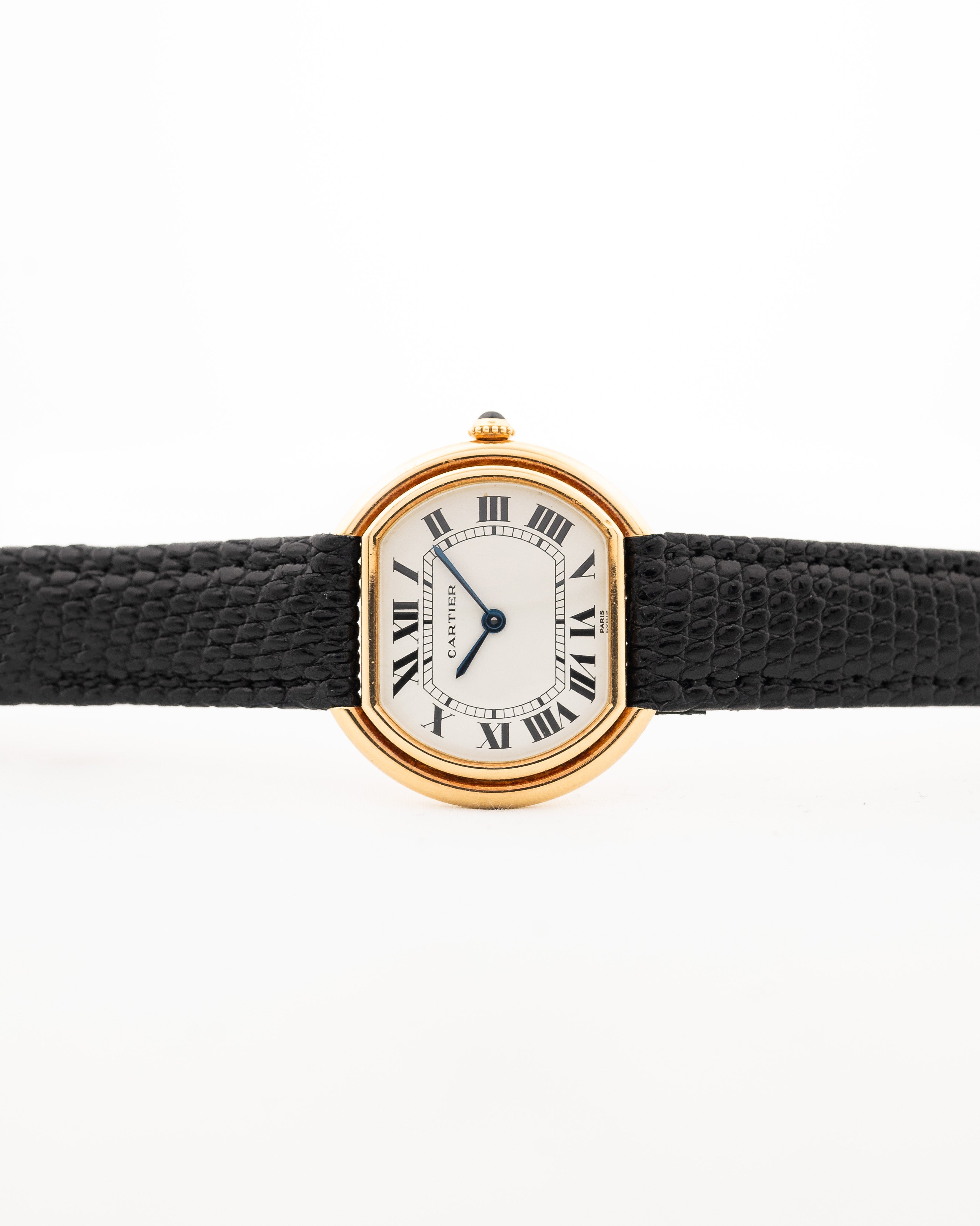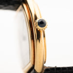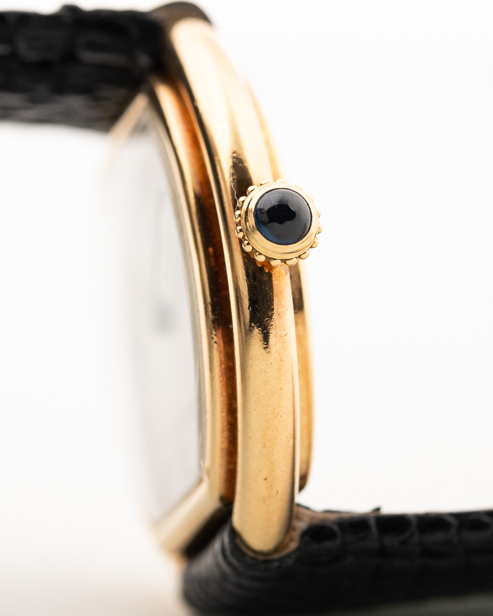 Our manual wind Cartier Ellipse Paris Ref. 78091 features a beautiful 32,5 mm 18k yellow gold case with a stunning stepped bezel. Of course, also this piece is finished with the characterizing blued steel minute and hour hand which makes this an absolute eye catcher.