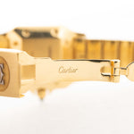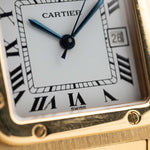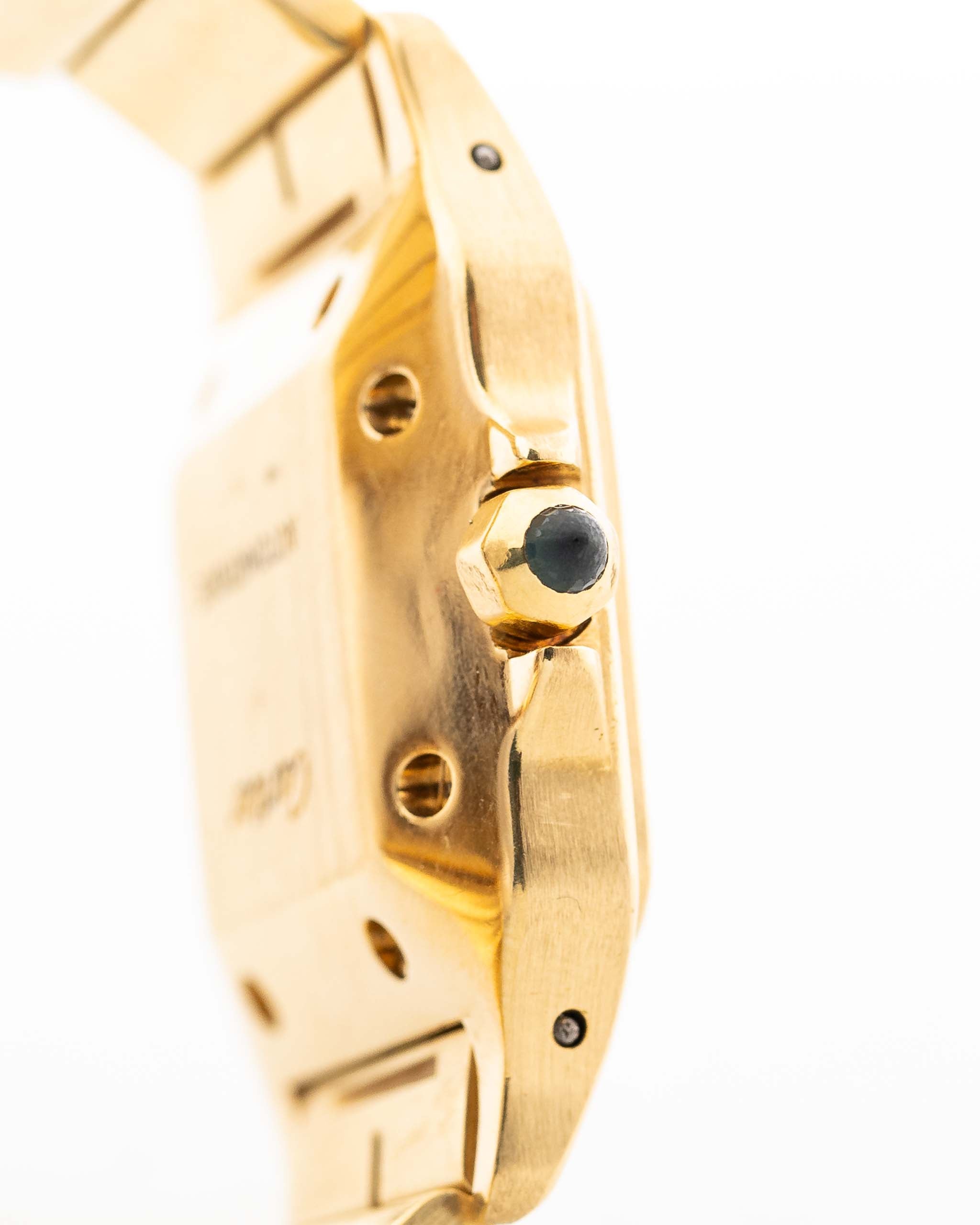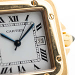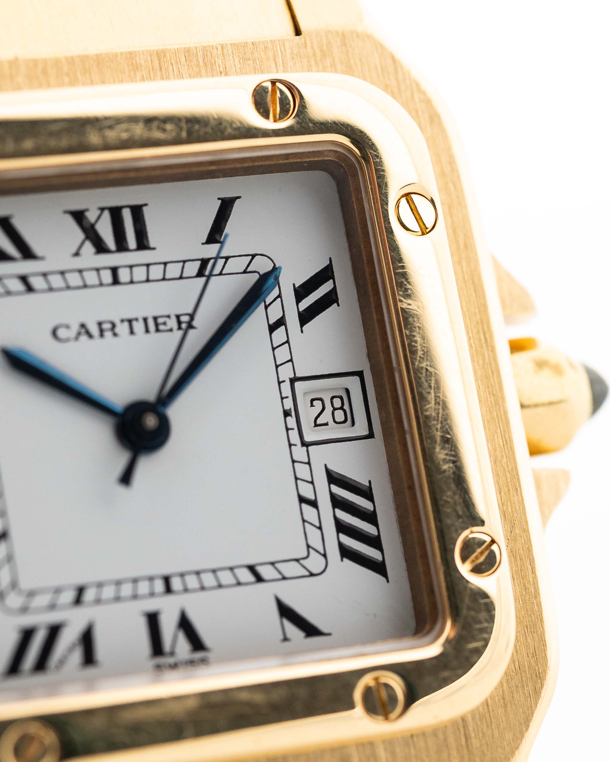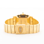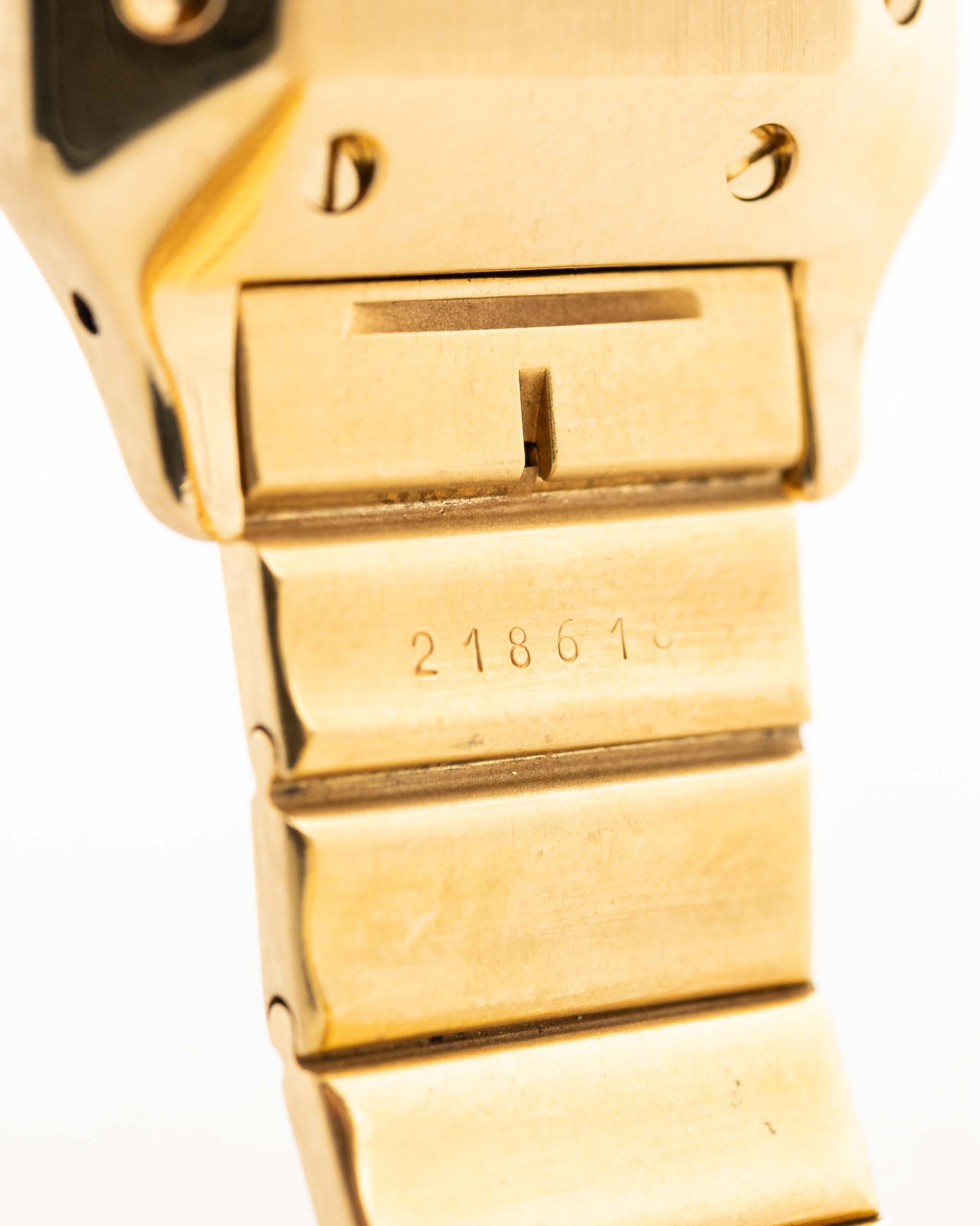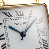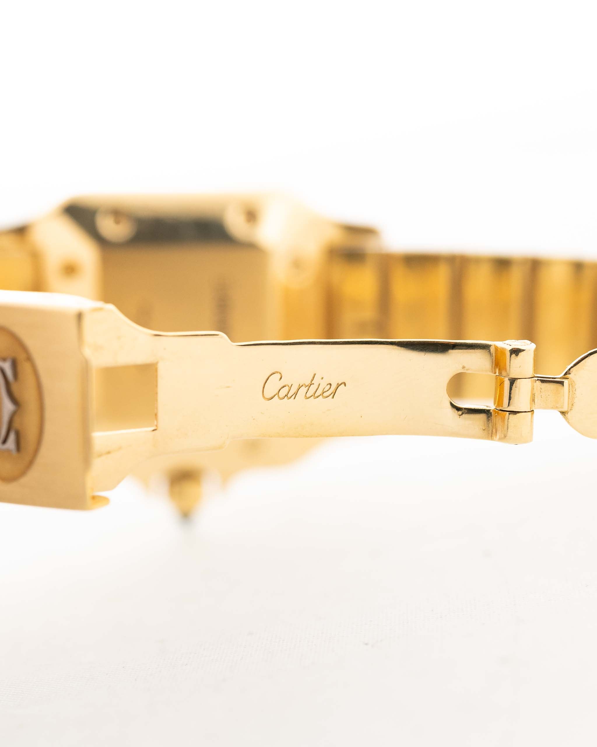 Closeup Photo of a Vintage Cartier Santos Carrée 2964 Dial from the 1980s. In Excellent condition, 27mm case in Yellow Gold with Automatic movement, Original white dial and Gold bracelet.