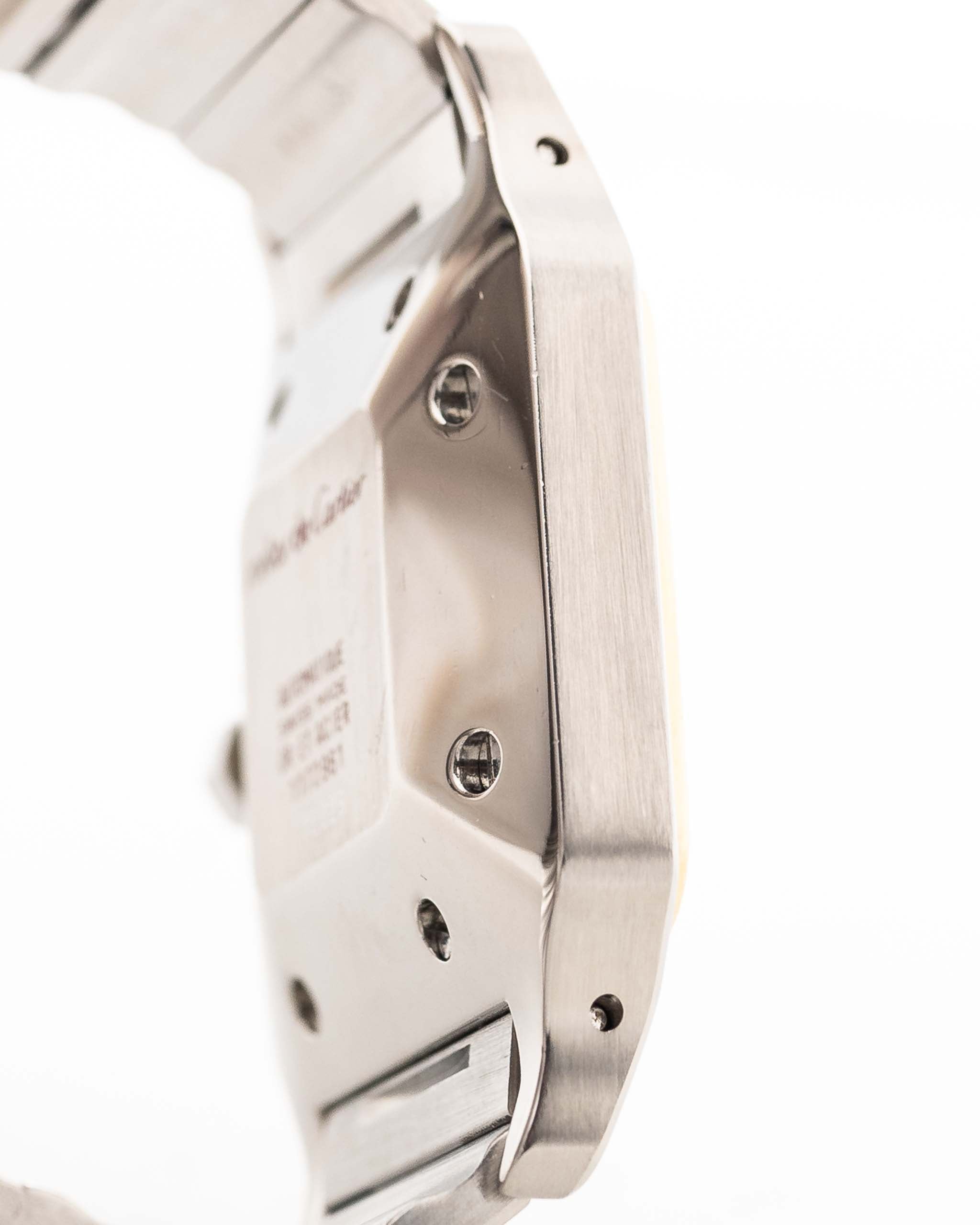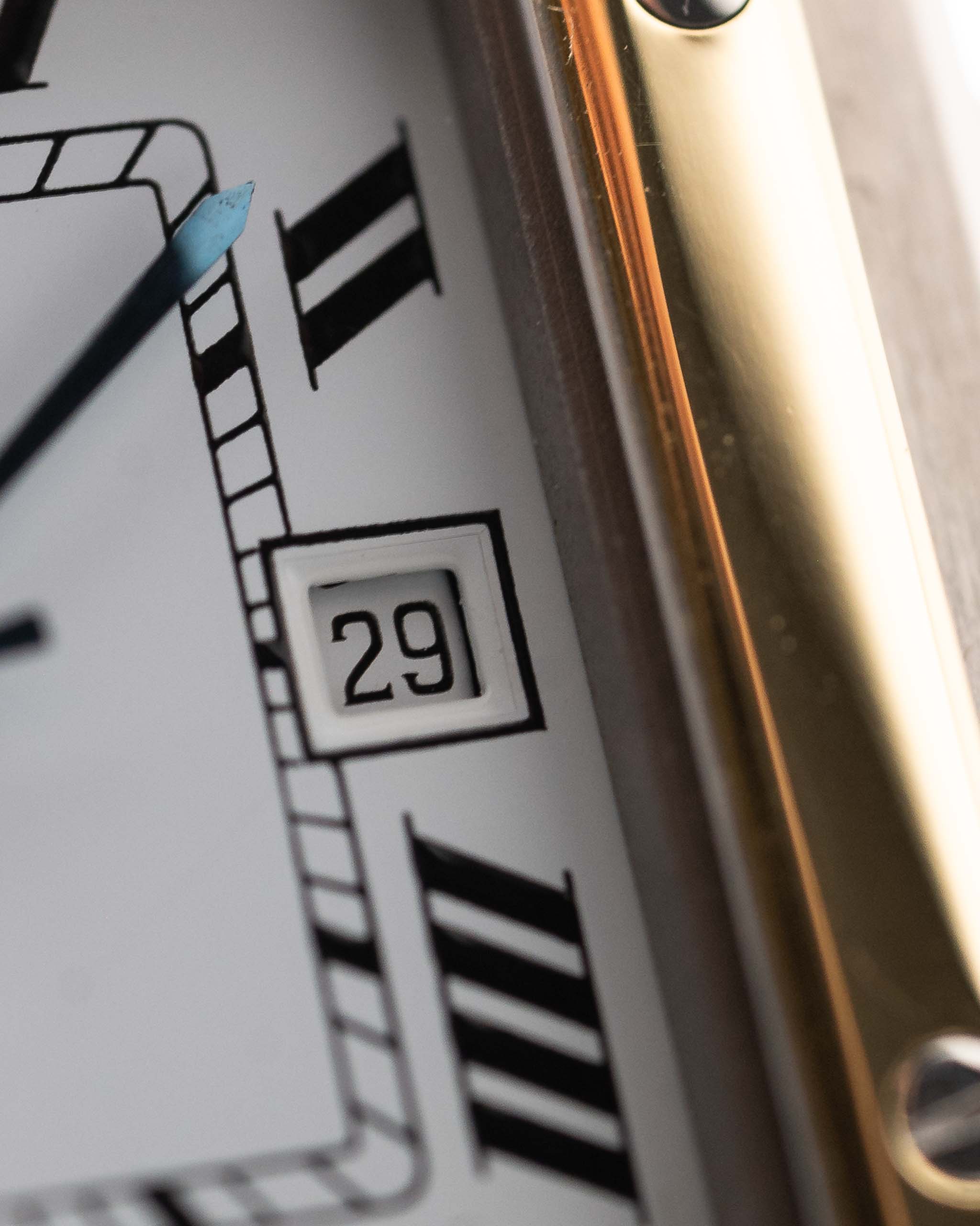 Vintage Cartier Santos Watch Carrée 2961 Two Tone 1980s stainless steel 18k gold dial closeup