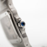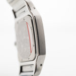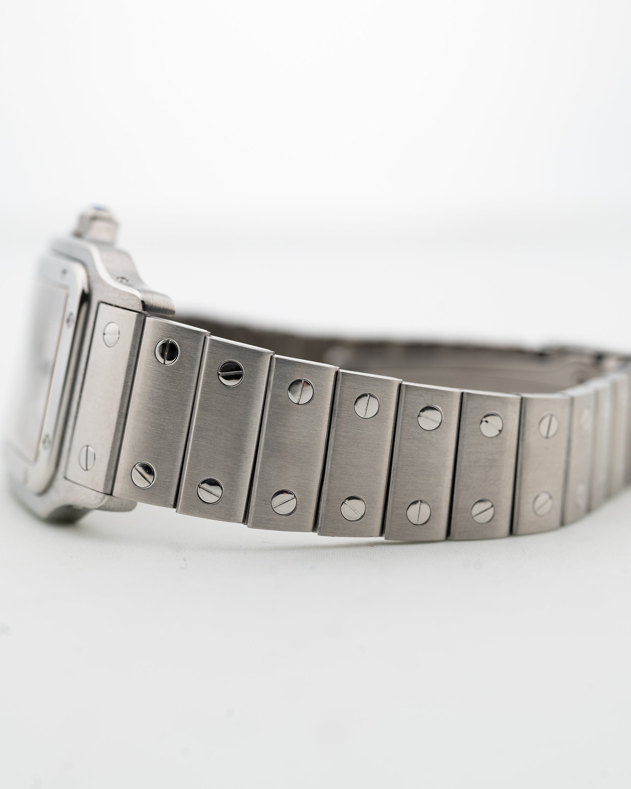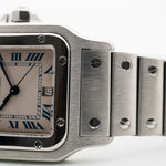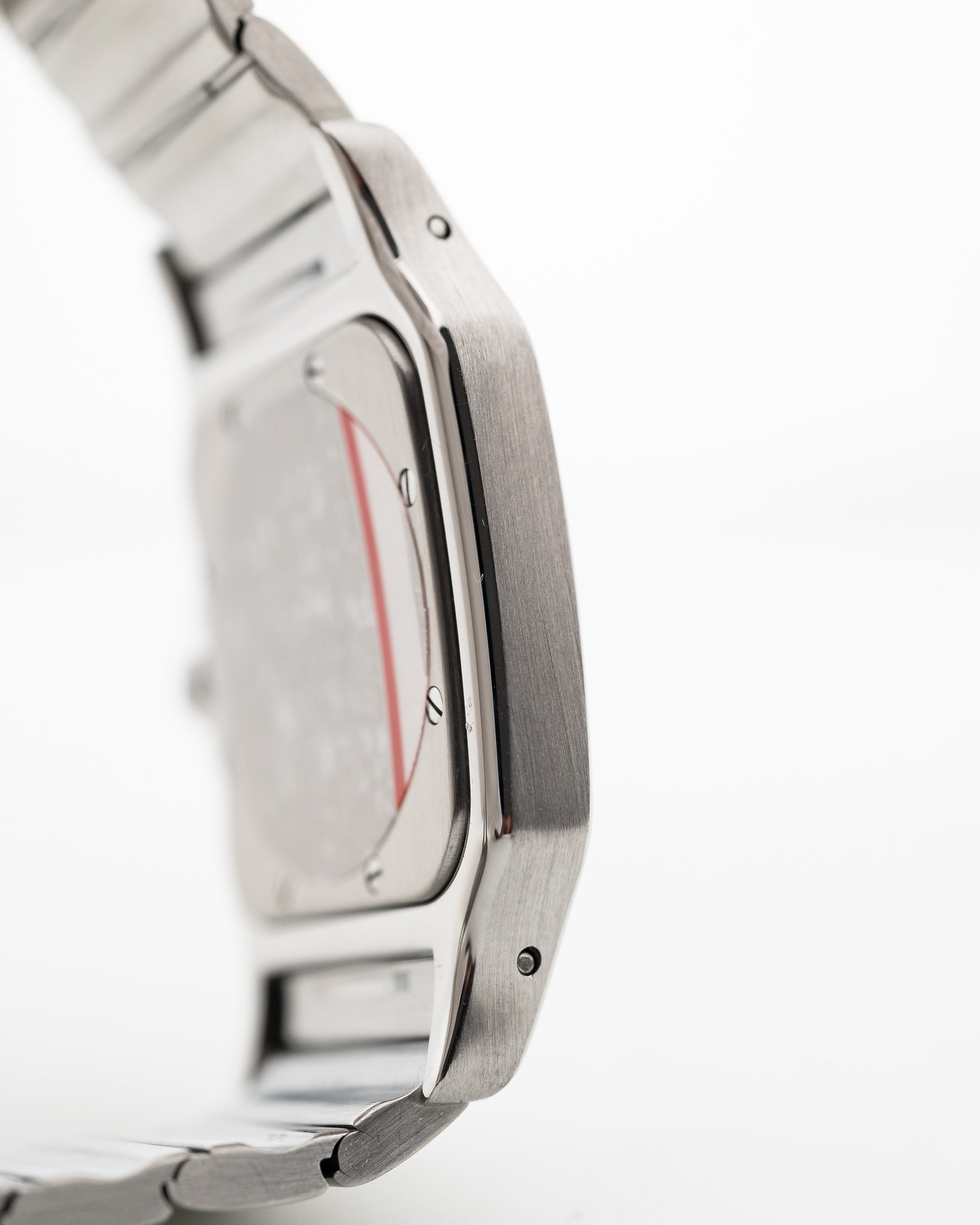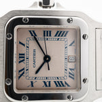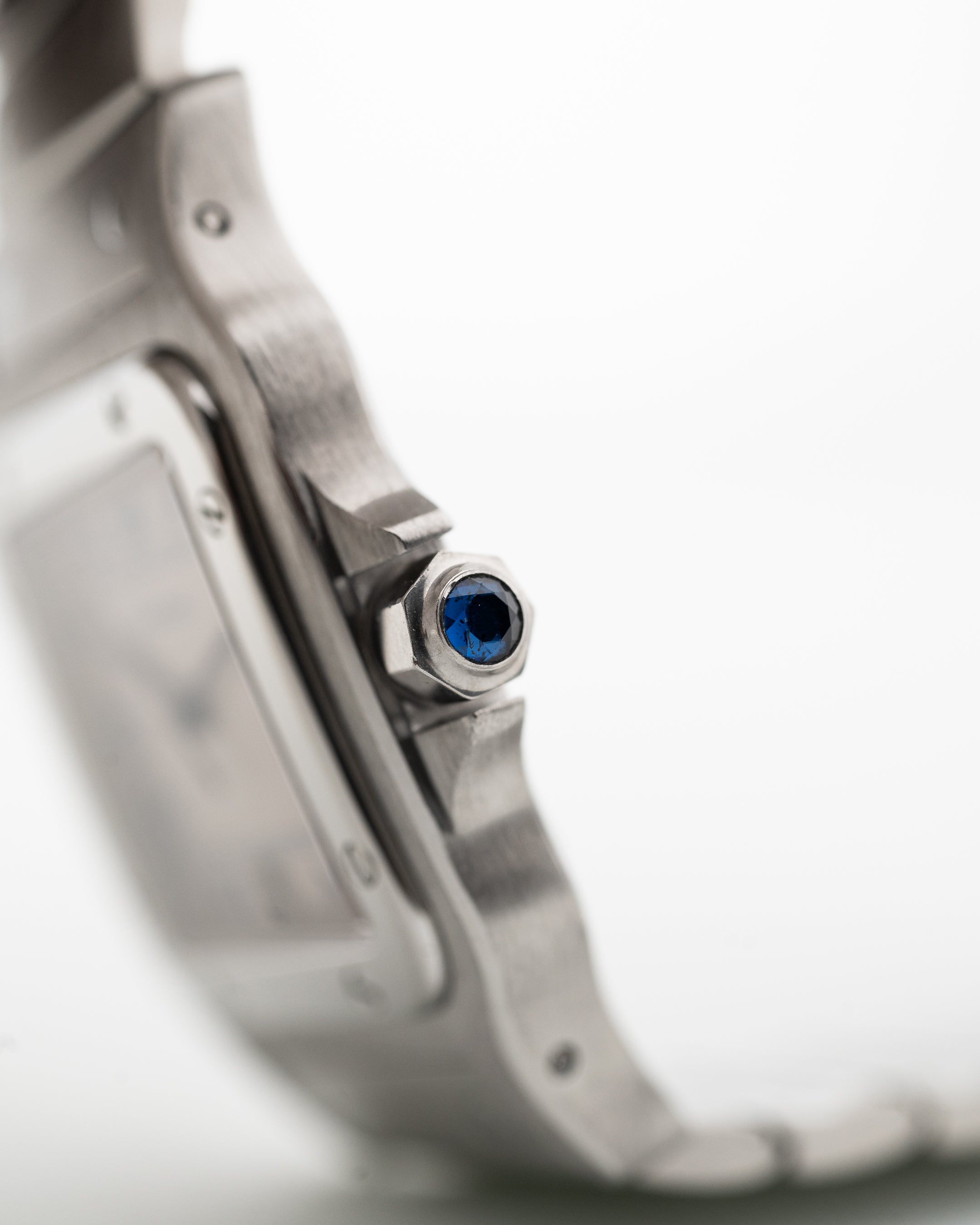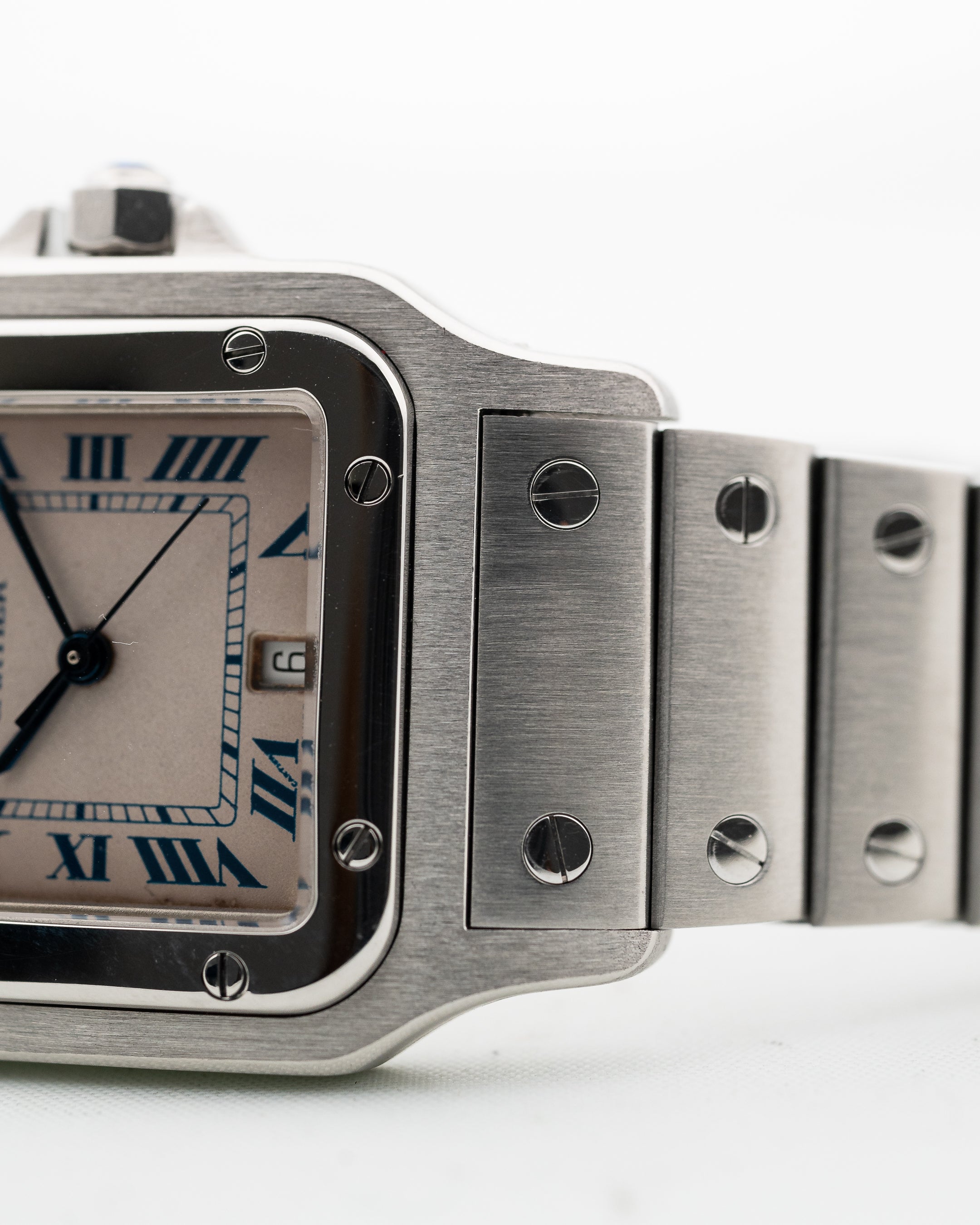 This stainless steel Cartier Santos Galbée cuts a striking figure with its beautiful dial, blued steel hands, and of course, the blue Roman numerals.