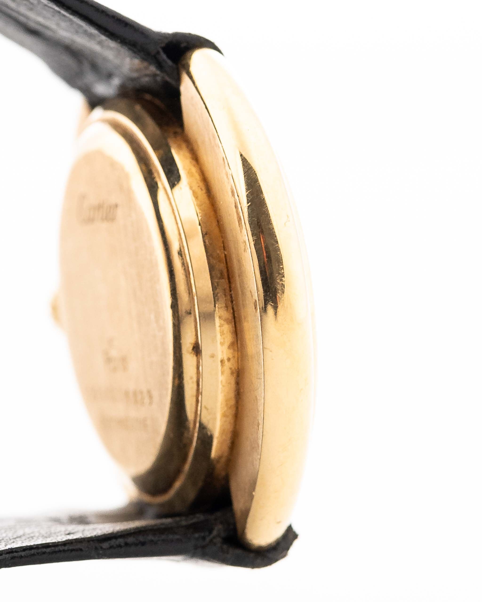 The classic Cartier Vendom is one of the twelve original models of the Louis Cartier Collection, introduced in 1973. The „PARIS“ text at six o’clock on the dial denotes that this Cartier was retailed out of a boutique in Paris or London.