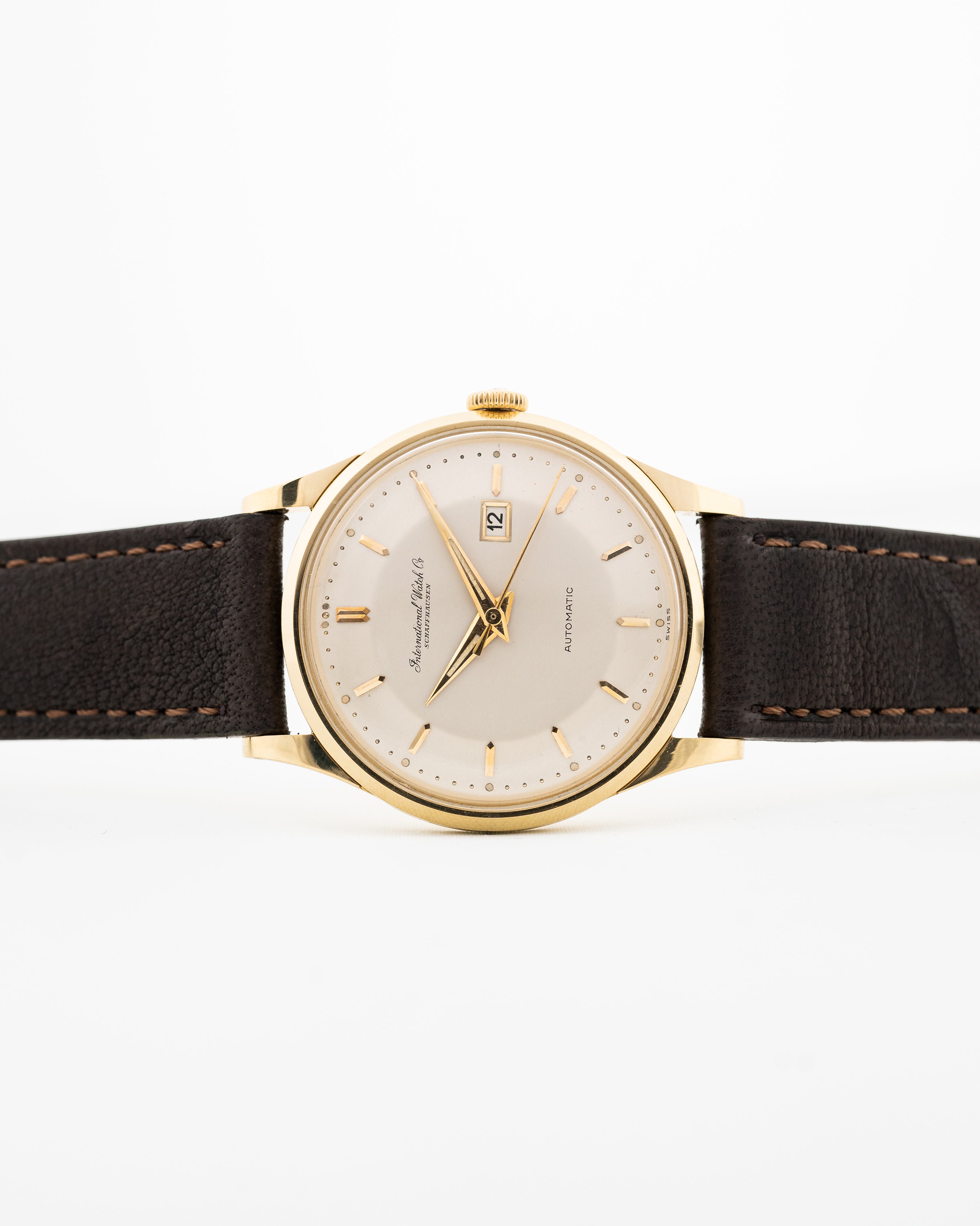 IWC has produced a very wide variety of wristwatches from an early time ranging from dress watches to aviation watches. This example with a 18k yellow gold case is in stunning nos condition and has a wonderful designed white pie pan dial with simple baton hour markers would remain a constant in anyone's collections.
