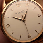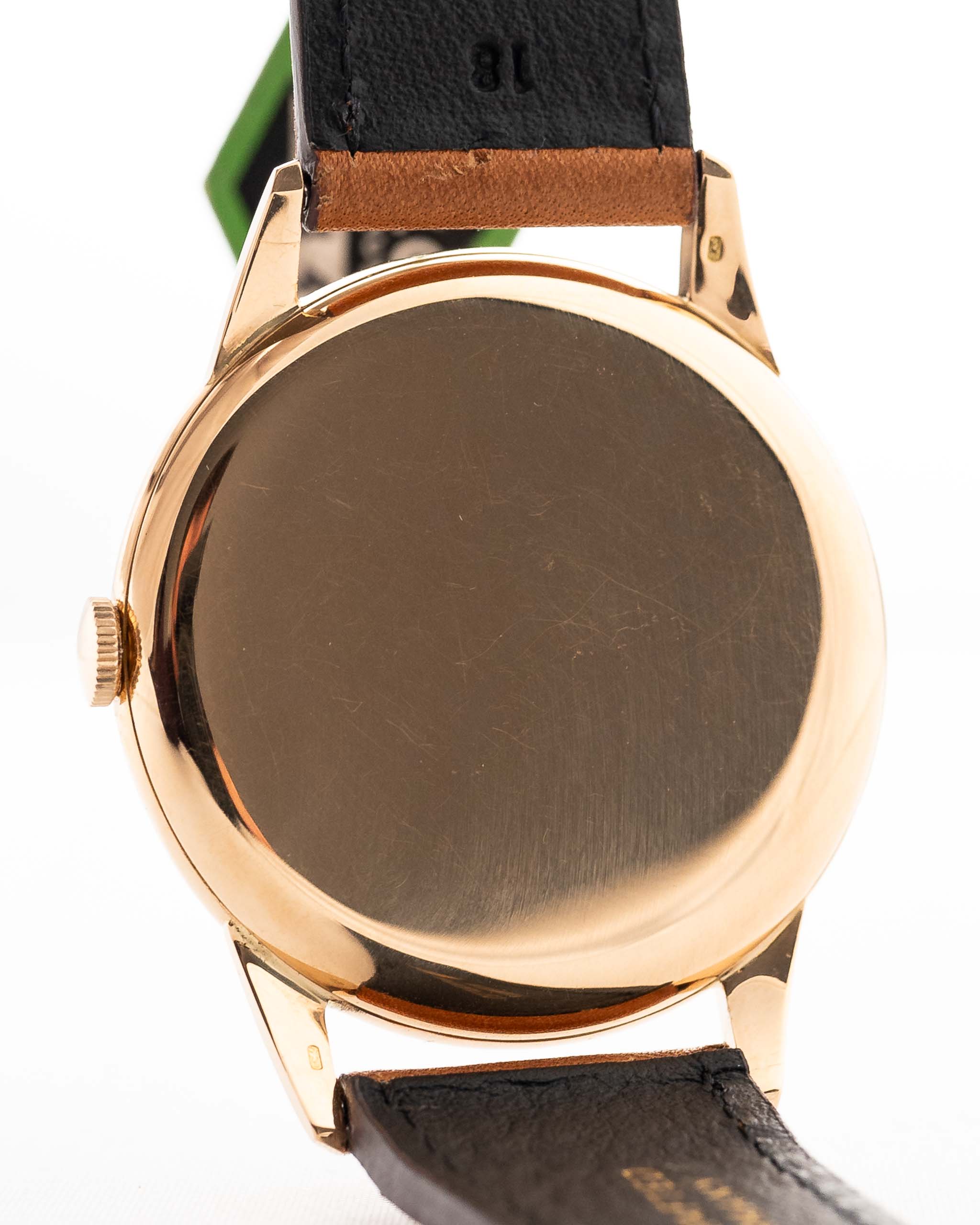 This exceptional IWC dress watch from 1958 embodies the golden era of Swiss watchmaking — combining mechanical integrity with visual restraint. Housed in an oversized 36 mm 18k rose gold case, its design is elevated by large, slightly downturned lugs that add both presence and poise on the wrist.