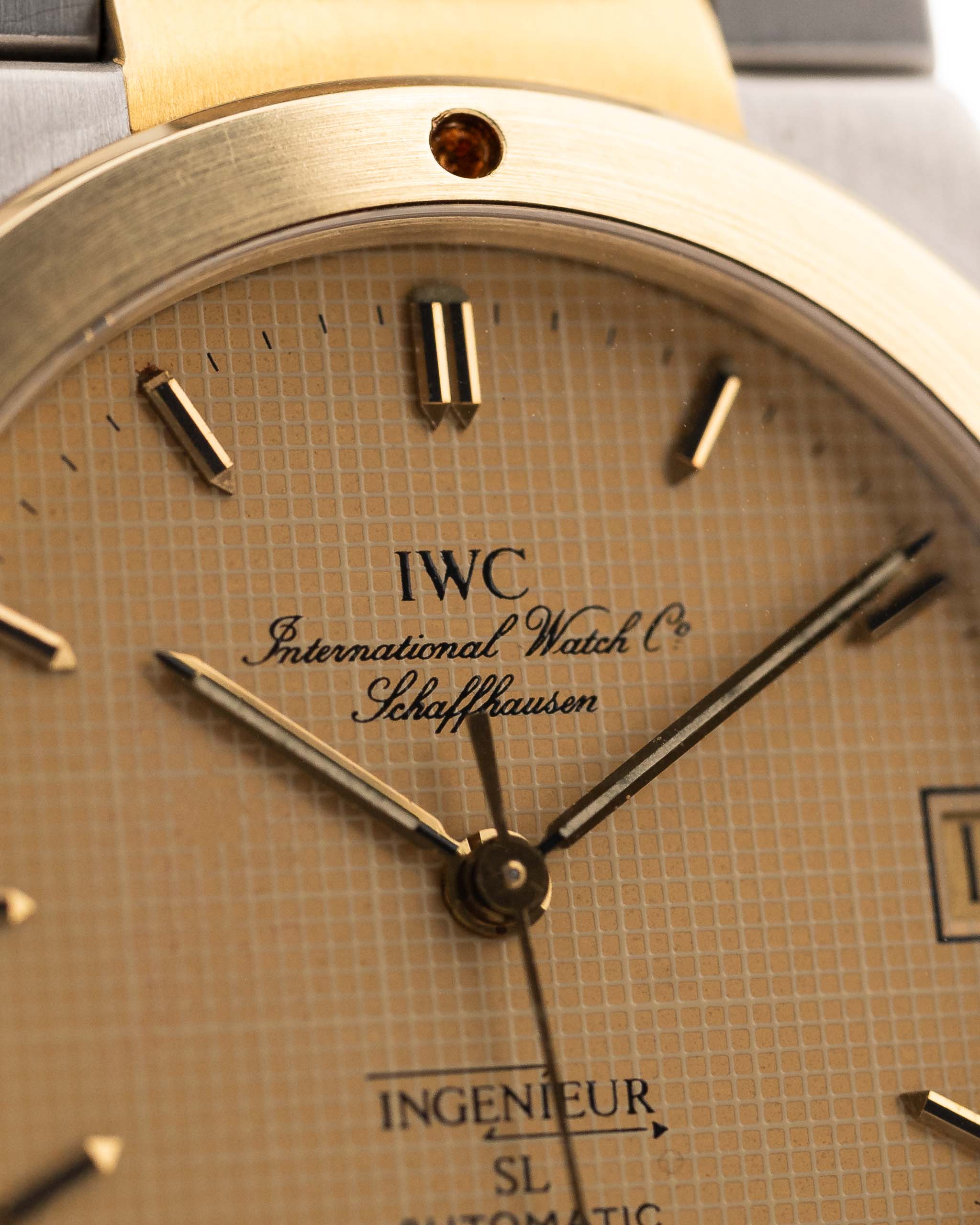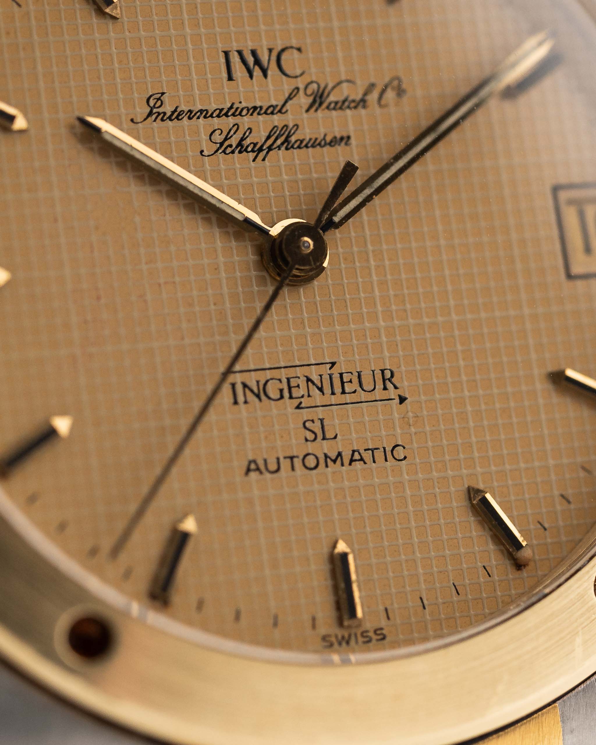 Vintage IWC Ingenieur 3505 SL Two Tone watch from 1987. Golden Papergraph Dial and Two Tone Bracelet.