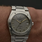 The classic IWC signature on the grey graph-paper dial adds a sort of studious sophistication to this decidedly luxury but accessible 1980s sport watch and the best part is that it comes in near NOS condition.