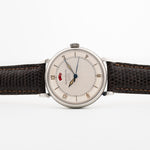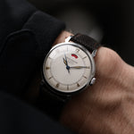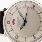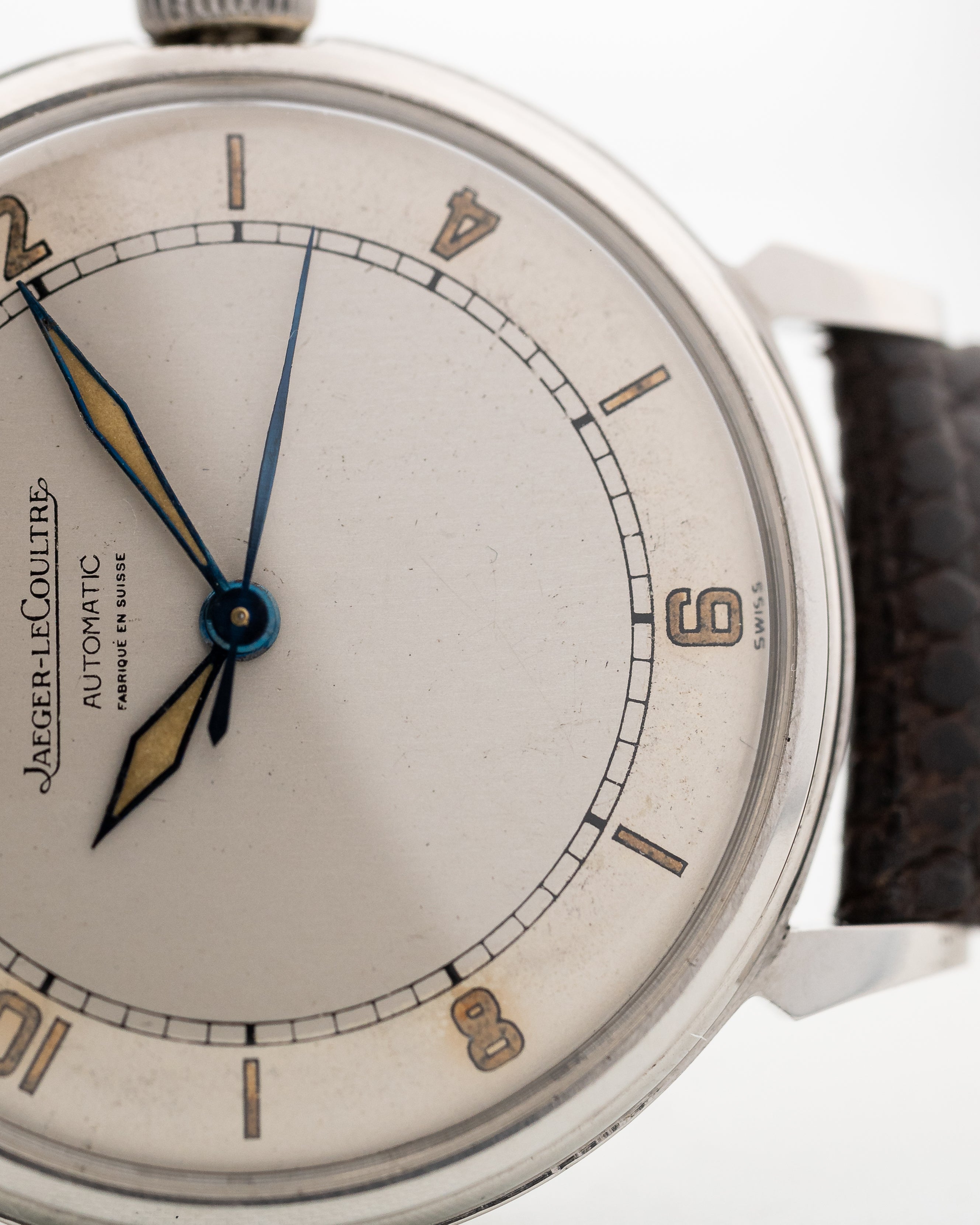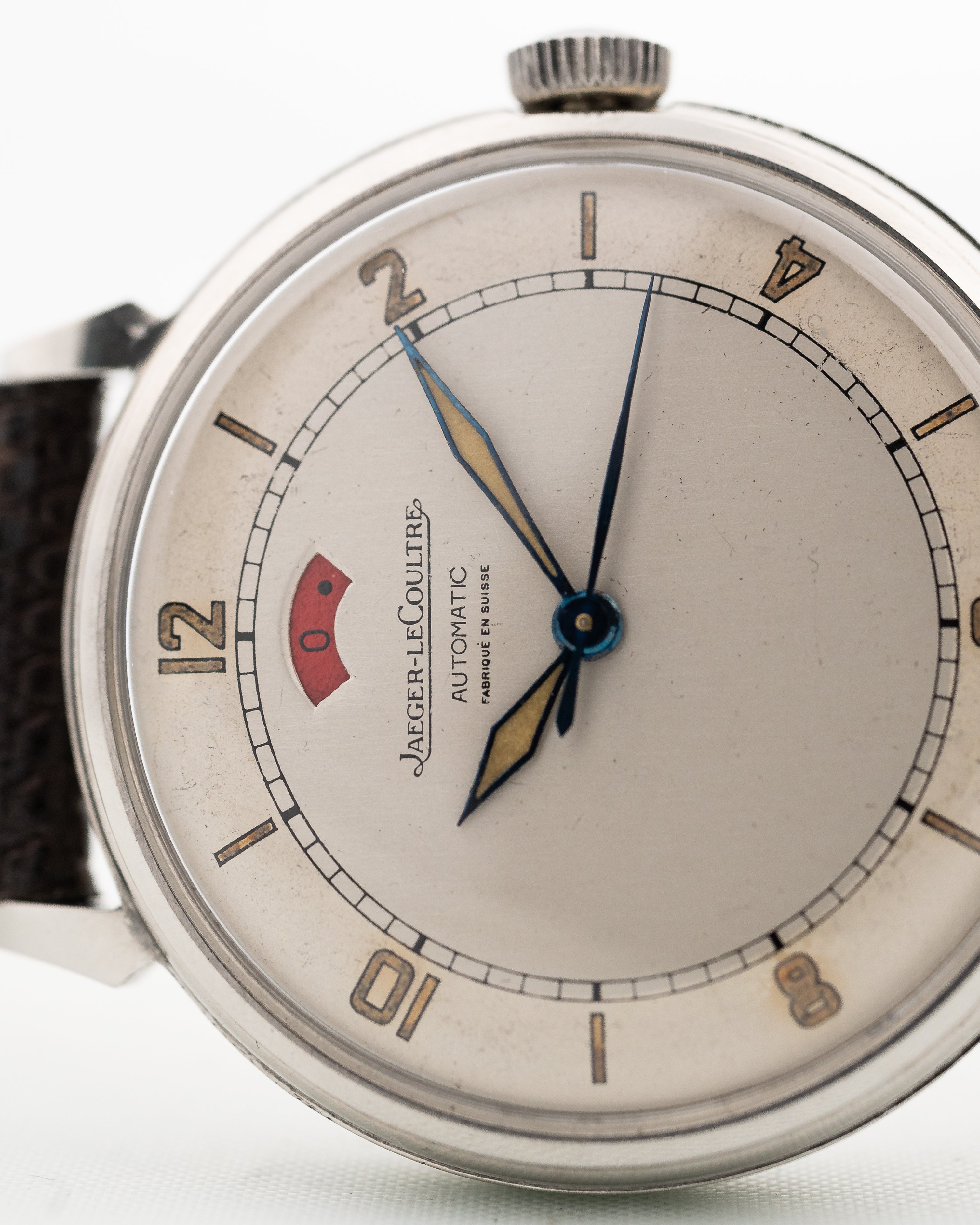 The caliber 481 was one of the first automatic movements to display the power reserve, and it has the “bumper” effect caused by the swinging motion of the rotor. We love the symmetrical design especially the sword hands and evenly aged lume.