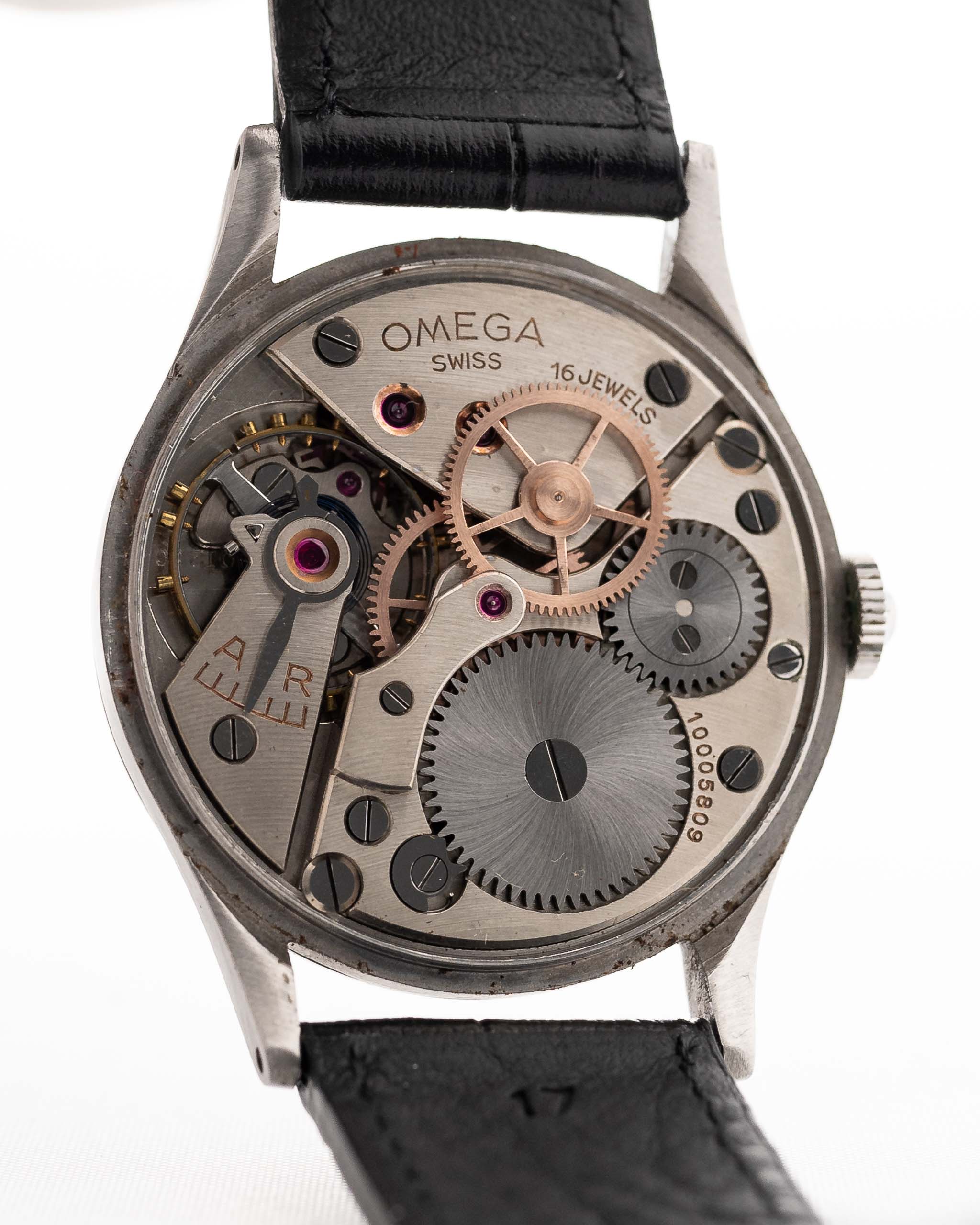 Another rare Omega find from the 40s in unbelievable condition. Clean silver two tone dial, arabic numerals, syringe hands and blued steel second hand - a composition of elegance.
