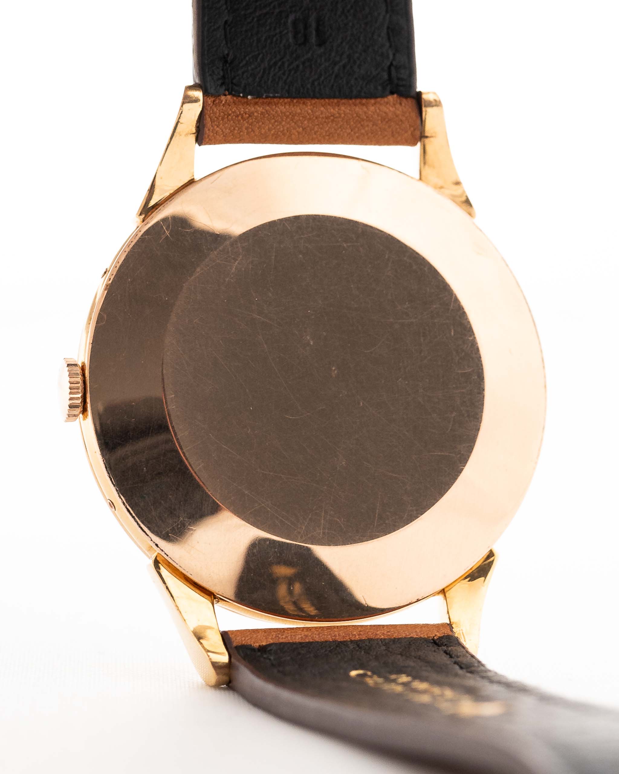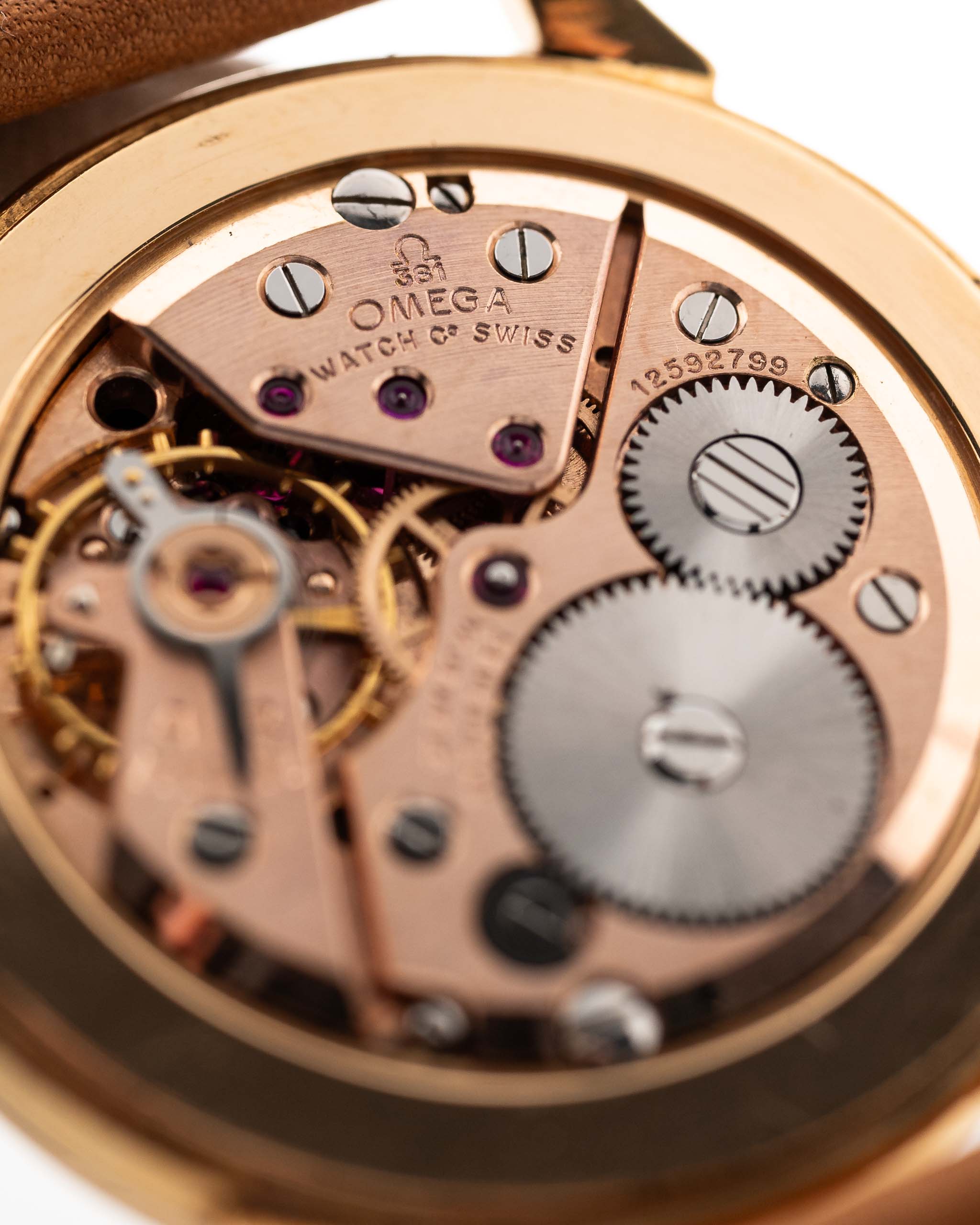 The Omega Cosmic was introduced in 1947 as the most prestigious model in Omega’s post-war catalogue — and this Reference 2486 shows exactly why. Housed in a rare 37 mm rose gold plated case, it features a complete calendar with moonphase complication, powered by the revered Caliber 381, based on a Lemania ébauche.