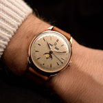 Preserved in beautiful original condition, this Cosmic wears large, both in size and presence. For collectors of vintage complication watches, this one is pure stardust.