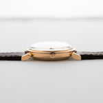 Here you can see a fascinating dress watch made by Omega in 1952. It features a 35 mm 18k rose gold case with thin and simple angled lugs and a stunning two tone white dial with even patina and rose gold arrow hour markers, a piece that take your breath away.
