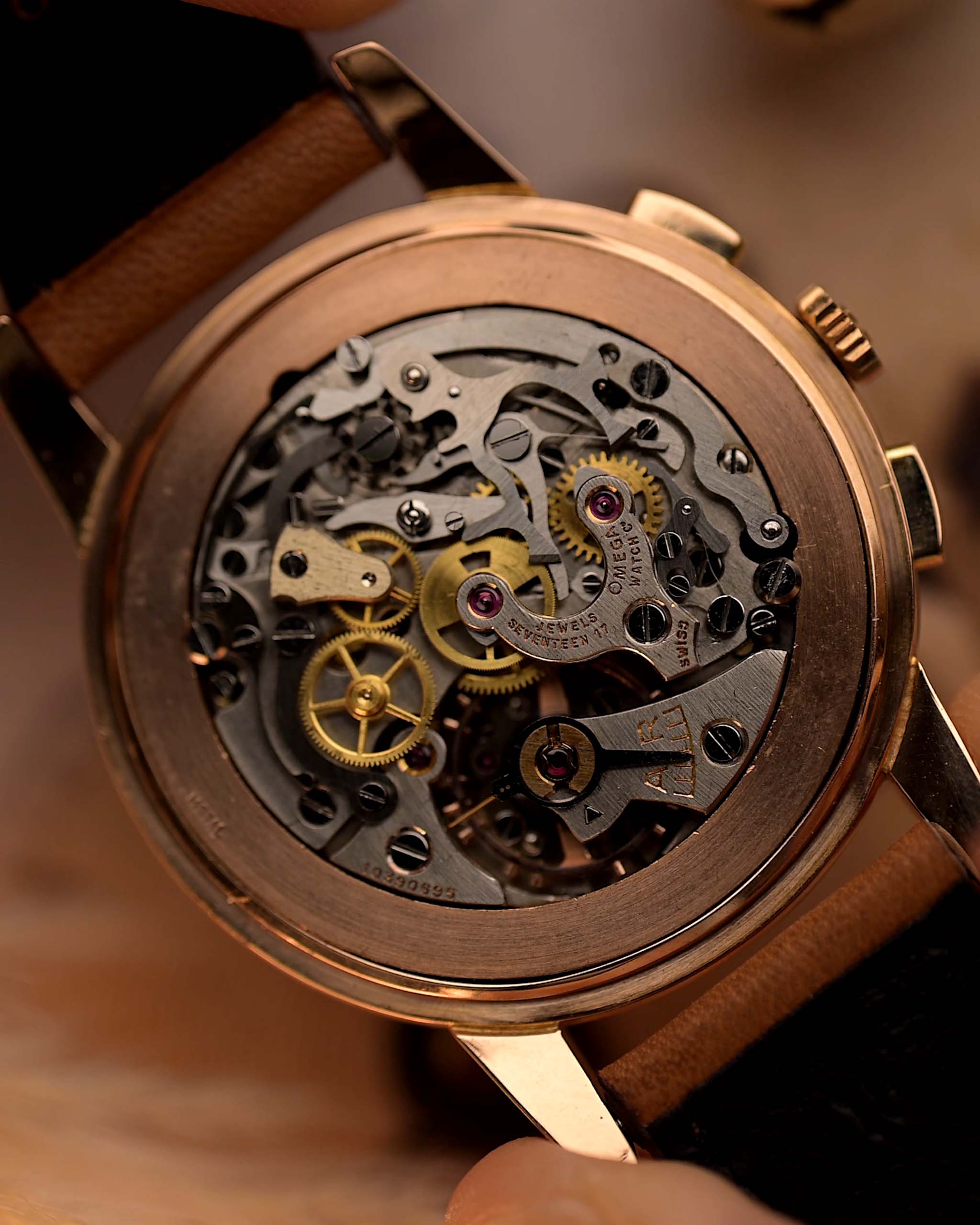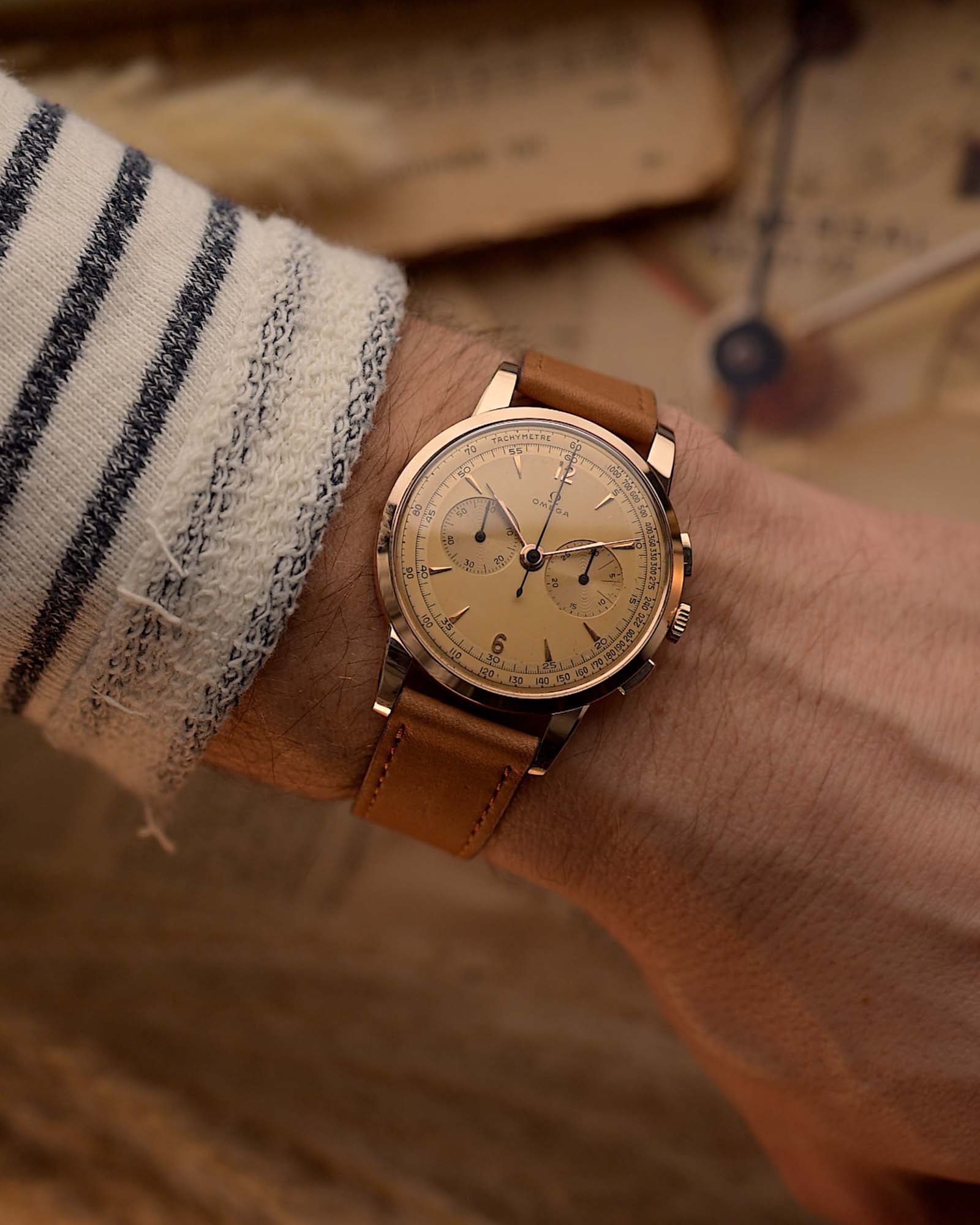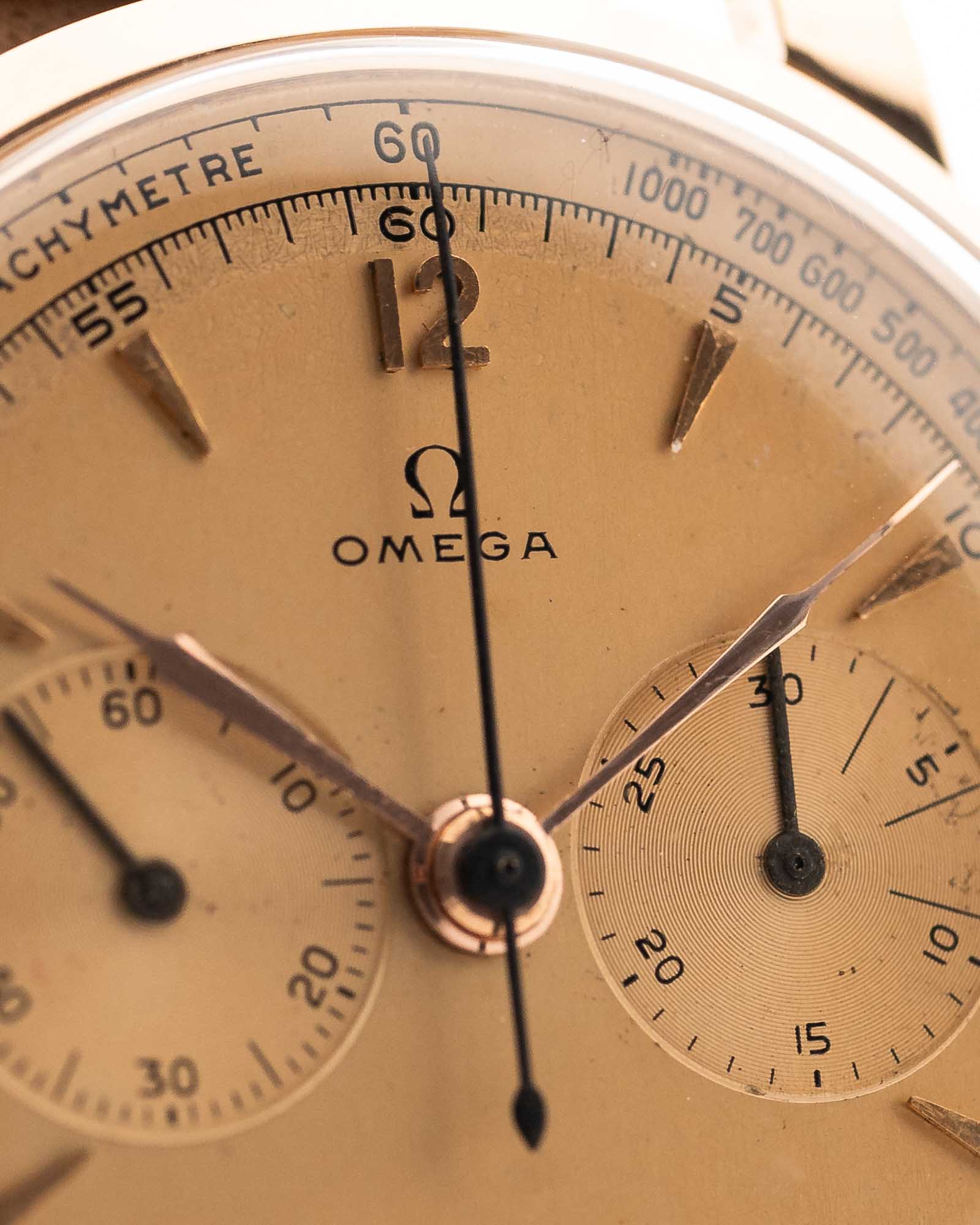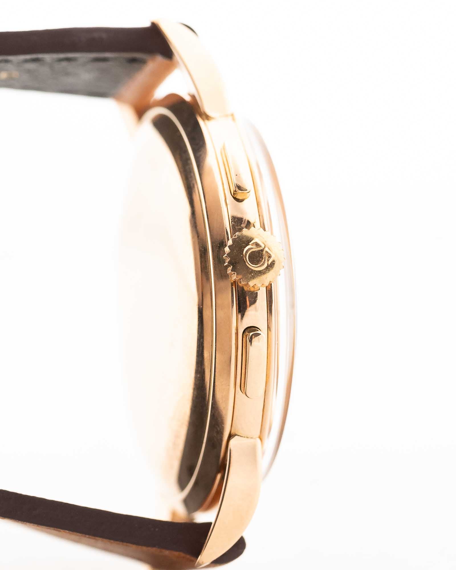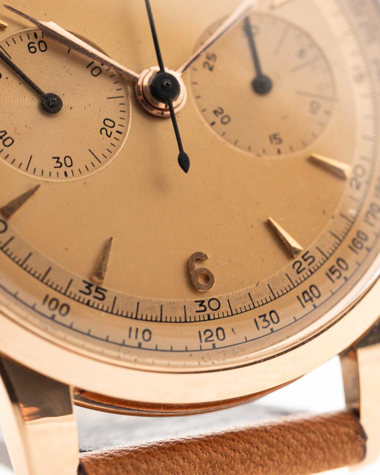 A true collector’s gem from the golden age of chronographs — the Omega Chronograph Cal. 320 Jumbo in 18k rose gold.