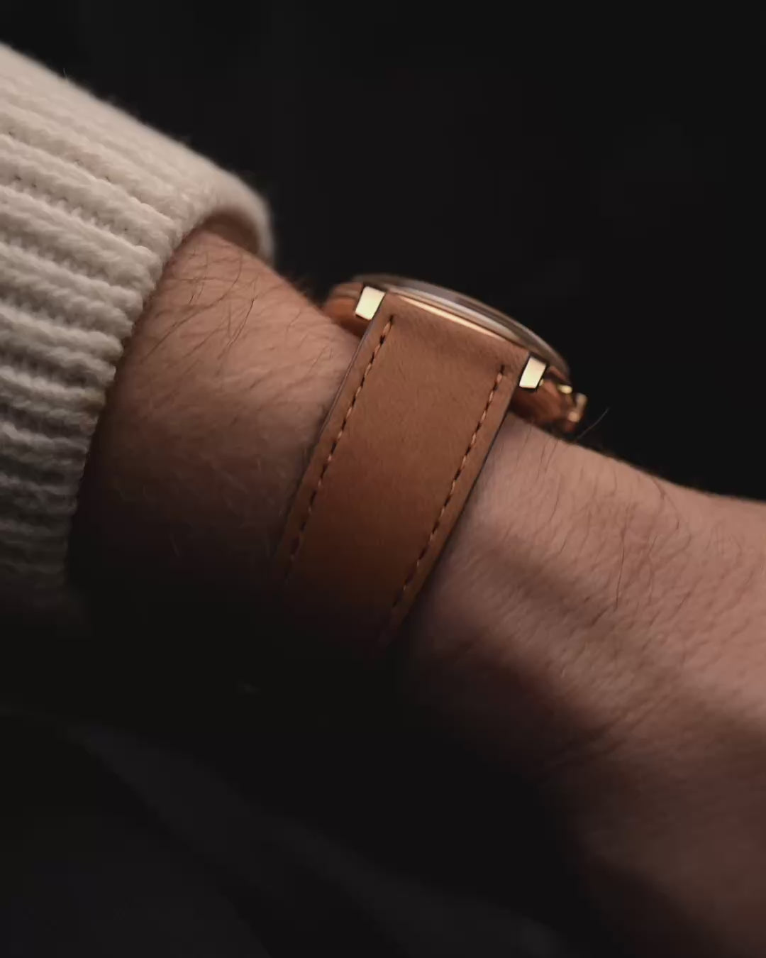 - cognac brown GOLDAMMER Kardinal leather strap fitting up to 20 cm wrist size / 2 mm thick