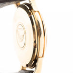 Housed in a 34 mm 14k yellow gold case, it features the coveted “pie pan” silver sunburst dial — named for its sharply faceted, multi-level design — enhanced here by a rare crosshair layout and elegant baton hour markers. Slightly downturned lugs give it a refined wrist presence, while the automatic chronometer Caliber 551 offers excellent performance within a screw-down case back.