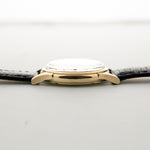 This compact and beautiful Omega Constellation automatic chronometer has everything you want in a dress watch: 35 mm 14k yellow gold case, center seconds, a very beautiful Pie Pan Dial and rare slim baton hour markers with onyx centers. First released in 1952, the Constellation was Omega's answer to the Rolex Datejust.