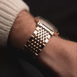 Powered by the chronometer-certified Caliber 561 automatic, this watch combines reliability with quiet luxury. And the true cherry on top: a rare, matching rose gold plated “Beads of Rice” bracelet, completing the piece with quintessential Omega grace.