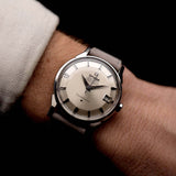 Well-proportioned, simple, and classic, this Constellation features a screw-down case back, Omega automatic chronometer Caliber 561 and great dog leg lugs.