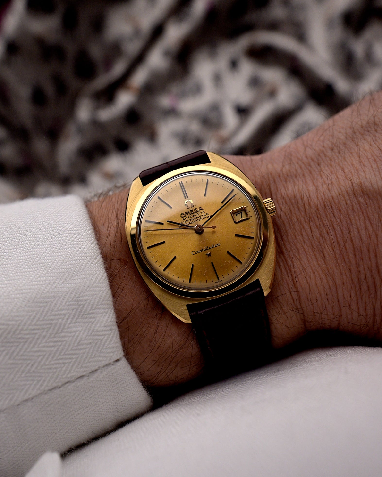 Well-proportioned, simple, and classic, this Constellation features a screw-down case back, Omega automatic chronometer Caliber 561.