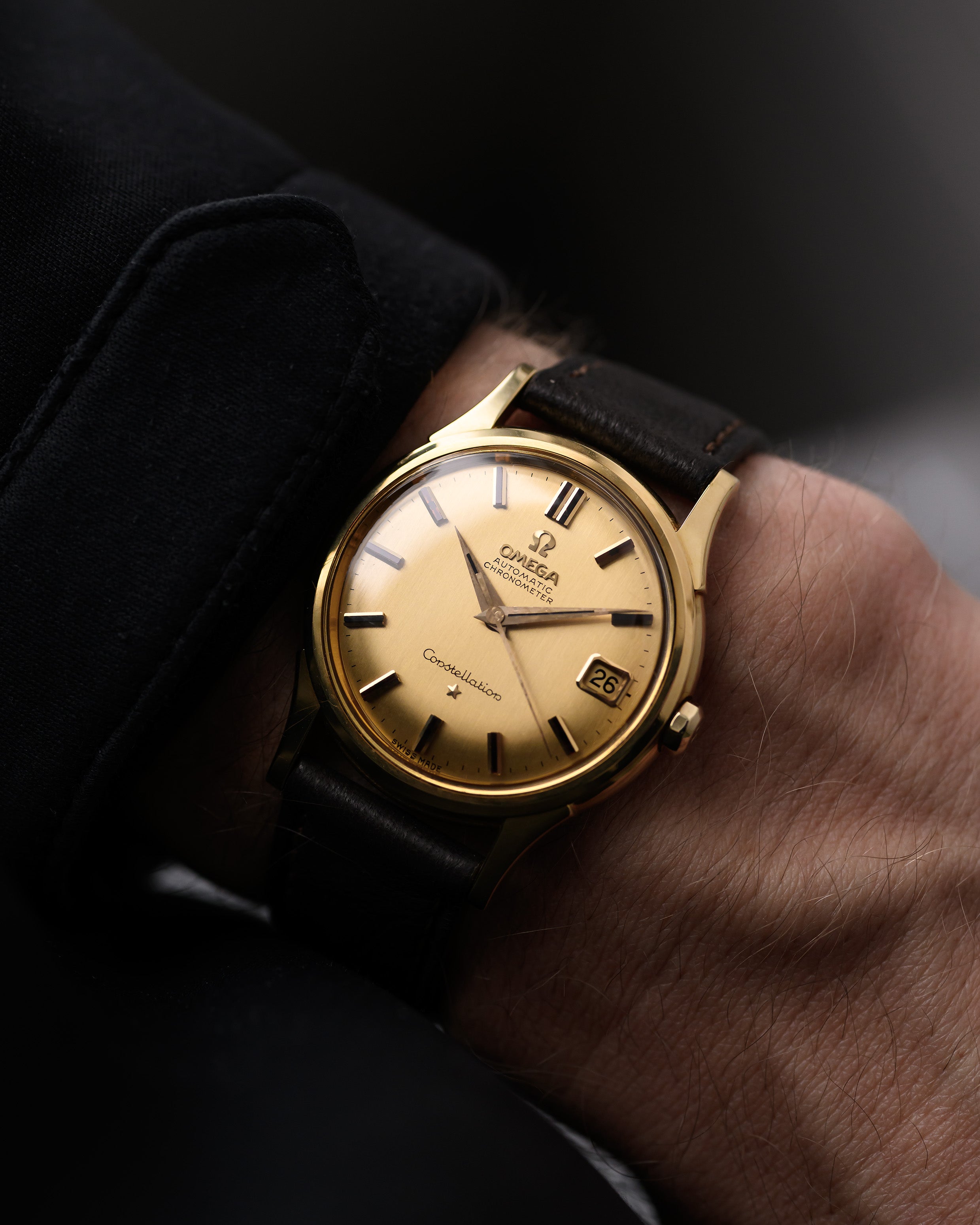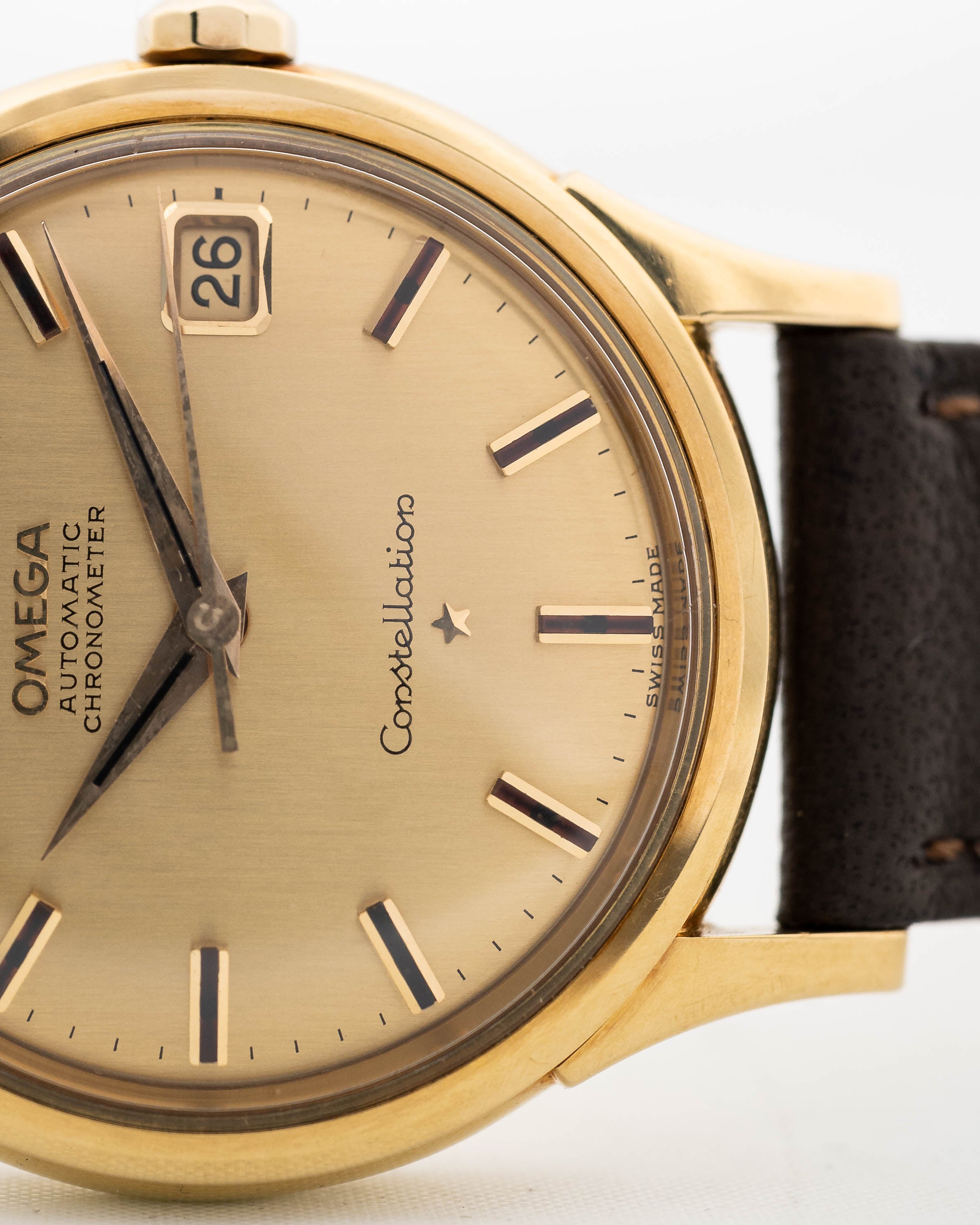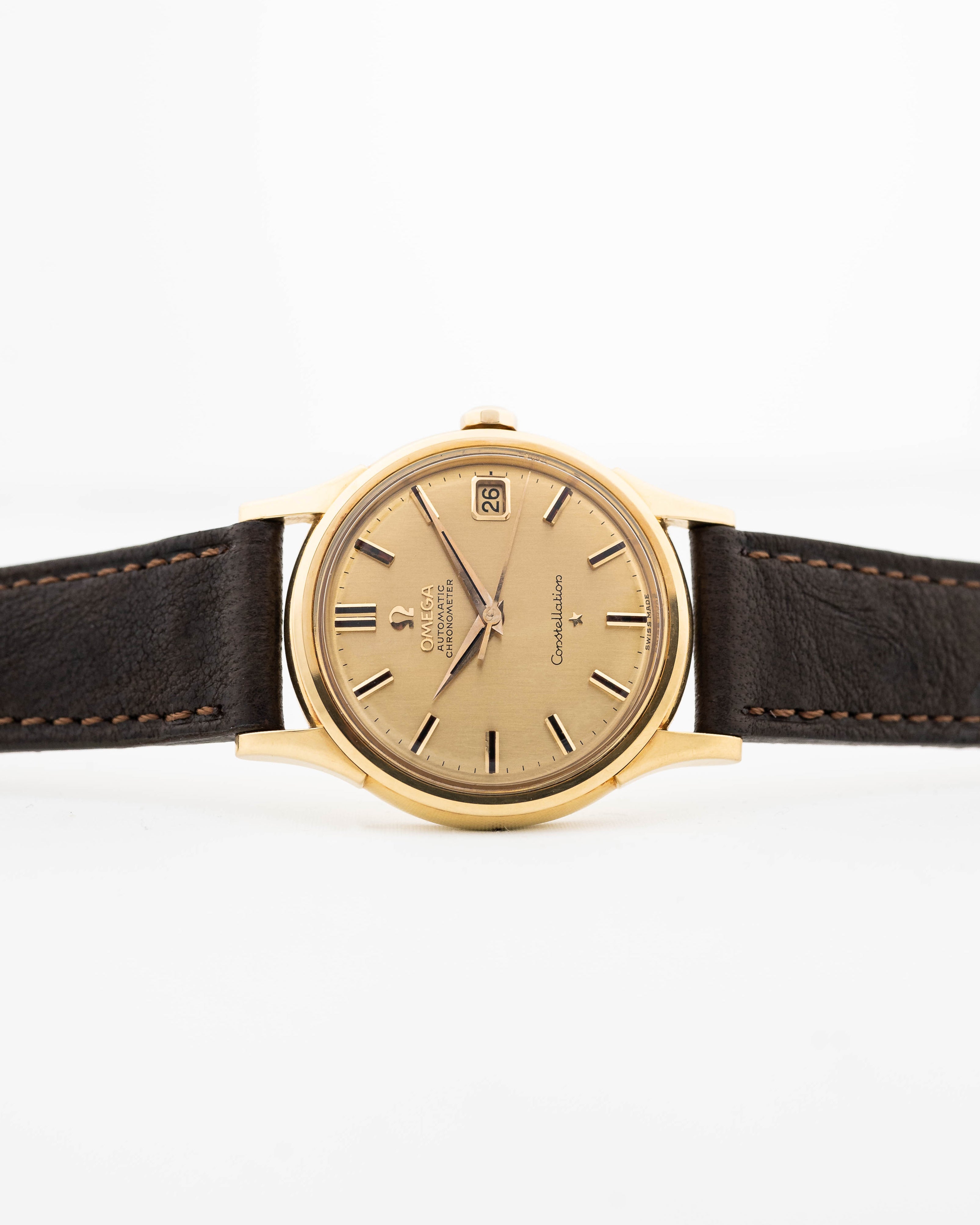 Well-proportioned, simple, and classic, this Constellation features a screw-down case back, Omega automatic chronometer Caliber 561 and great slightly down turned lugs.