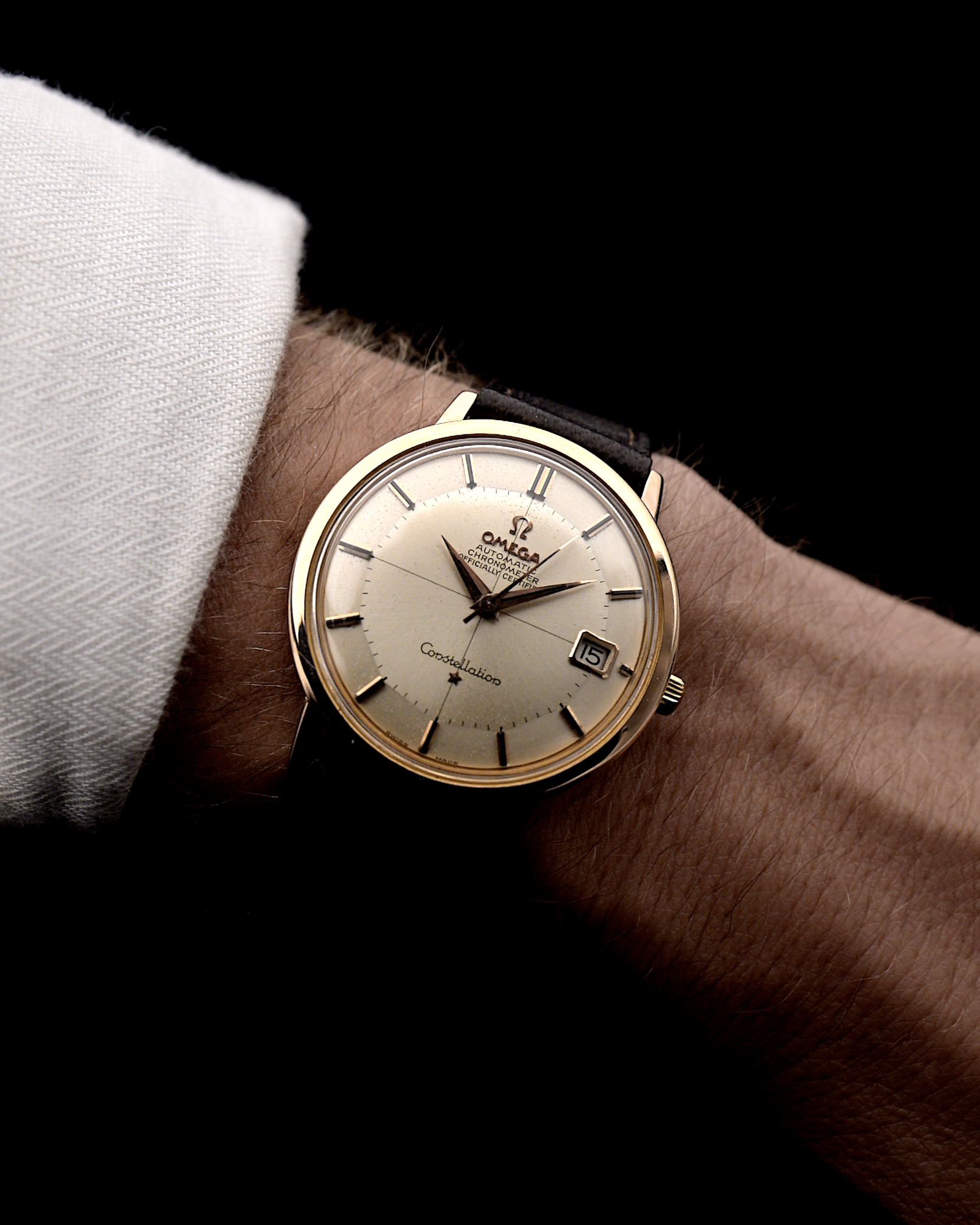 Well-proportioned, simple, and classic, this Constellation features a screw-down case back, Omega automatic chronometer Caliber 561 and great slightly angled lugs.