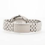 This compact and beautiful Omega Constellation automatic chronometer has everything you want in a dress watch: 35 mm stainless C-Shape steel case, center seconds, a very beautiful silver linen dial and great stick hour markers with onyx inlay. First released in 1952, the Constellation was Omega's answer to the Rolex Datejust.