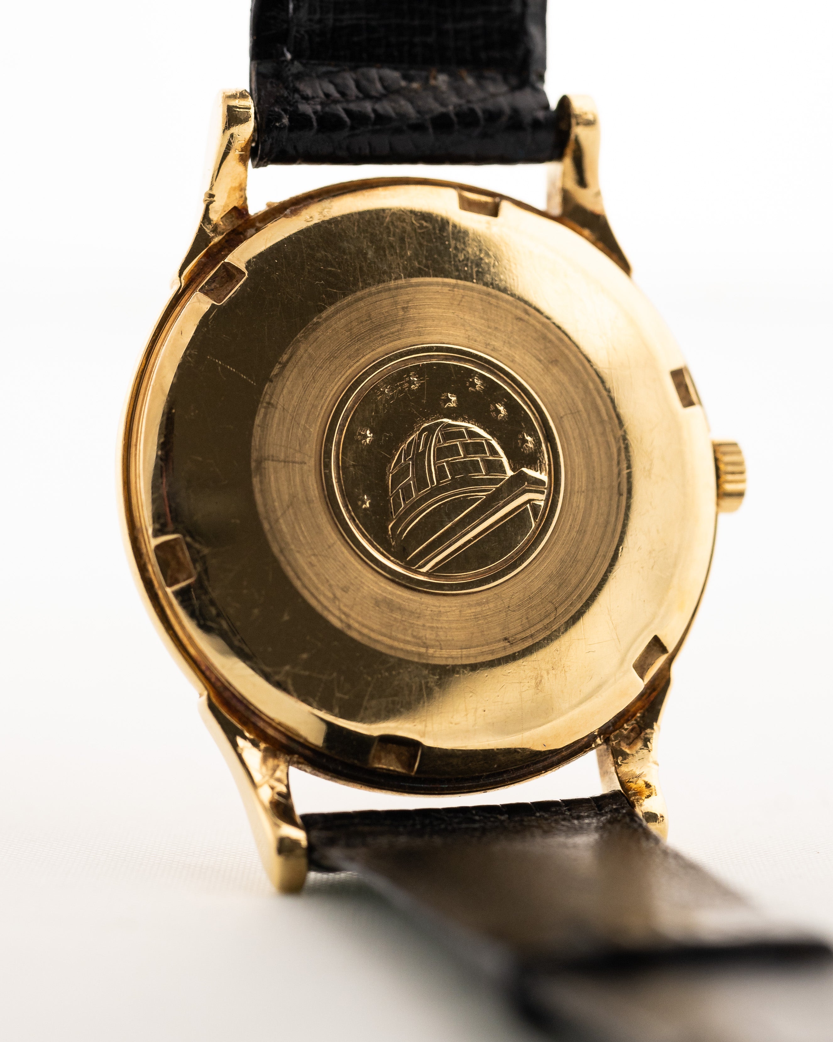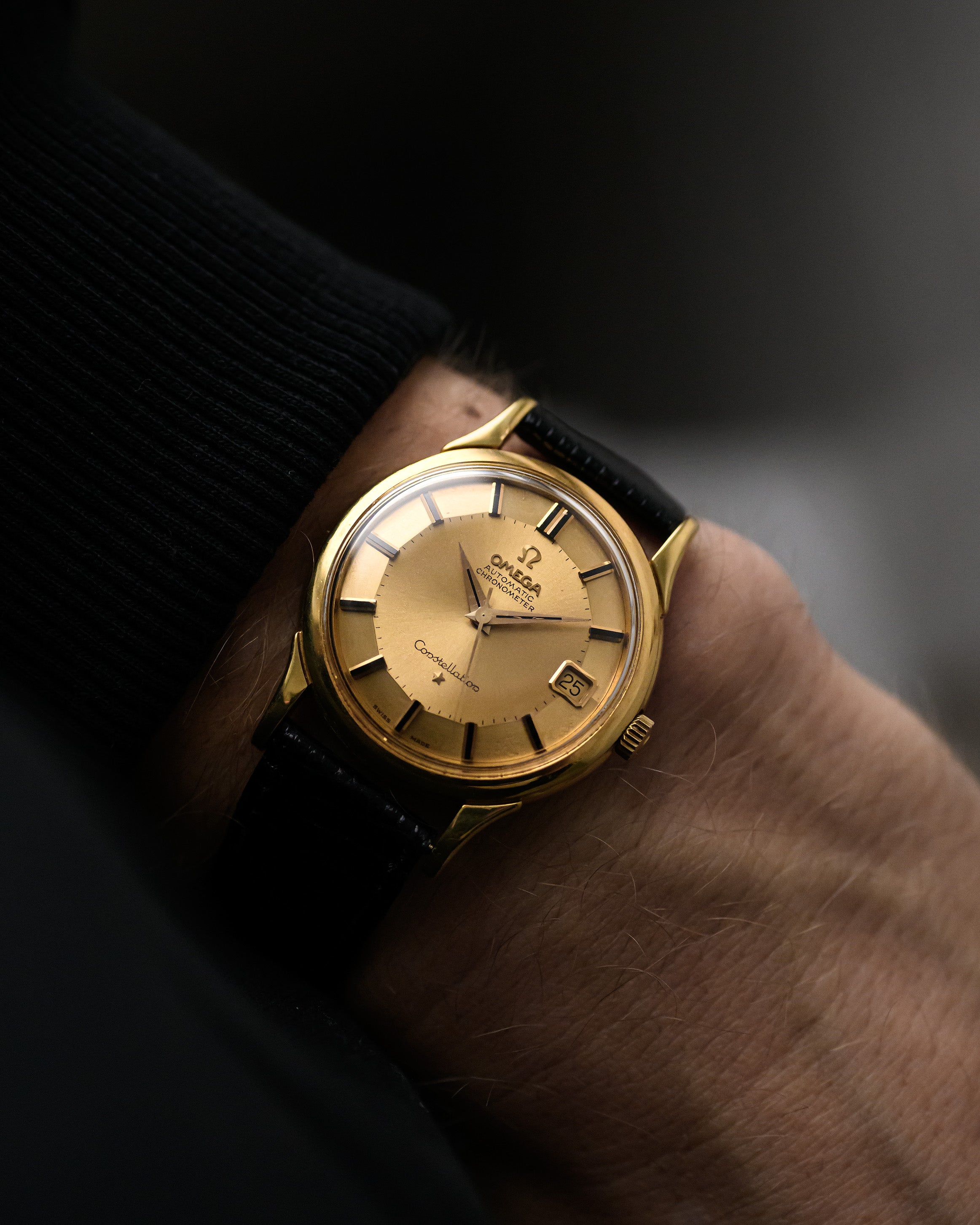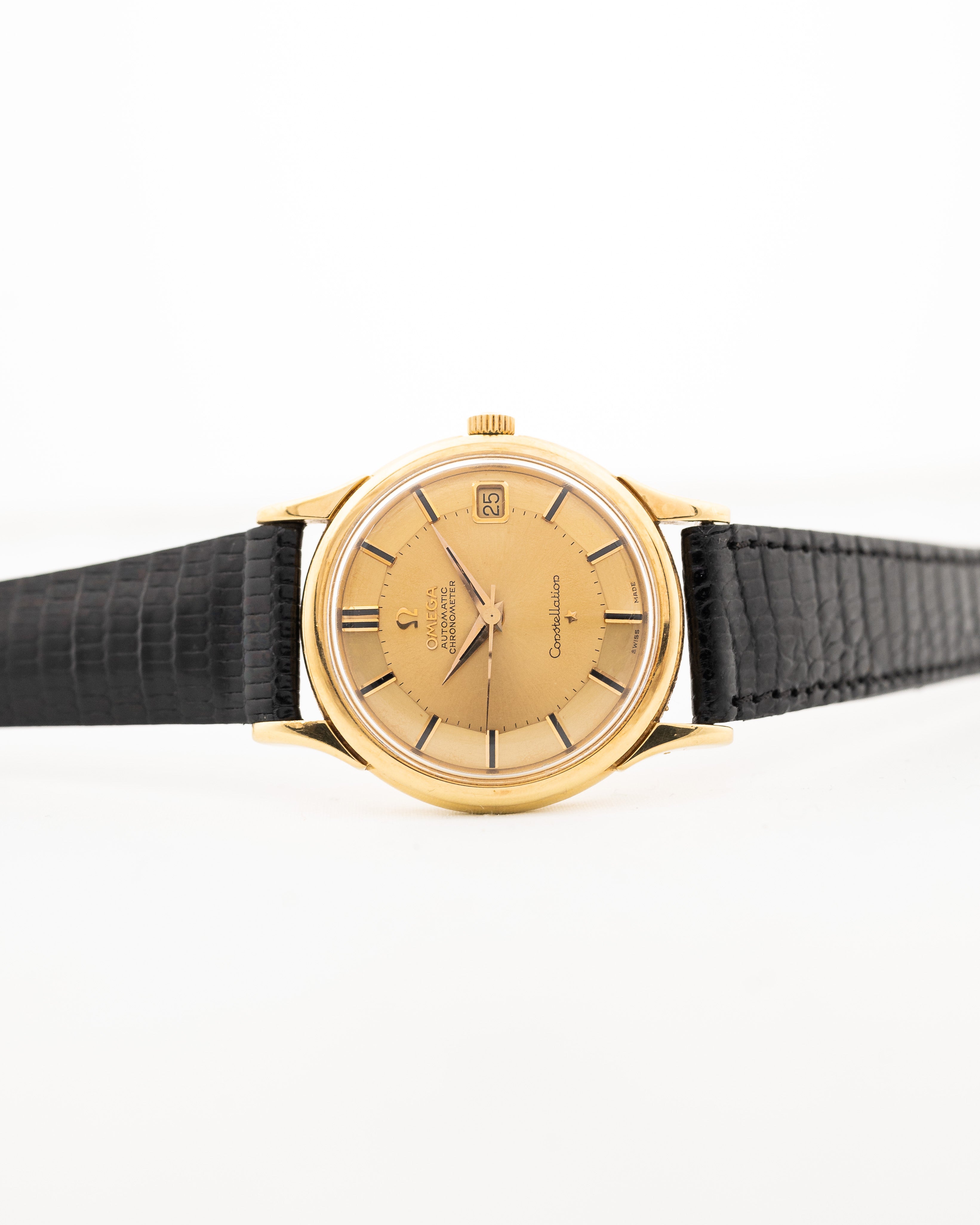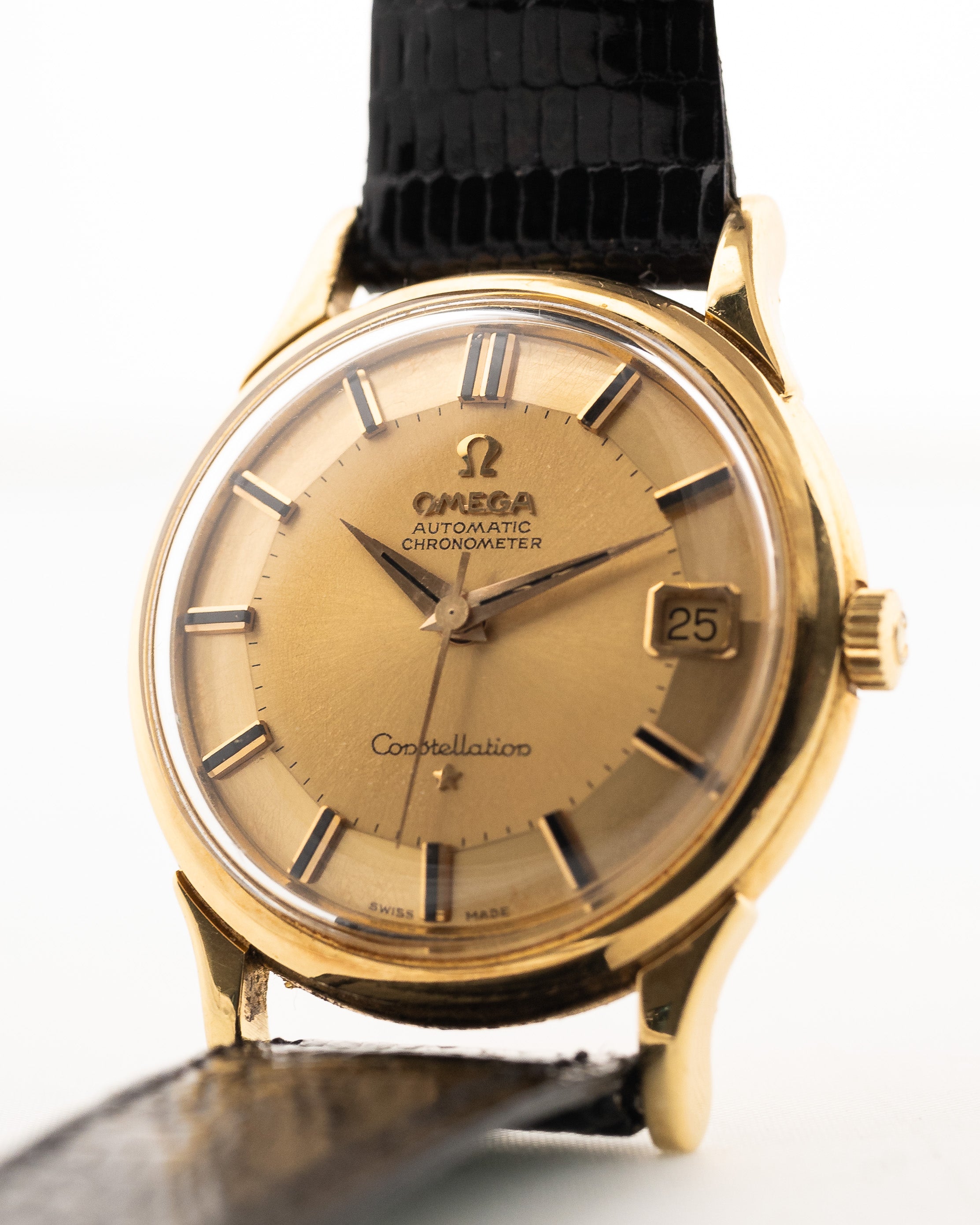Well-proportioned, simple, and classic, this Constellation features a screw-down case back, Omega automatic chronometer Caliber 561 and great slightly down turned lugs.