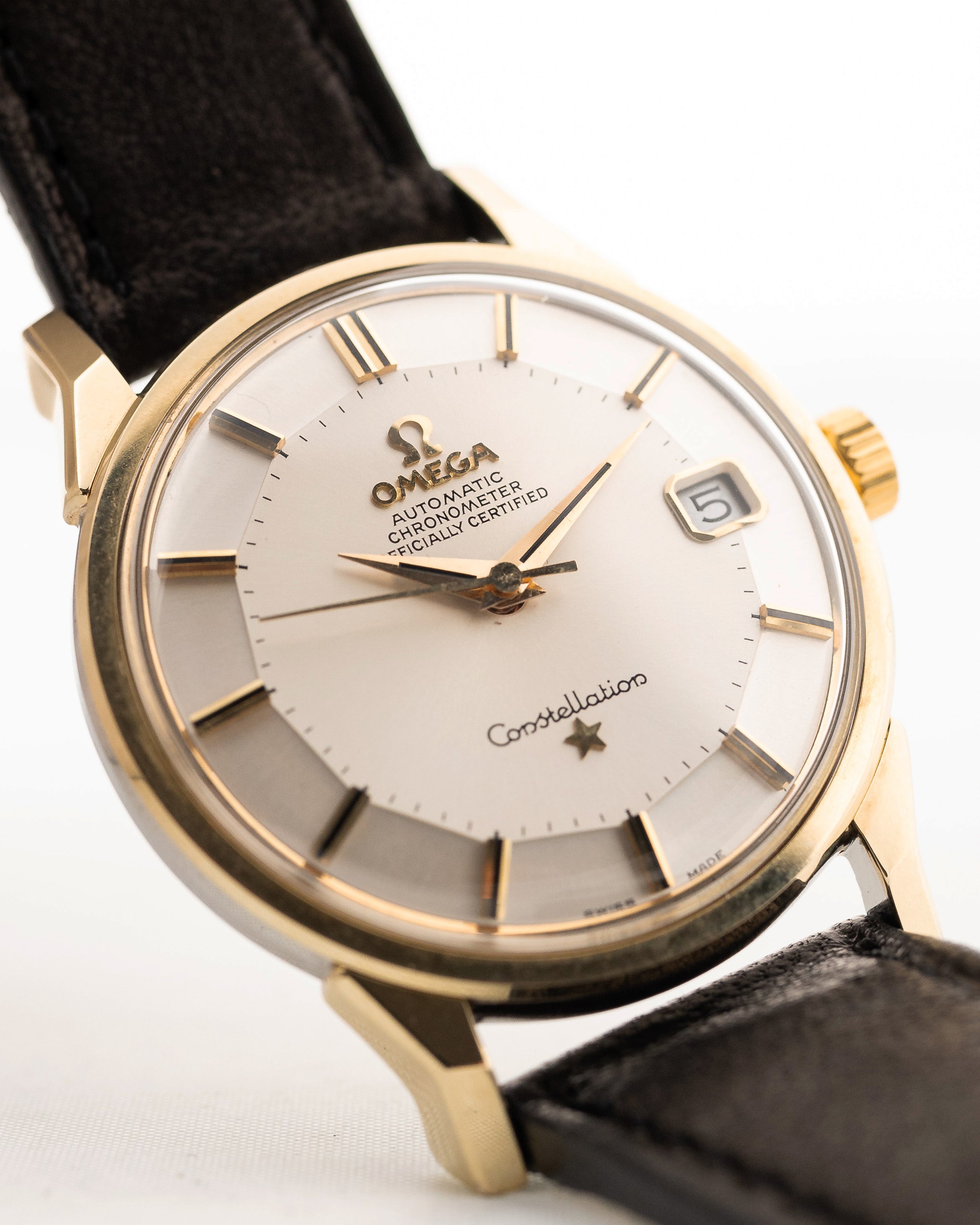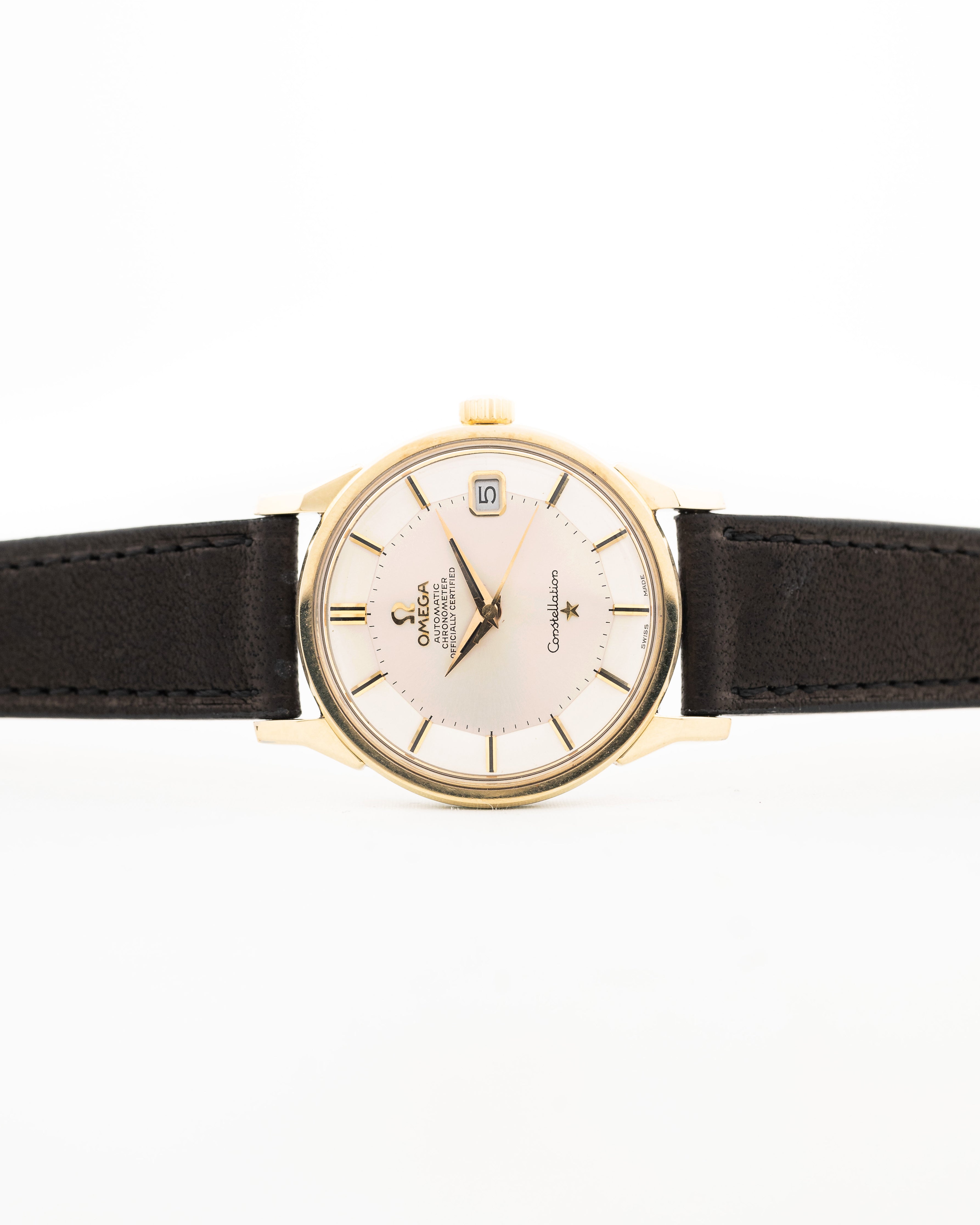Well-proportioned, simple, and classic, this Constellation features a screw-down case back, Omega automatic chronometer Caliber 564 and great slightly down turned lugs.